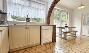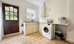 Back door and window to the rear elevation. A continuation of base units, a sink and space for additional appliances. Internal door through to: