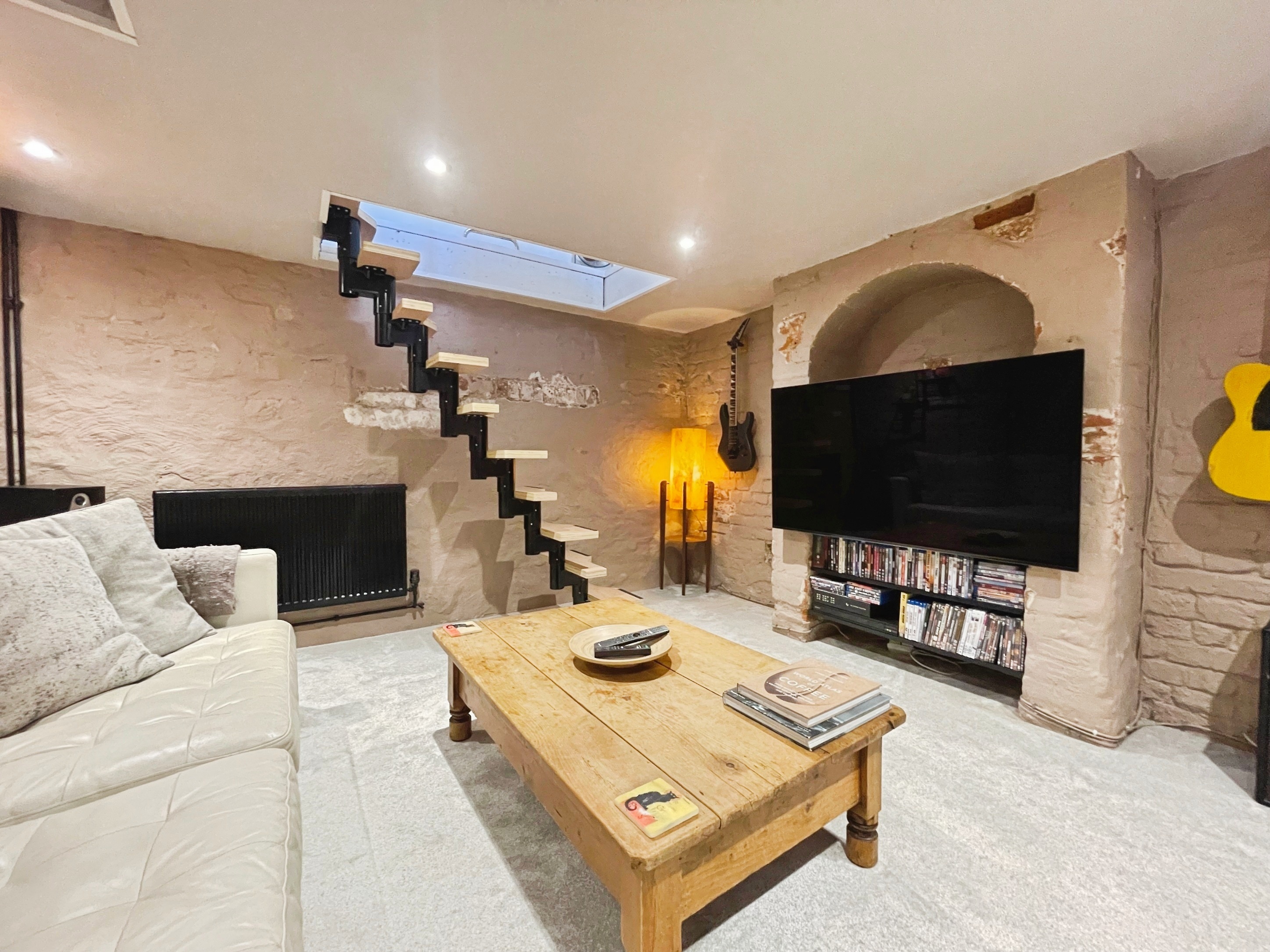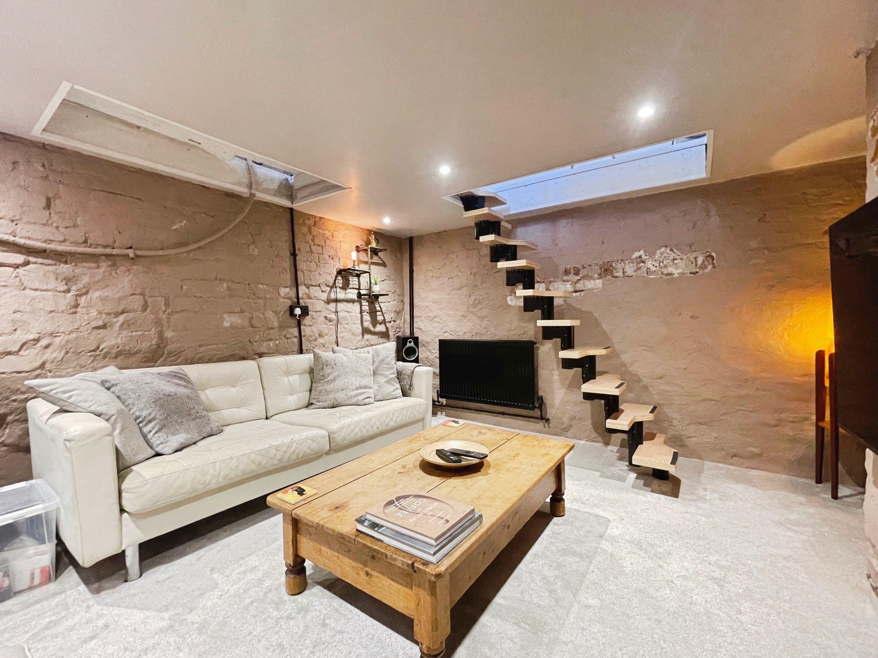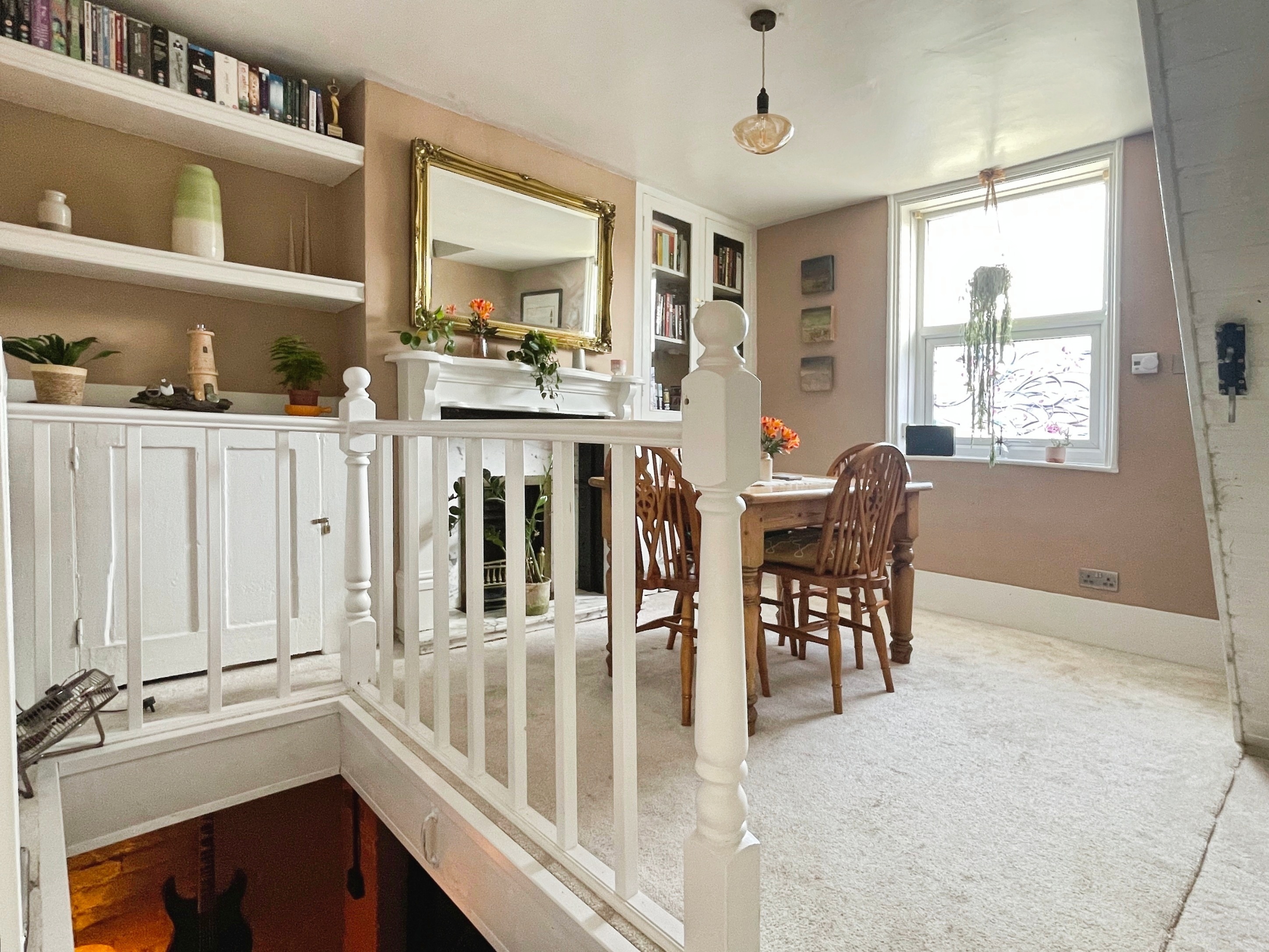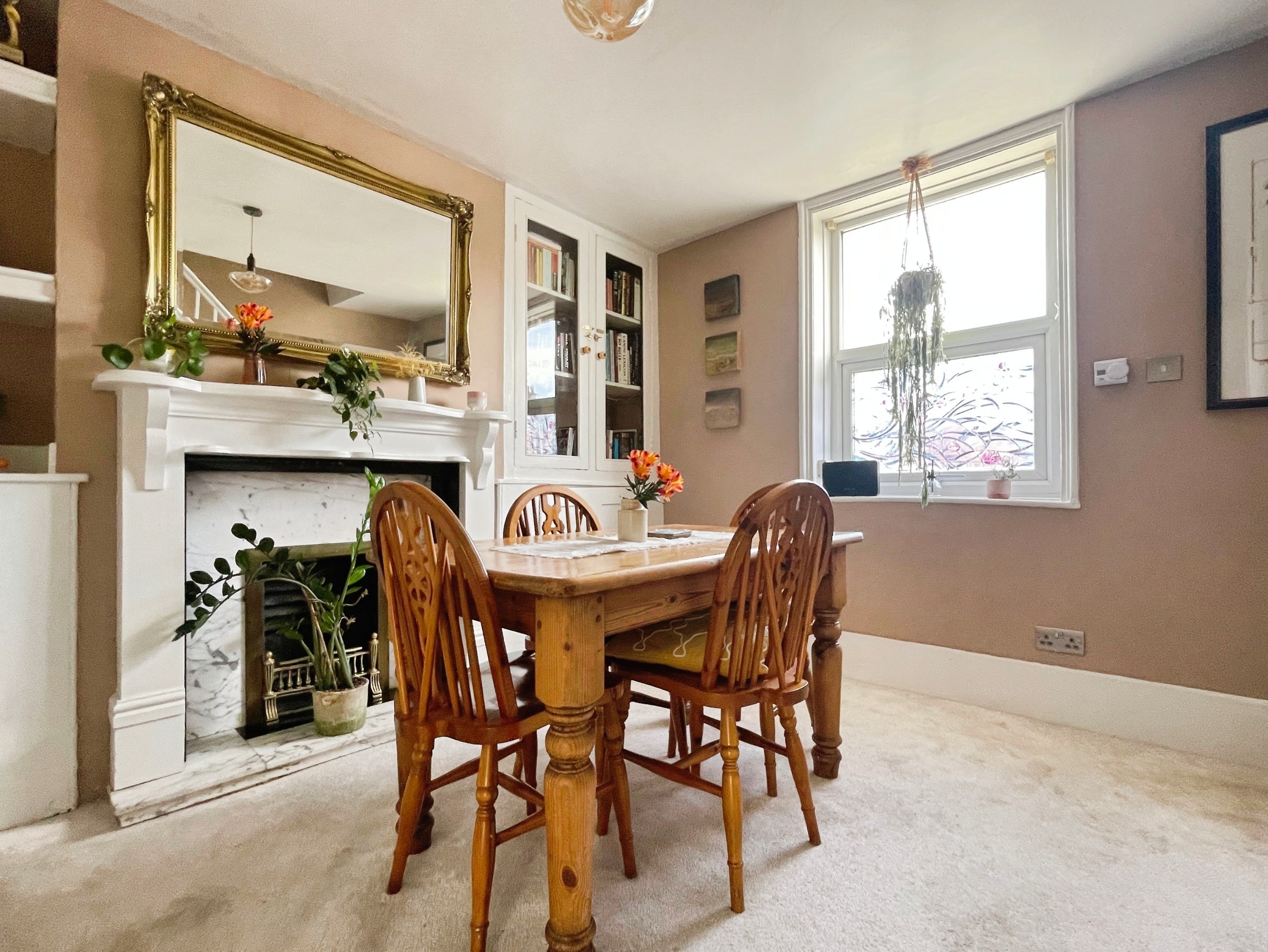 Believed to be one of the oldest homes on the road, the current owner has been exceptionally sympathetic in every detail of the renovation. Inside, the home spans four floors and offers versatile living throughout — including a contemporary fitted kitchen with integrated appliances, a modern shower room, and a dining room leading down to a recently converted lounge on the lower level. Upstairs, two double bedrooms feature period windows and tasteful décor that complements the character of the property.