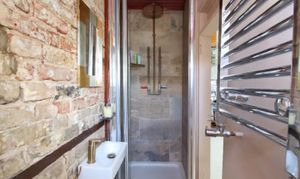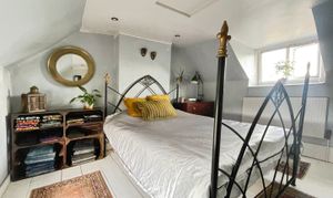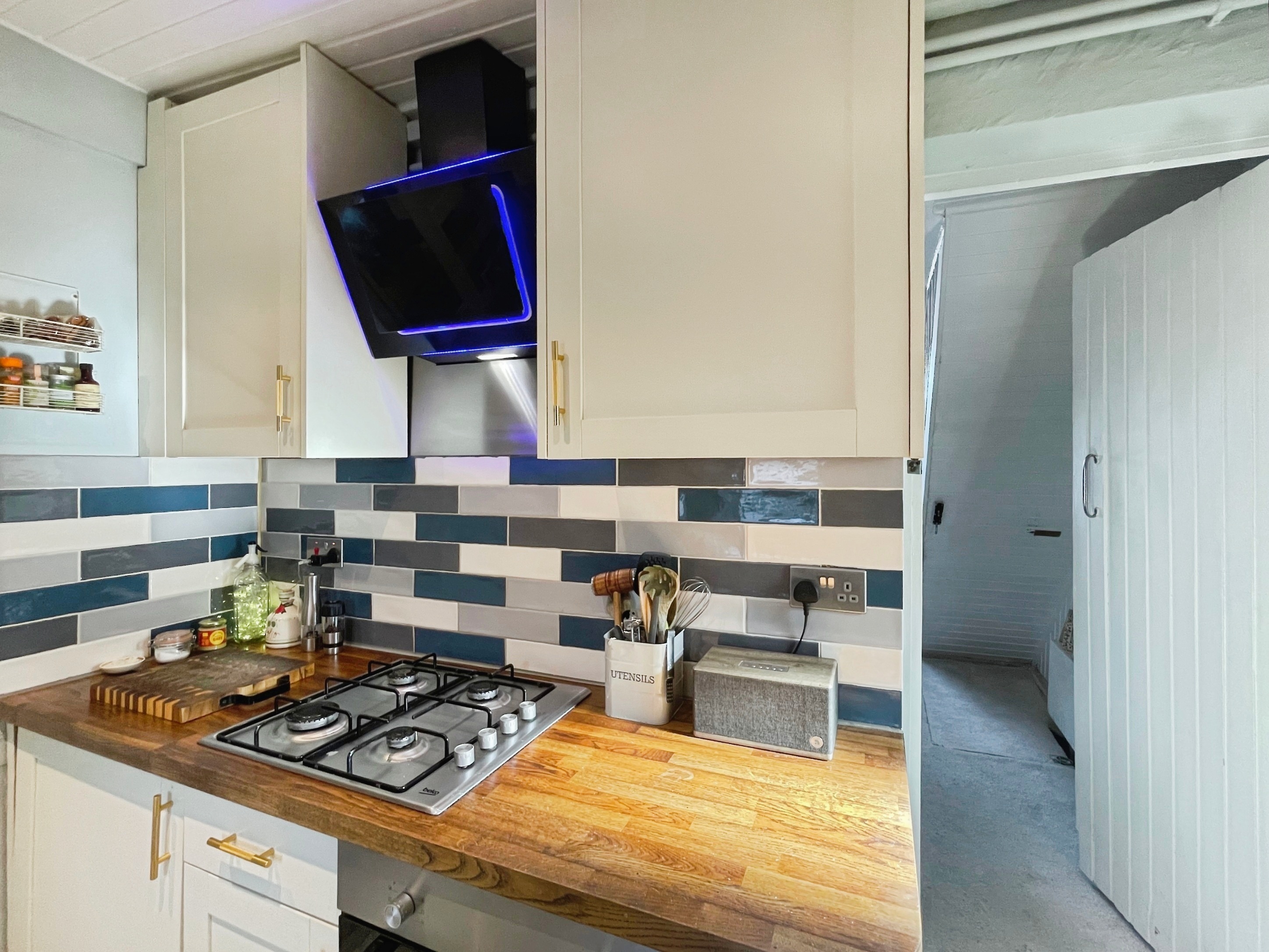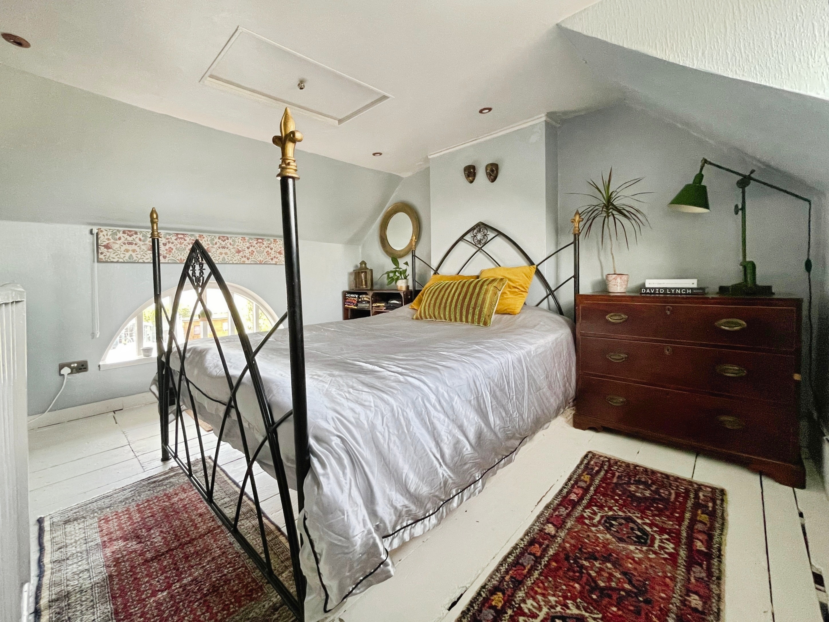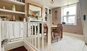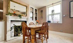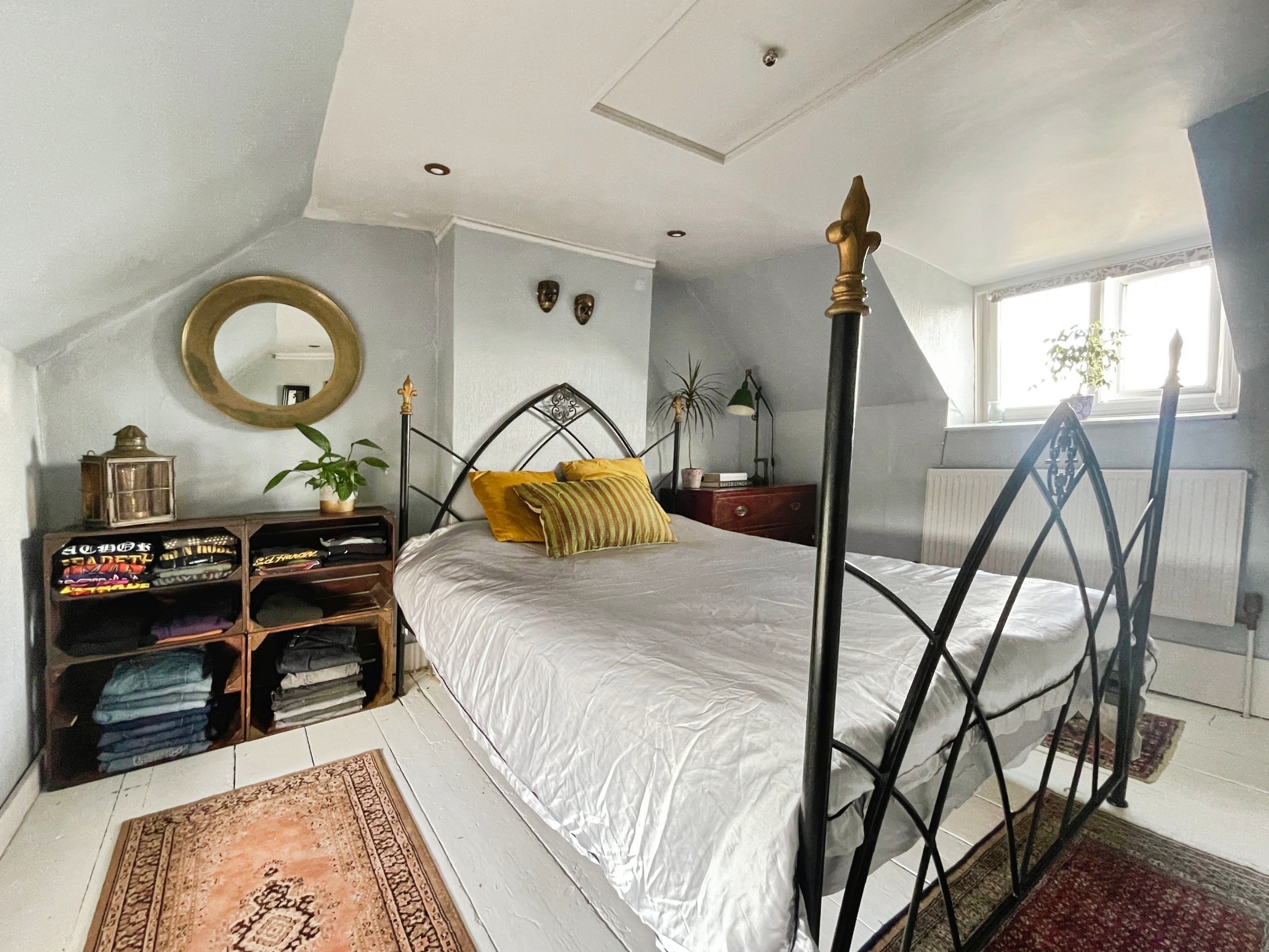 Believed to be one of the oldest homes on the road, the current owner has been exceptionally sympathetic in every detail of the renovation. Inside, the home spans four floors and offers versatile living throughout — including a contemporary fitted kitchen with integrated appliances, a modern shower room, and a dining room leading down to a recently converted lounge on the lower level. Upstairs, two double bedrooms feature period windows and tasteful décor that complements the character of the property.