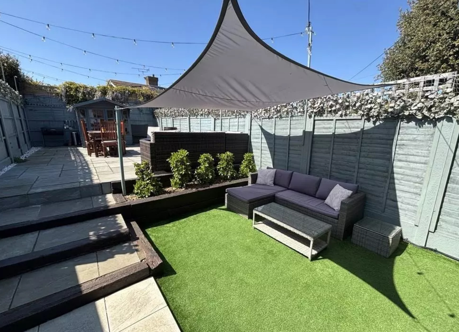 The garden is nice size approximately 82’ long by 17’ wide, completely redesigned in 2022 with a split-level layout, multiple seating areas, and subtle lighting — perfect for relaxing or entertaining. There’s also power ready for a hot tub and a versatile double glazed timber cabin measuring 21’ x 9’8 with lighting, Wi-Fi, and electricity, ideal as a home office, guest room, or creative studio.