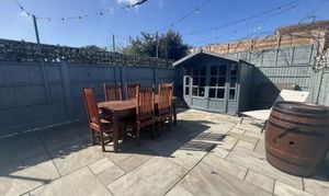 The garden offers multiple paved seating areas with soft lighting throughout, creating the perfect space to relax or entertain. There’s power ready for a hot tub, plus a generous cabin with Wi-Fi and electrics — ideal for working from home or welcoming guests. A summerhouse and storage shed add even more flexibility.