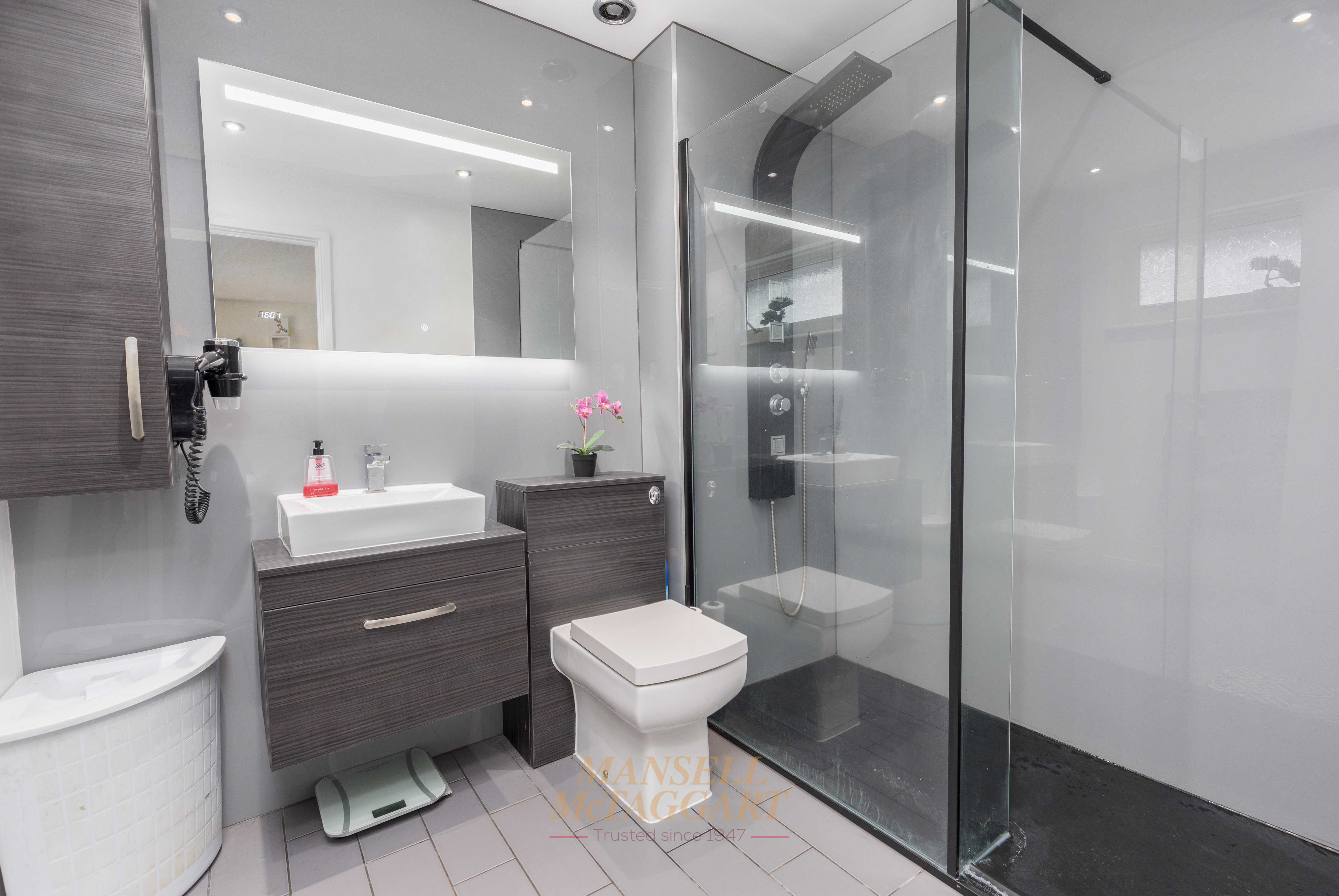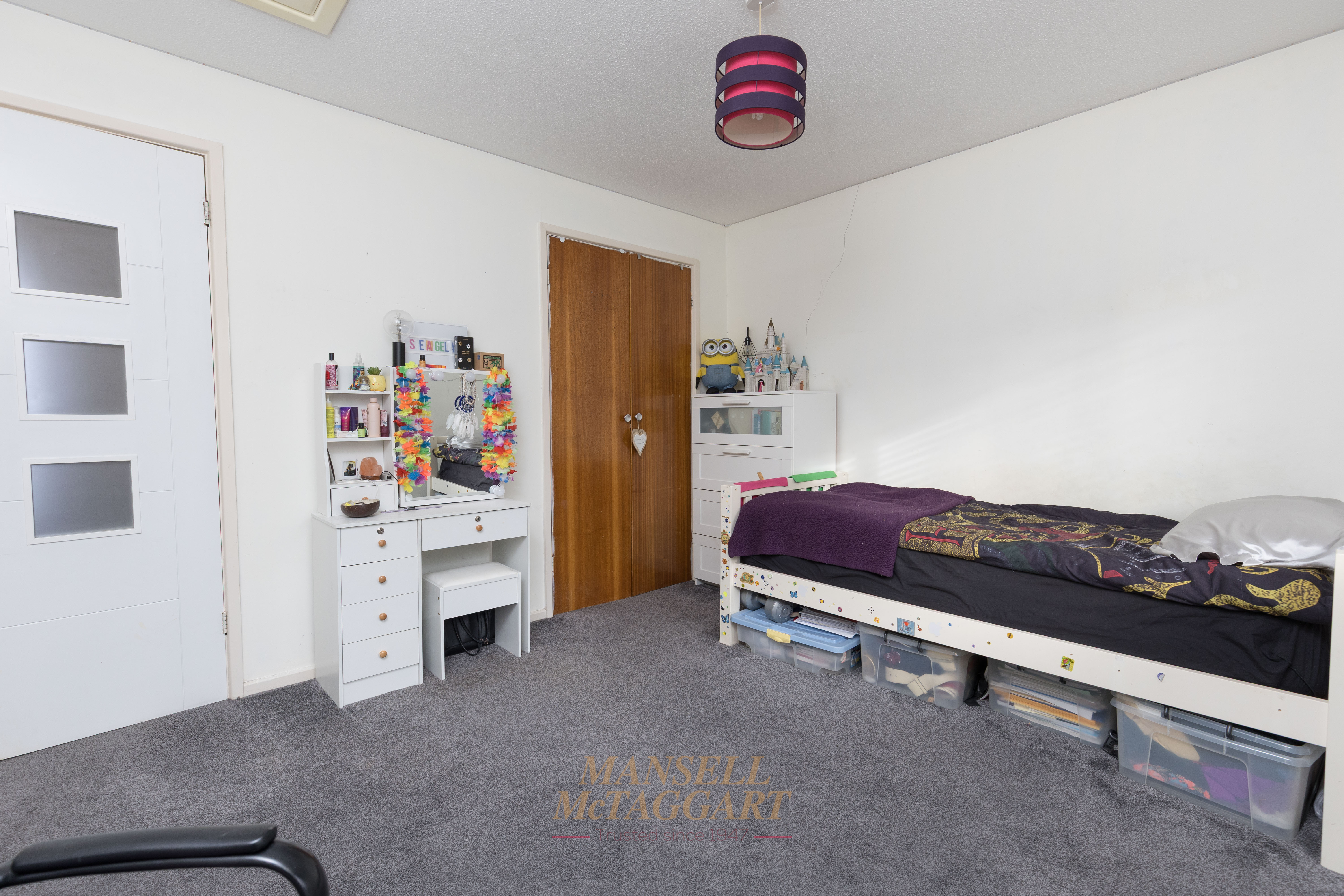 The generous main bedroom is positioned to enjoy a peaceful outlook and includes a complete run of fitted wardrobes. The private en-suite shower room features a double shower cubicle with a fountain power shower, a modern wash-hand basin with integrated storage, a WC, a heated towel rail, recessed spotlights, an extractor fan, and contemporary tiling. It provides a comfortable and stylish retreat for the homeowners. All three further bedrooms are notably well-proportioned and each features fitted wardrobes, maximising storage and usability. These rooms are ideal for children, guests, or additional home office space, offering flexibility to suit a variety of lifestyles.