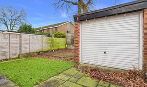 The south-westerly facing rear garden is well enclosed by fencing and designed with low maintenance in mind. It features paved seating areas, a section of artificial turf, and a raised timber decked terrace, providing excellent outdoor entertaining space. A mature tree sits within the garden and is subject to a Tree Preservation Order (TPO).