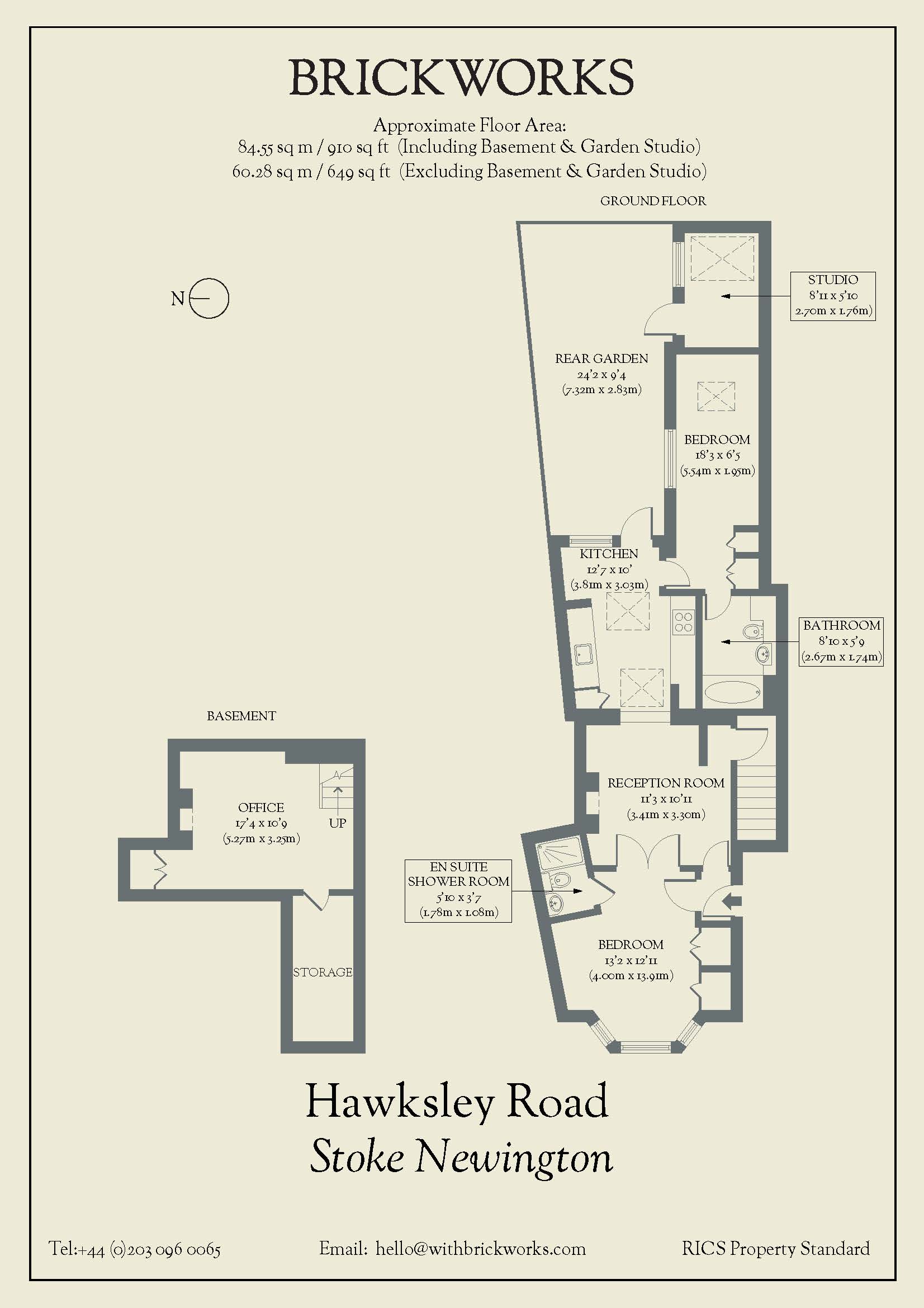 - Size: 84.55 sq m / 910 sq ft (Including Basement & Garden Studio)