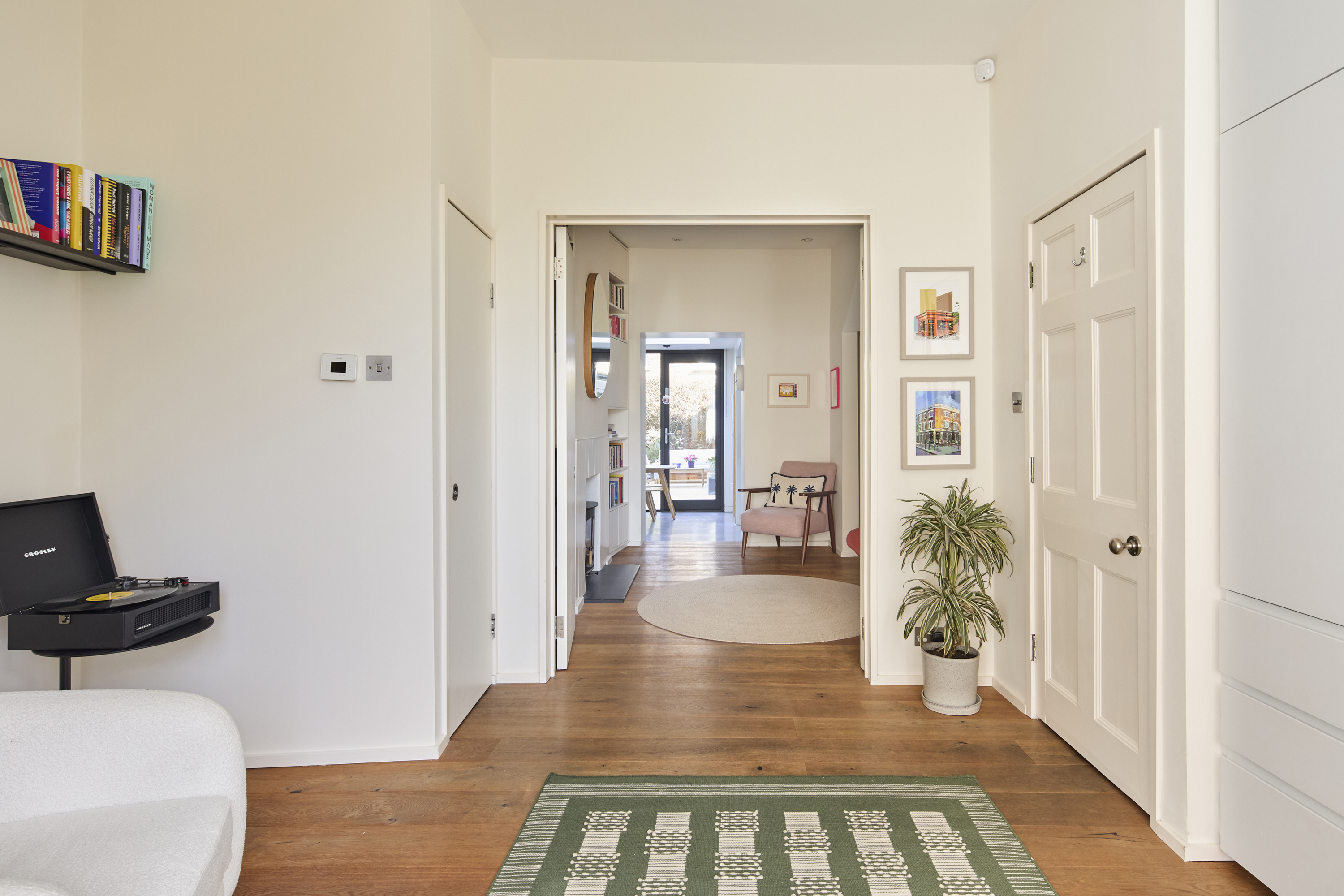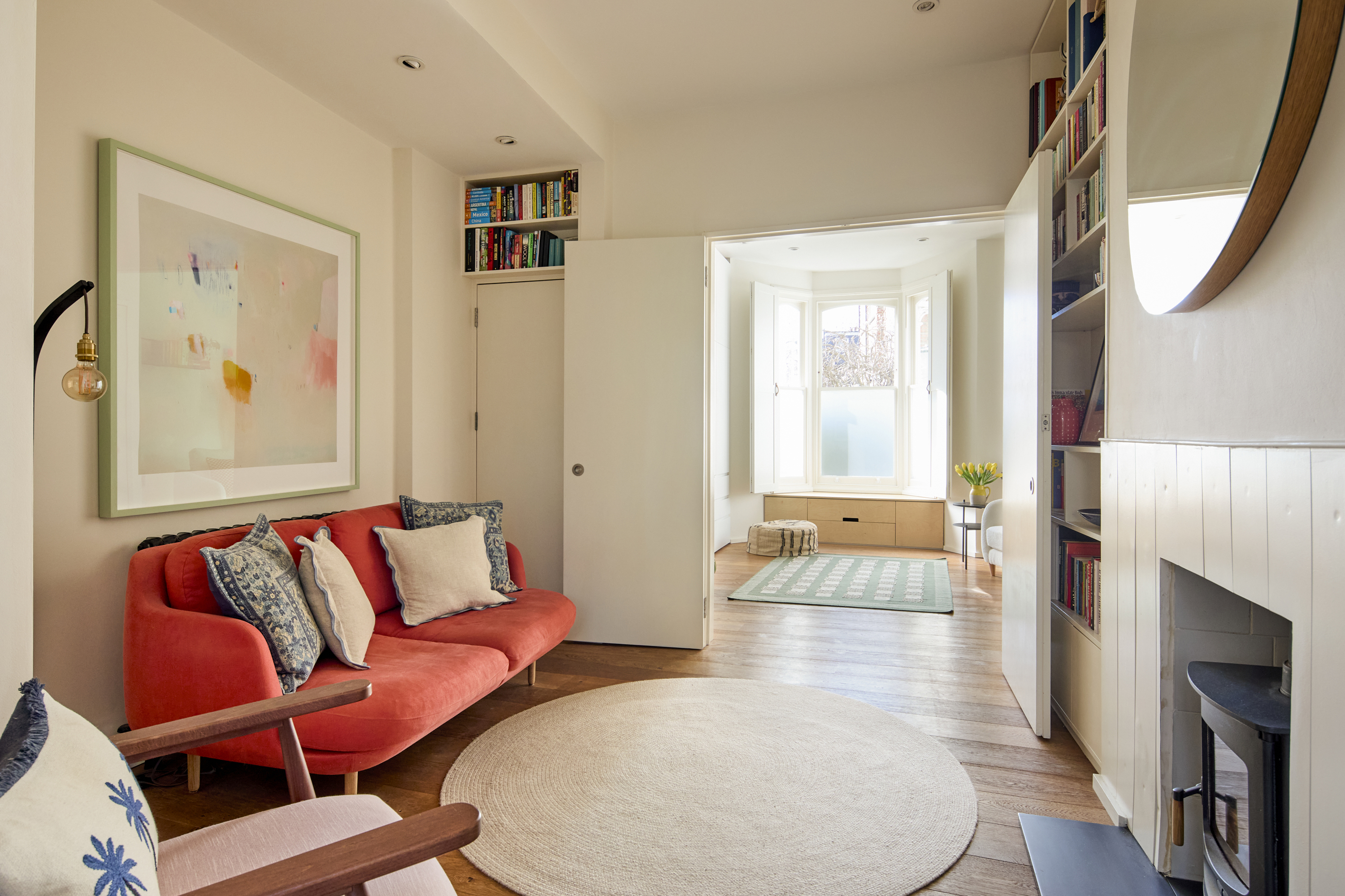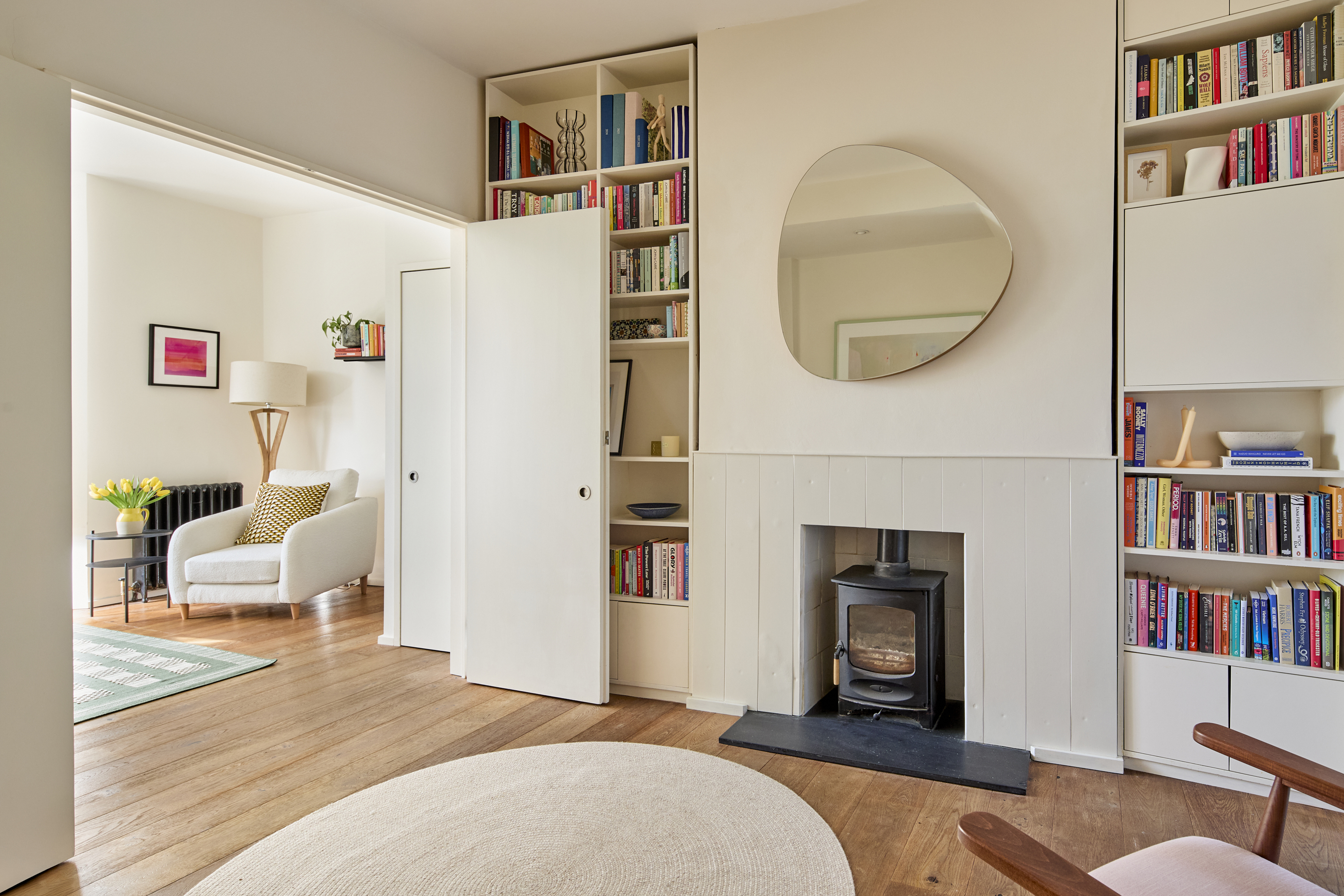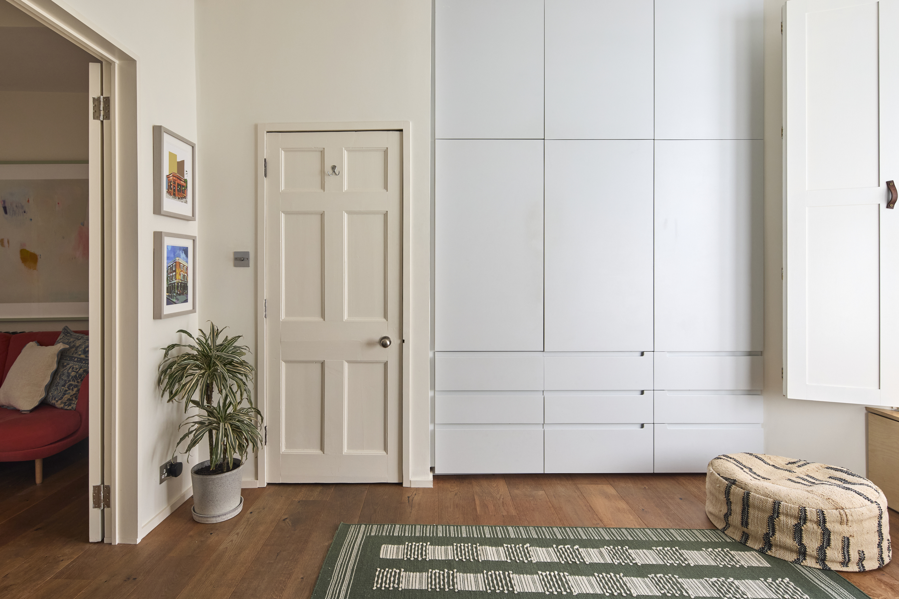 Set across the ground floor of a Victorian end-of-terrace in Stoke Newington, this two-bedroom conversion flat makes clever use of its footprint. The home’s design is an elegant synthesis of style and practicality, with storage beautifully integrated into the architecture throughout. The main living area is spacious and adaptable — easily partitioned to create a second bedroom when life requires — while the basement provides a tranquil space to work.