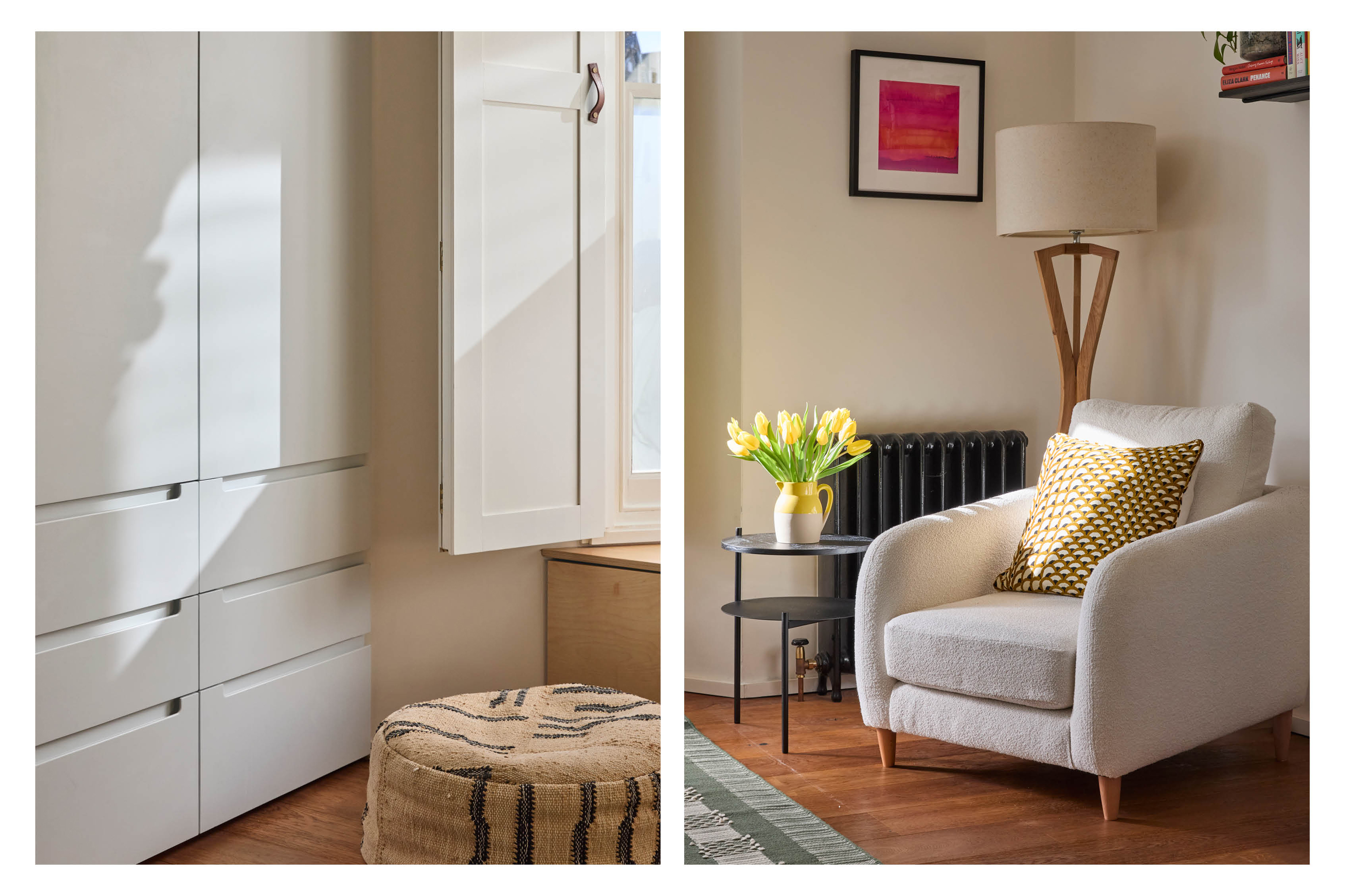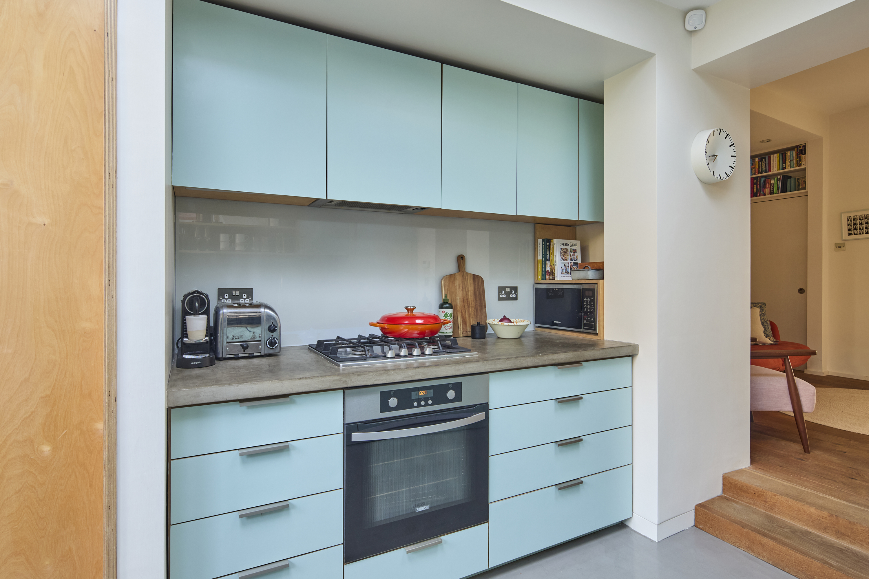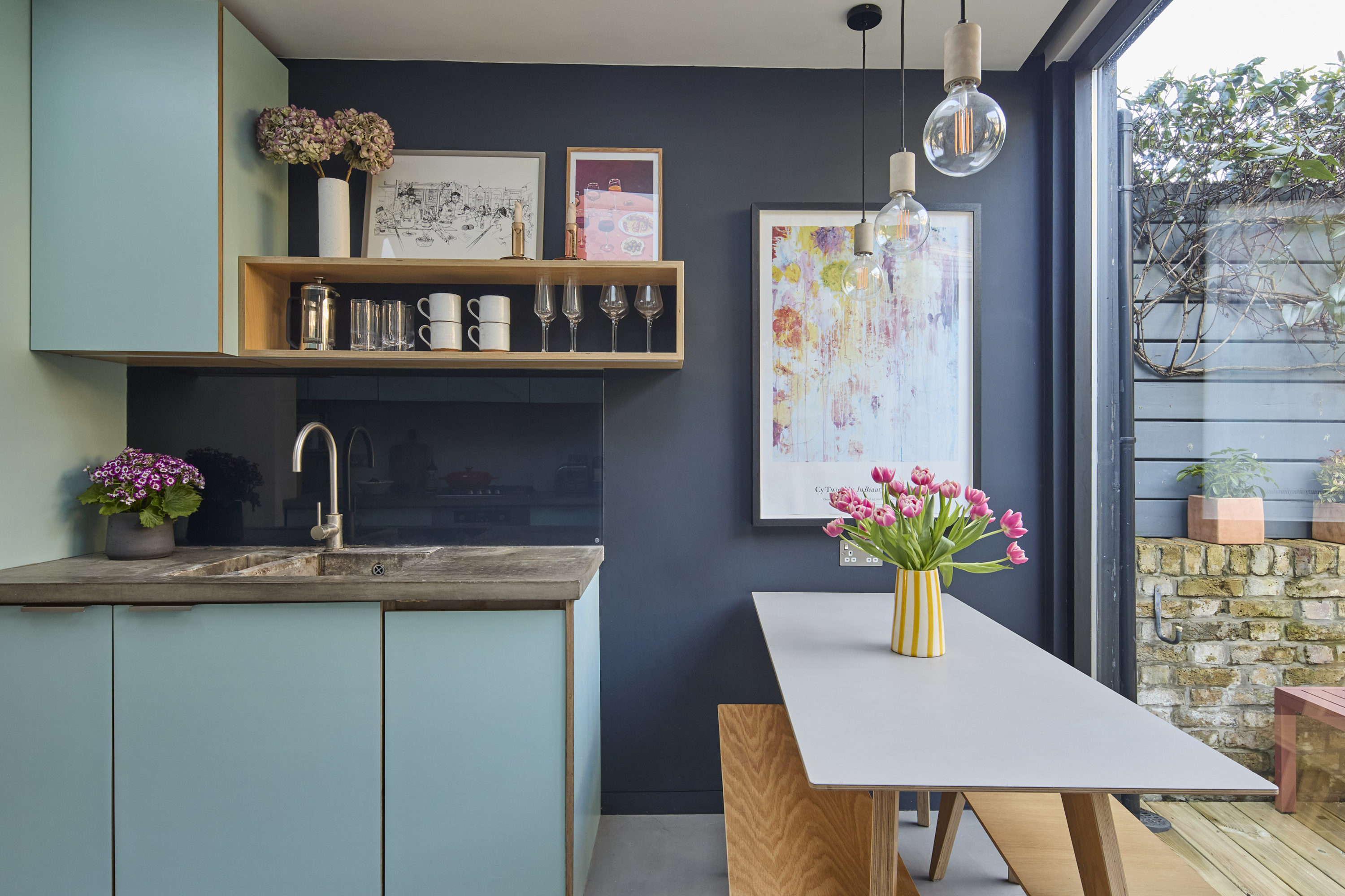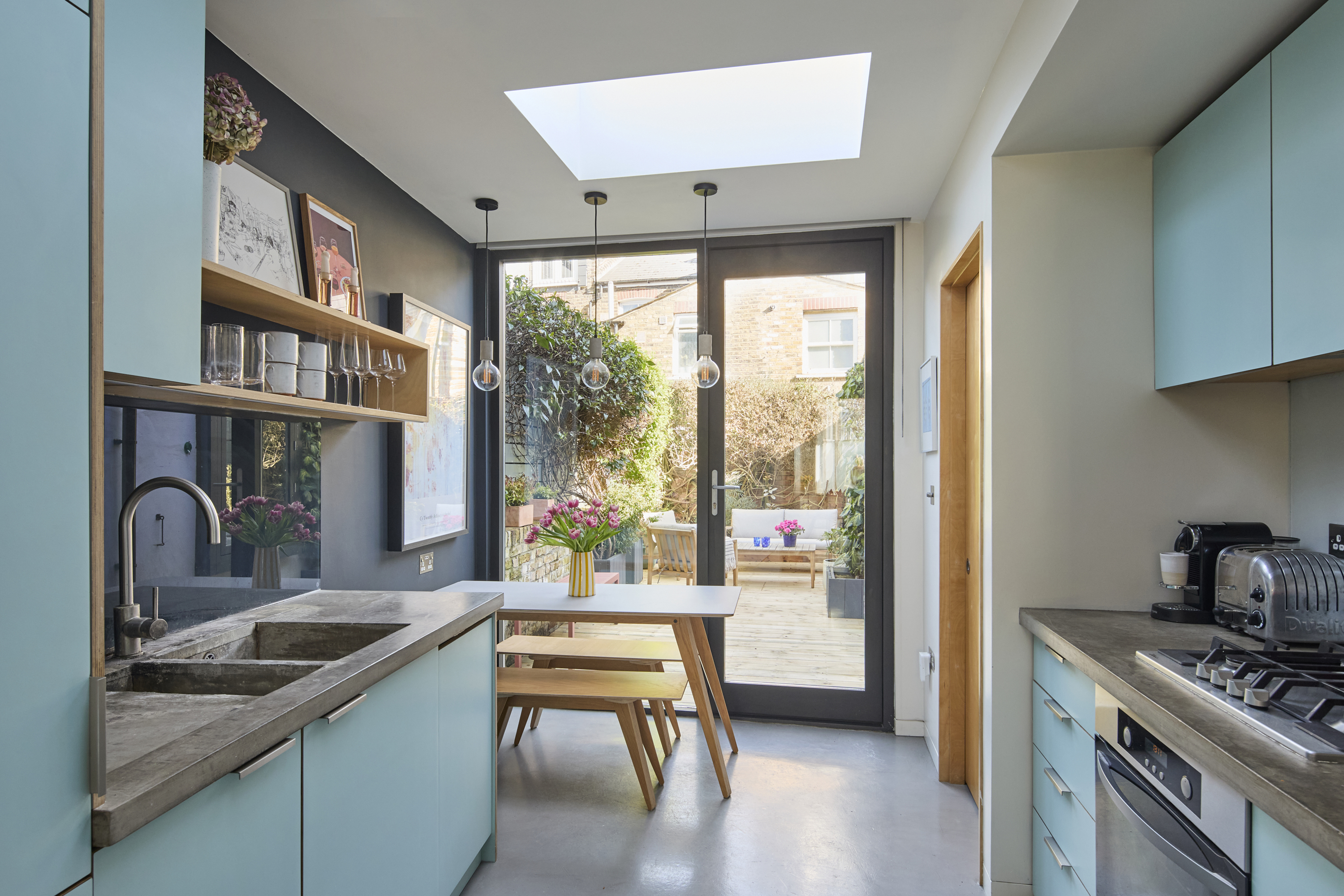 In the flat itself, the way the sunlight hits the kitchen through the skylights and the long view through the flat from the garden are two of our favourite aspects. Plus, all the fantastic built-in storage is a bonus. The flat is a really special place and we will have loved living here.