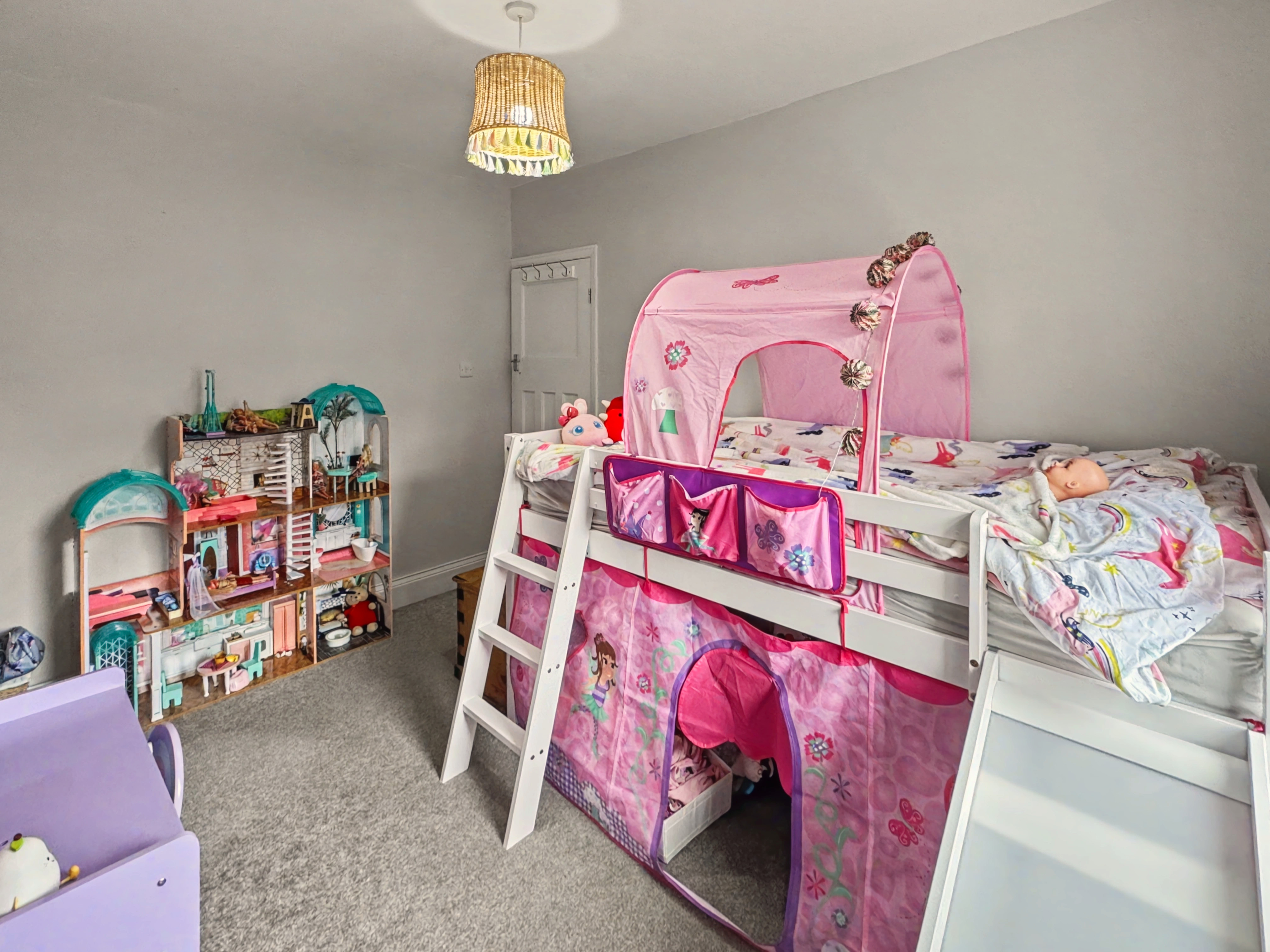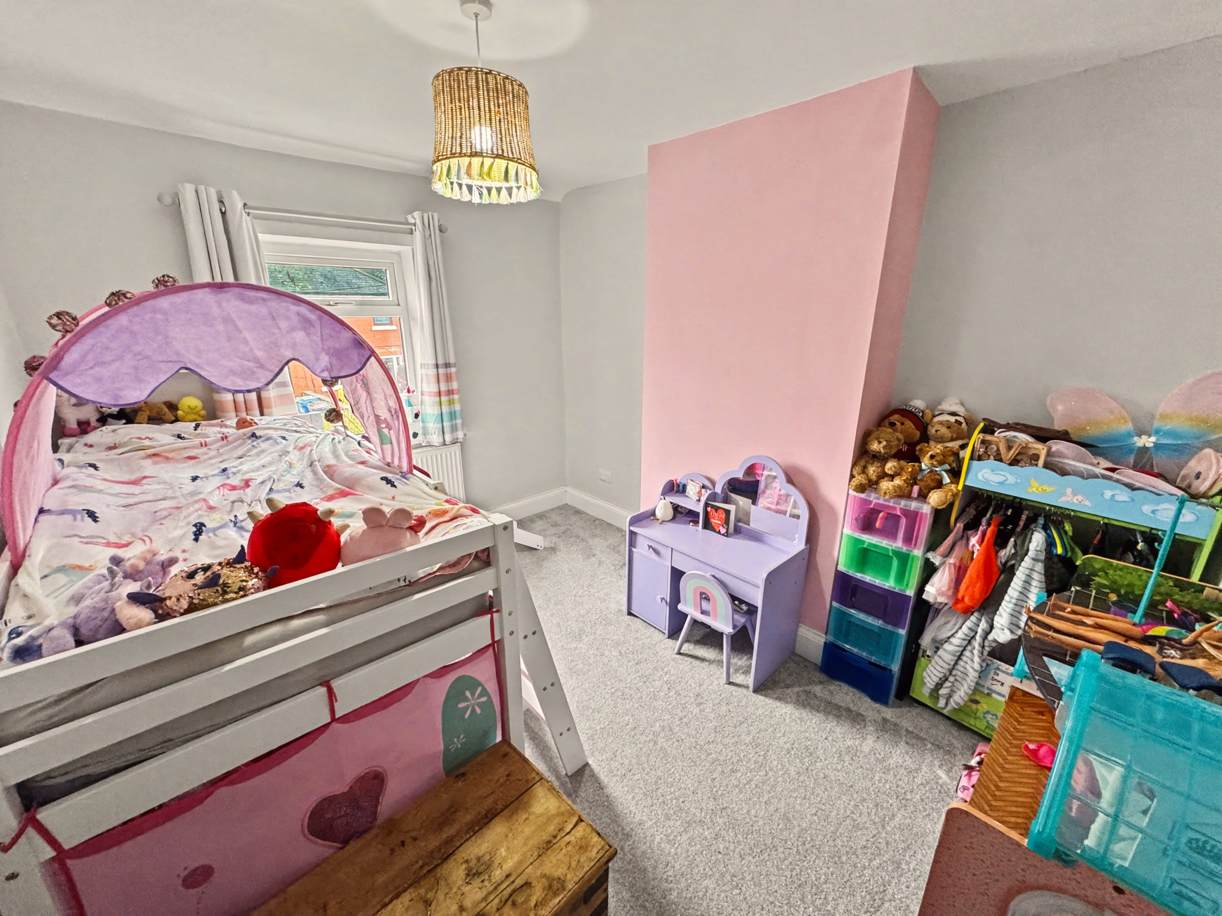 Upstairs, the home continues to impress with three well-sized bedrooms, each offering flexibility for growing families, home working, or guest accommodation. A contemporary family bathroom, finished to a modern standard, serves the bedrooms and completes the internal layout.