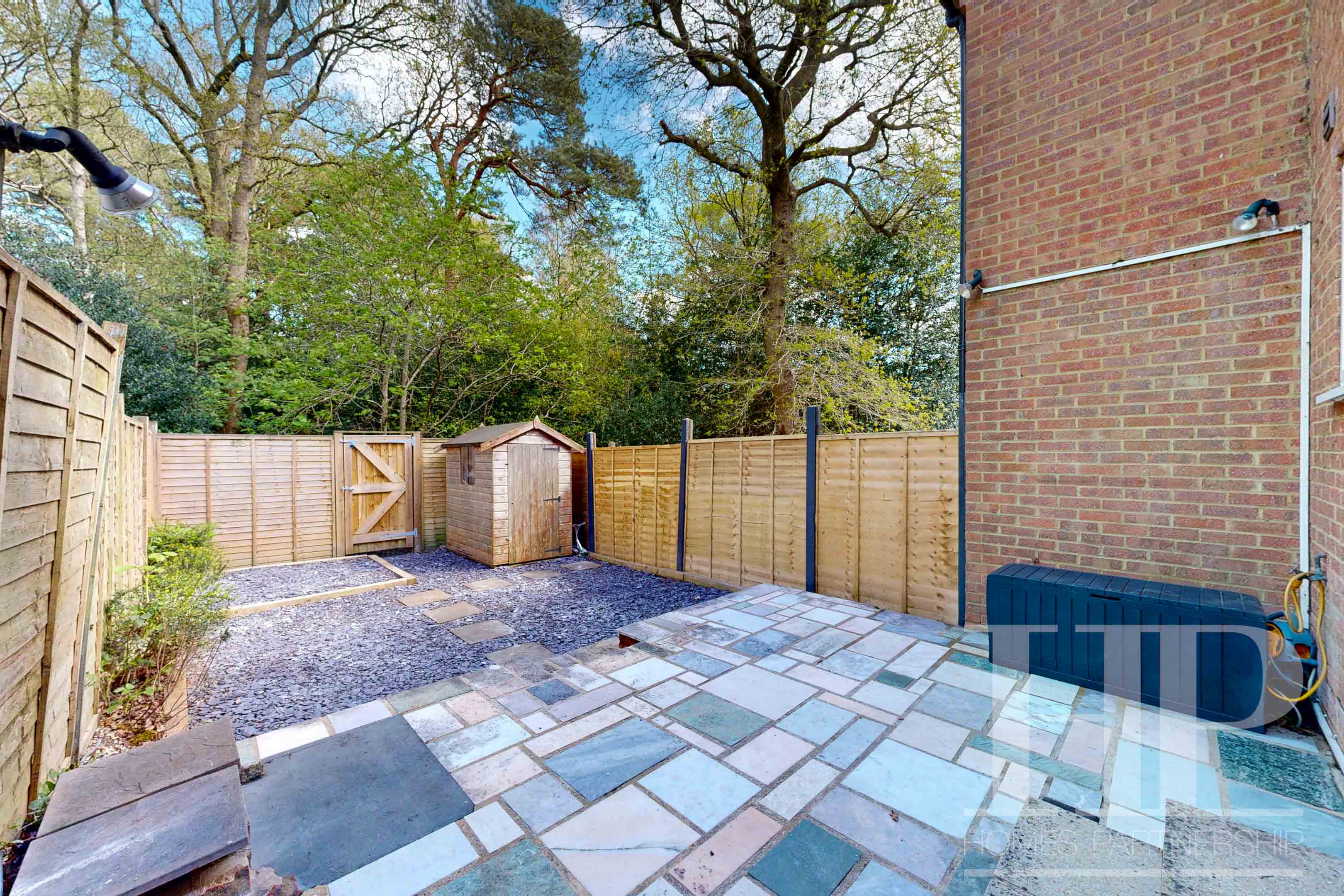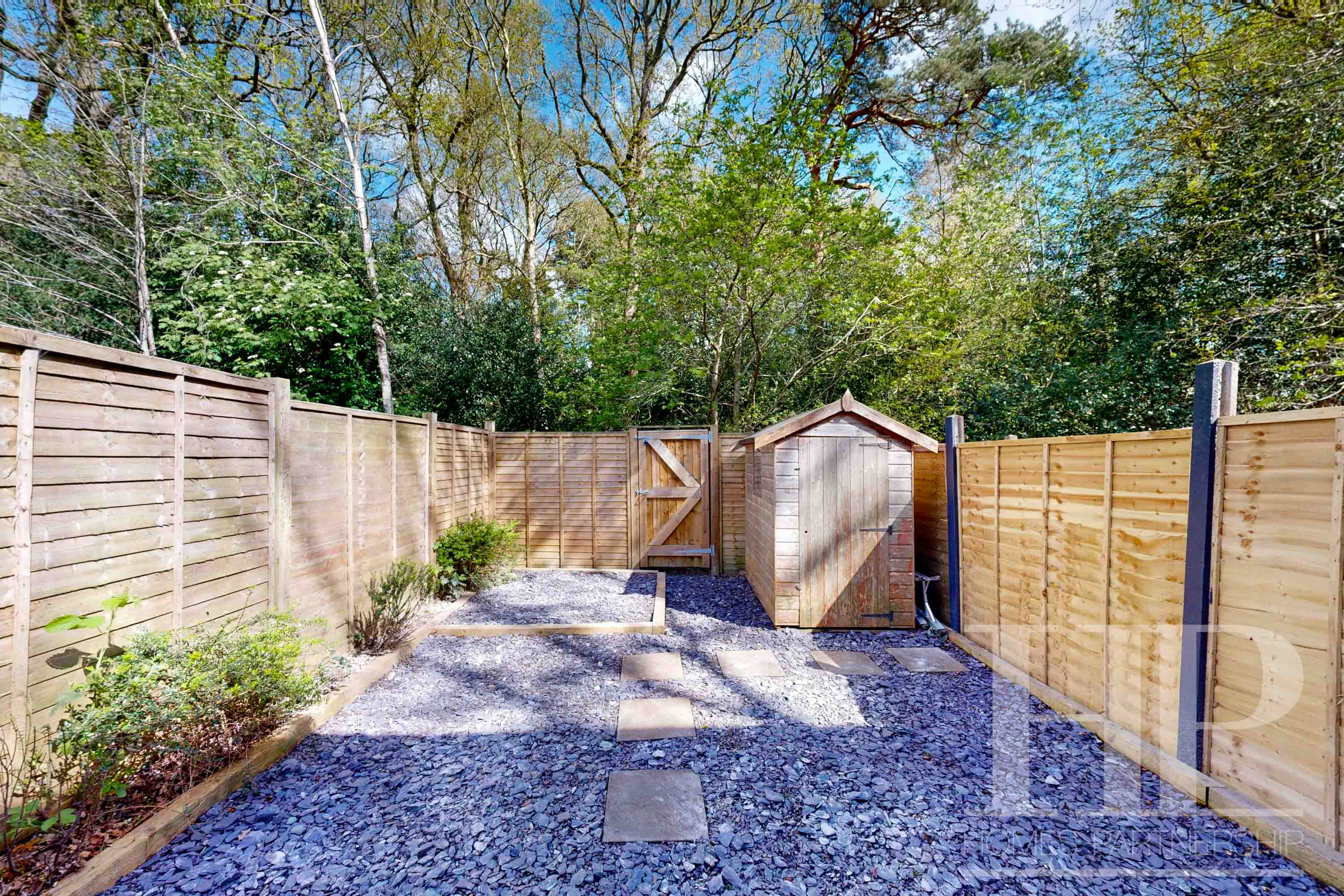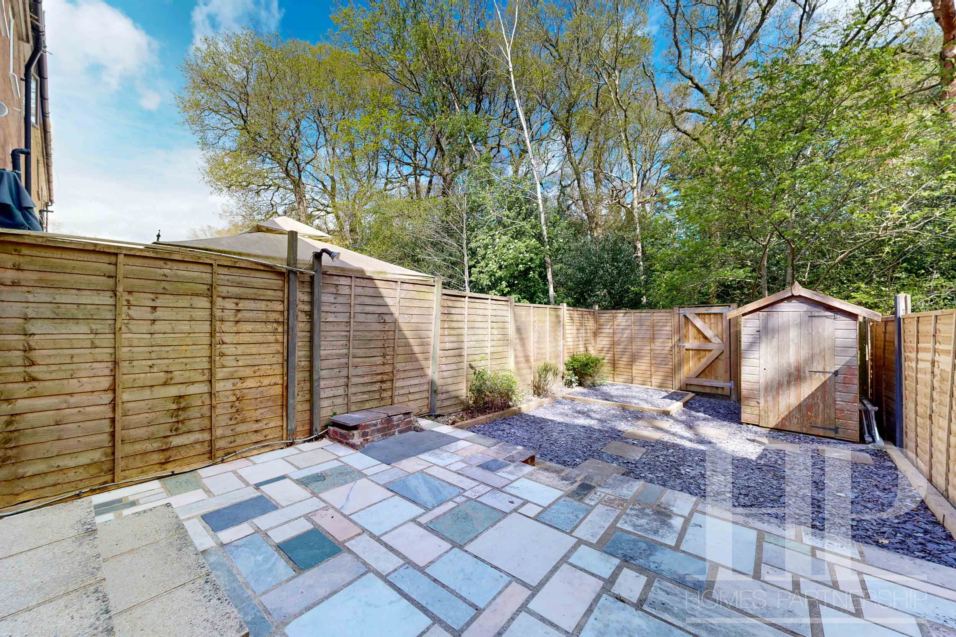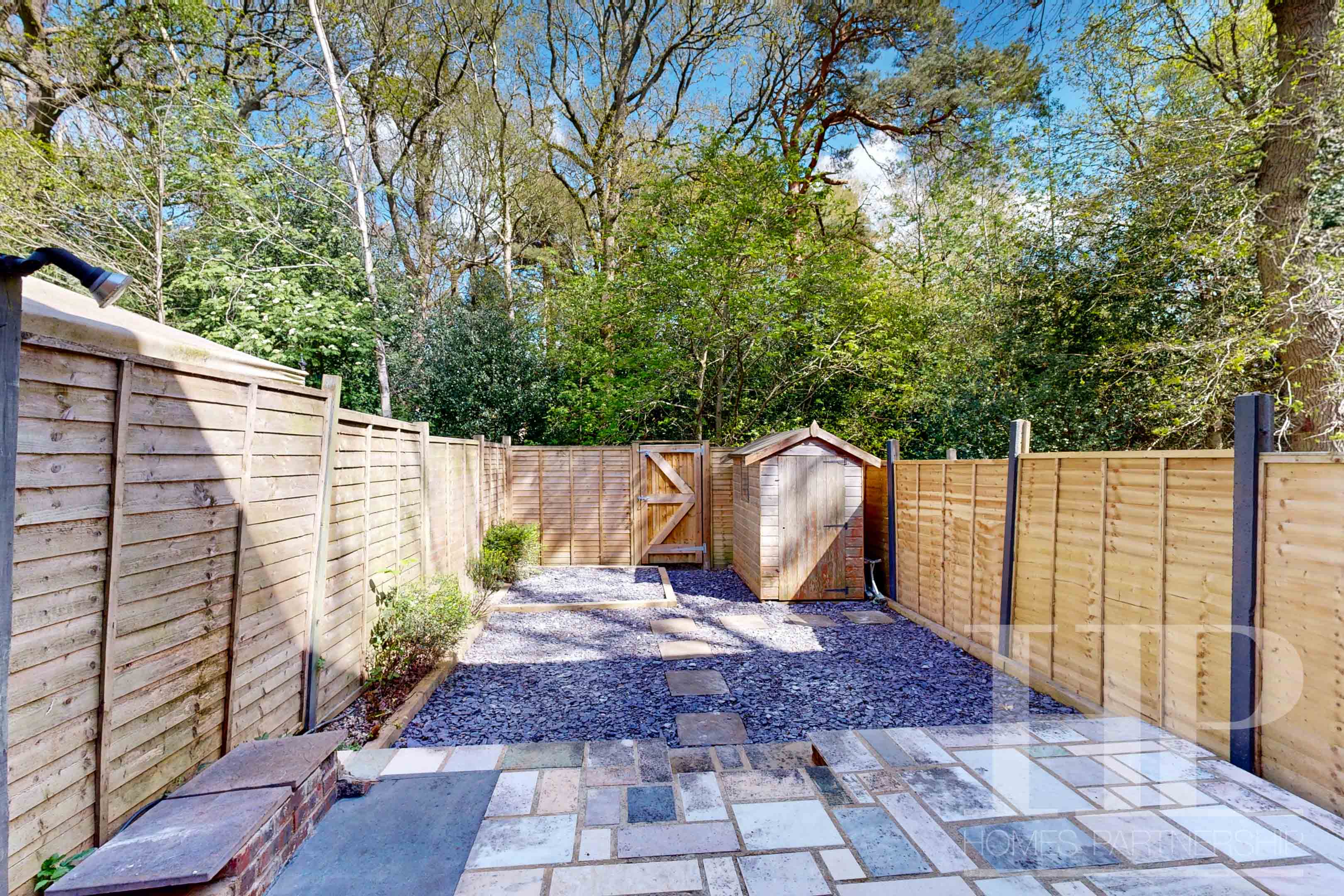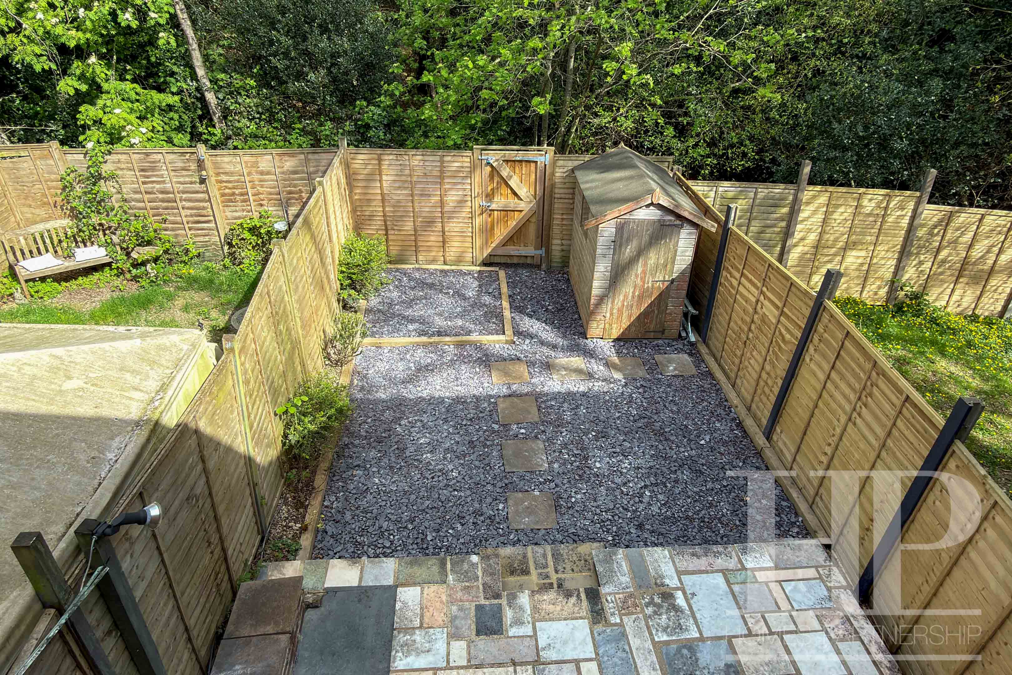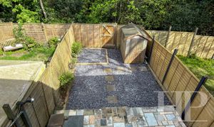- Tiered rear garden with patio and slate chippings