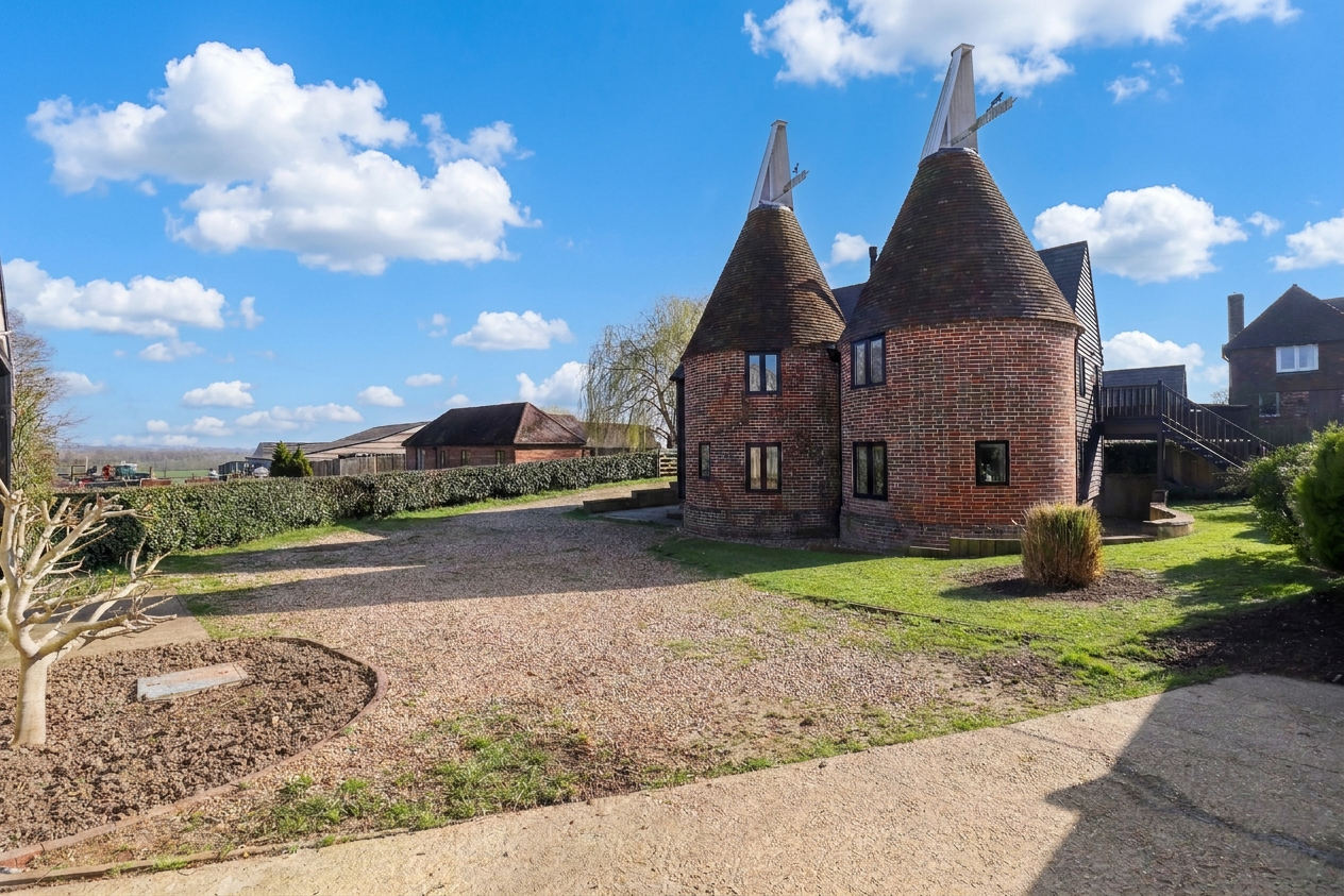 - Exceptional twin-roundel oast house with striking architectural character (no onward chain)
