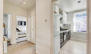 The galley-style kitchen has been recently refitted, offering both style and functionality. The great-sized lounge provides a comfortable and airy living area, ideal for relaxing or entertaining. There is a large double bedroom, along with a small single bedroom that could also serve as a study or dressing room.