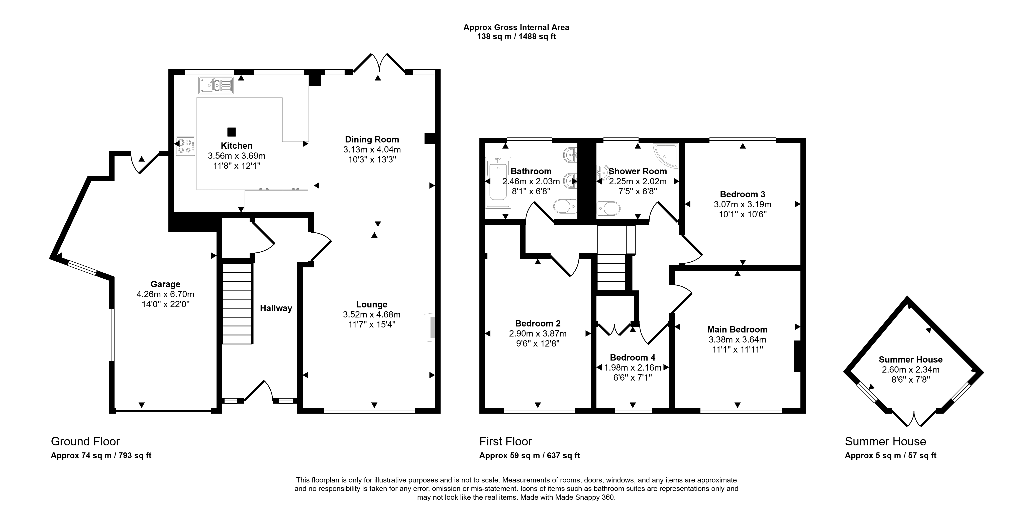Upstairs, the landing gives access to four well-proportioned bedrooms—three doubles and one single. Bedroom four benefits from built-in wardrobes. The first floor is completed by a newly fitted bathroom and a separate shower room, offering convenience for a growing family.