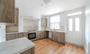 The newly fitted kitchen has been thoughtfully designed with sleek wall and base units, an integrated oven and hob, and ample worktop space, making it as practical as it is stylish.