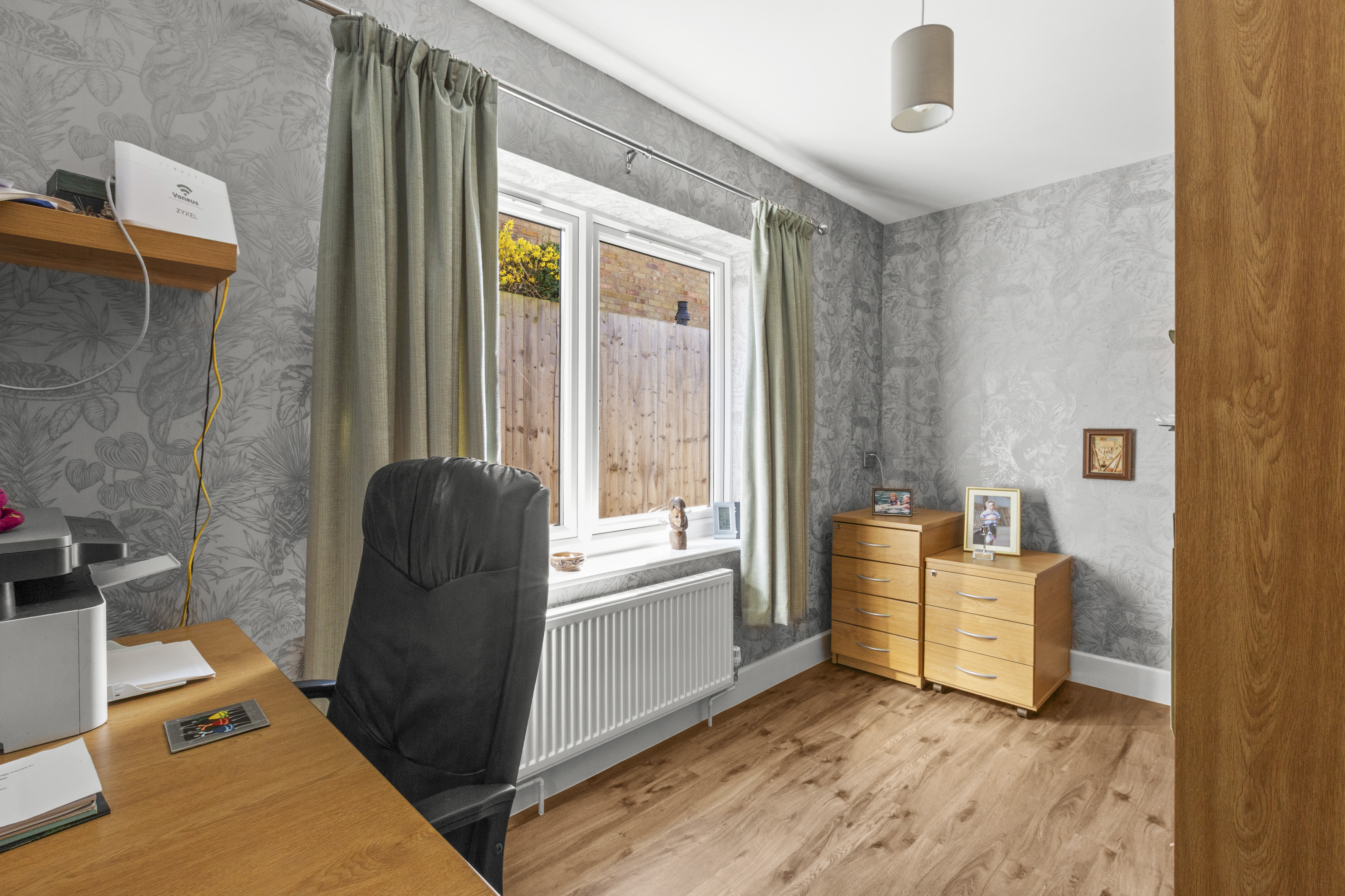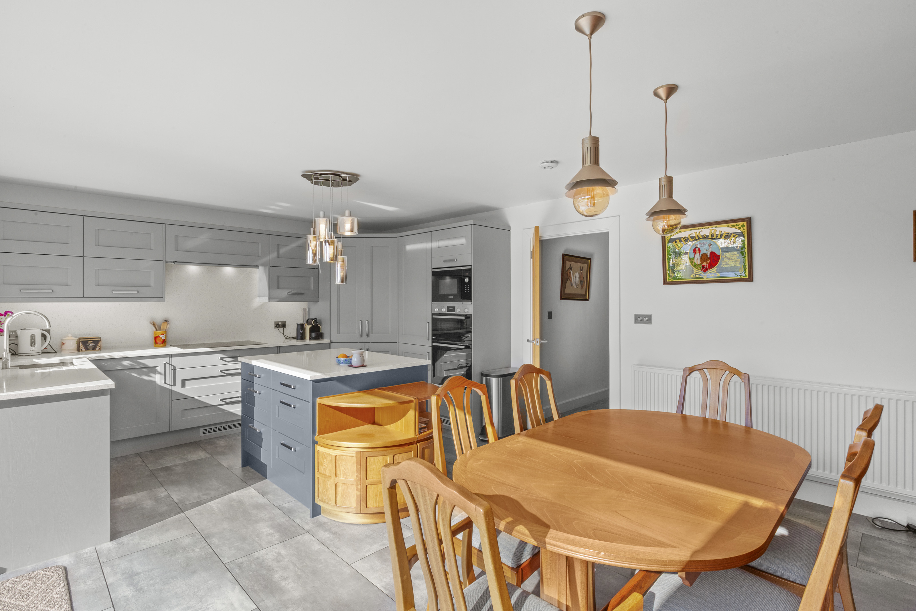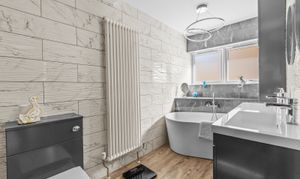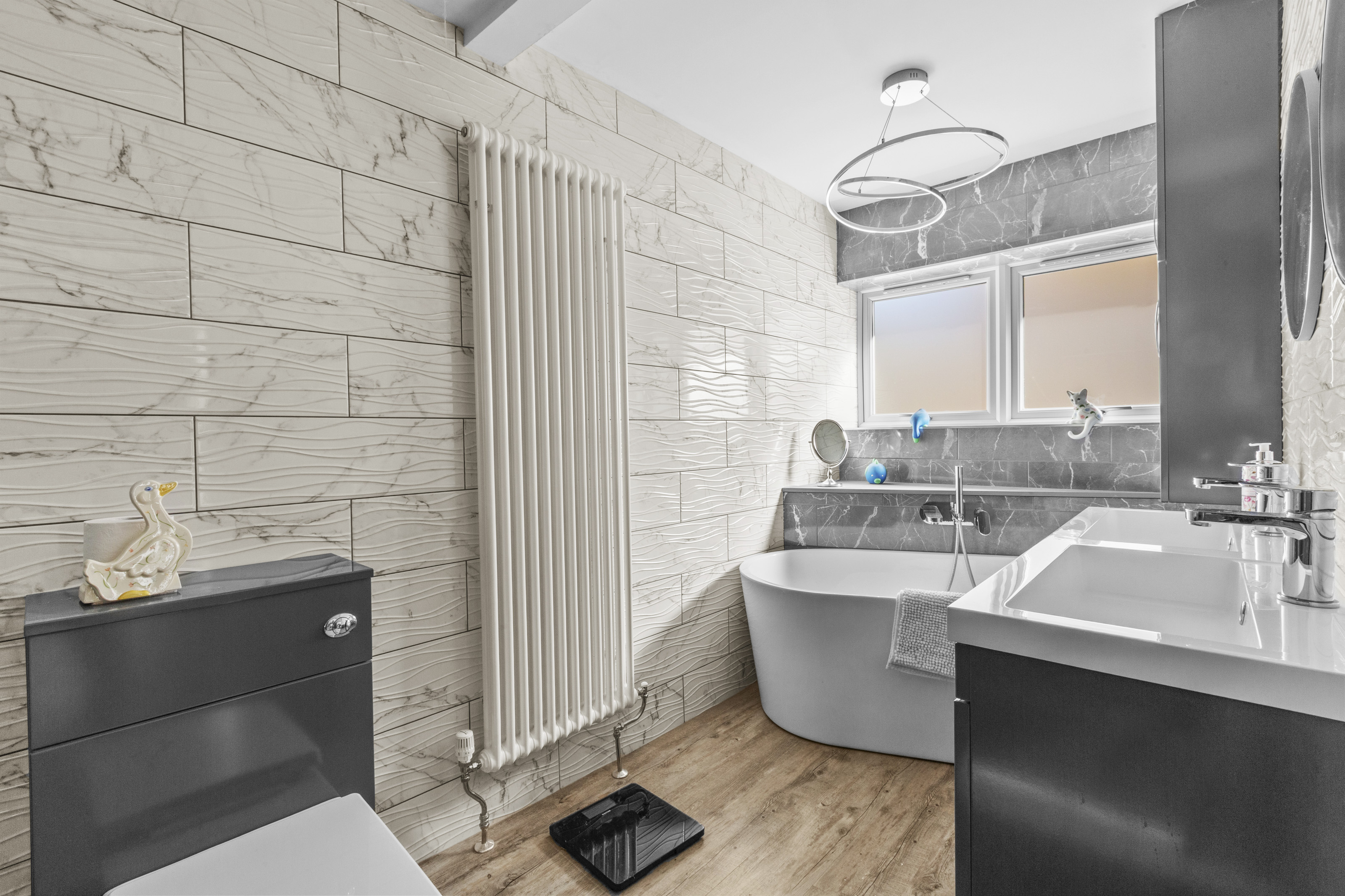 The versatile accommodation continues with four well-proportioned bedrooms, one of which could easily serve as a study or home office, ideal for modern living. The principal bedroom is a standout feature, boasting a generous dressing area and a beautiful en-suite complete with a stylish freestanding bath. A contemporary family bathroom and a practical utility room complete the internal layout.