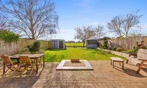 Externally, the property is equally impressive. To the front, a substantial driveway provides ample off-street parking for several motor vehicles. To the rear, the beautifully maintained garden offers a manicured lawn, vibrant, well-stocked borders, a summer house and an extensive patio area—perfect for al fresco dining while enjoying the picturesque rural backdrop.