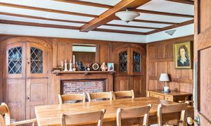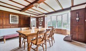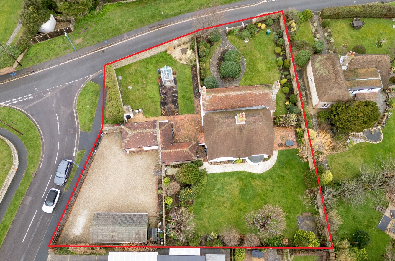 The property is distinguished by its striking partly thatched and part tiled roof, which, alongside a wealth of original period features, lends a unique charm and sense of history. Upon entering, you are welcomed into the entrance hall, which flows seamlessly through to four generously proportioned reception rooms, each with its own distinct character and potential for flexible use (such as formal living, dining, study, family room & breakfast room). The kitchen is appointed with cabinetry and workspace, providing a practical and heart to the home. Upstairs, five bedrooms are arranged around a central landing, each benefitting from comfortable proportions and natural light, making them ideal for family members or guests. Two well-fitted bathrooms serve the first floor, designed with both comfort and functionality in mind. Secure gated parking, accessed via electric gates, ensures privacy and peace of mind, with a detached garage providing additional convenience for vehicles or storage. The property further benefits from a separate workshop and a range of storage outbuildings, perfect for hobbies, crafts, or further practical requirements - the workshop offering the possibilities of conversation to an air bnb.