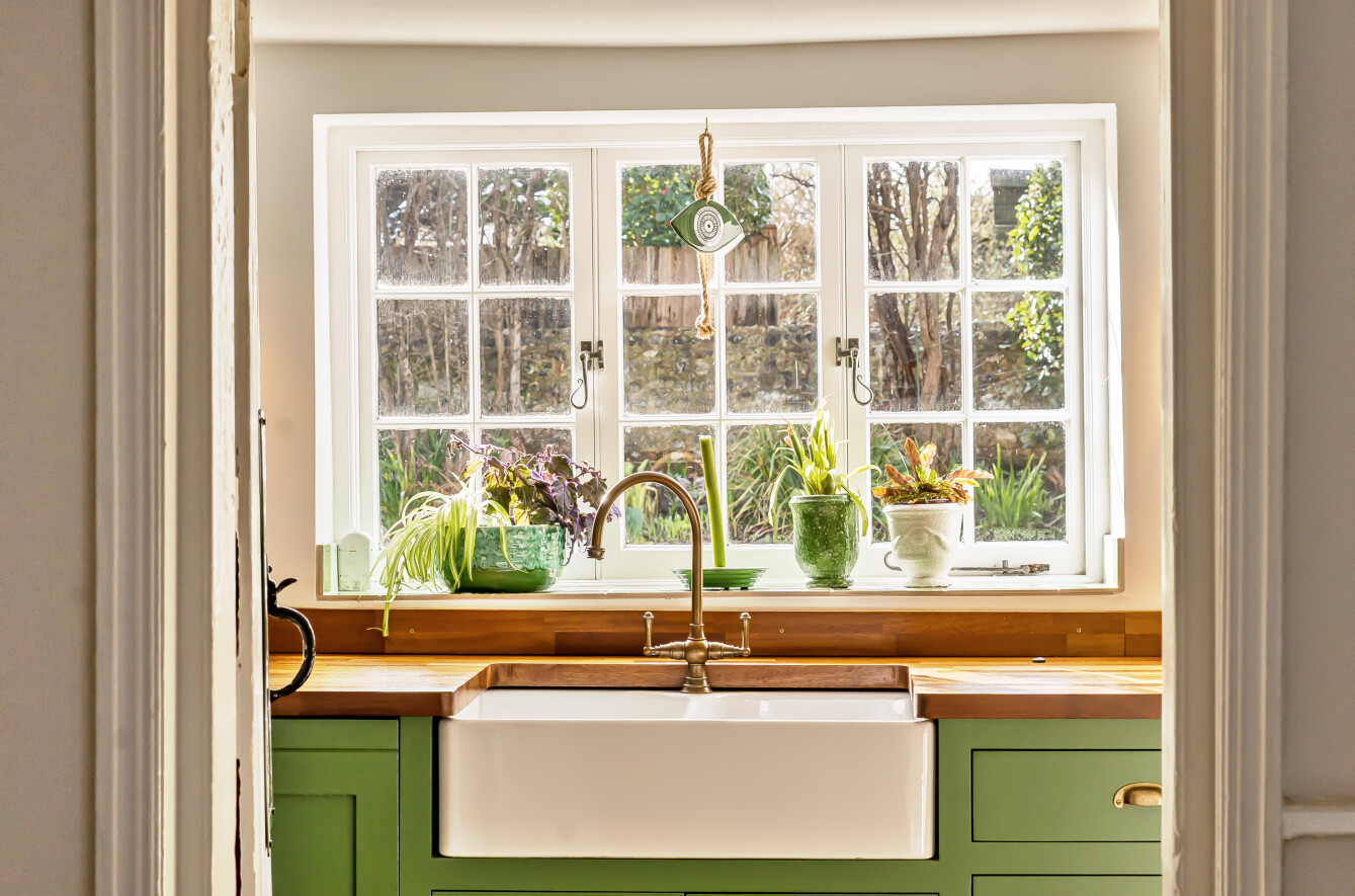 The gardens are walled and have been beautifully landscaped: to the front, a cobble-topped wall borders a lawned garden with mature trees, shrubs and flowerbeds around the edges. In addition there is a separate, high-walled kitchen garden with a greenhouse and raised planters, surrounded by a lawn. The rear garden is south-facing and is mostly lawned, though well stocked with a variety of trees and landscaped borders.