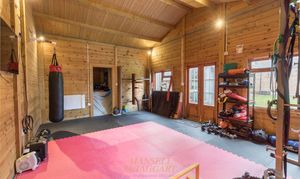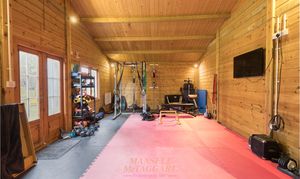 - Sizable outbuilding set as a gym with storage, power and lighting