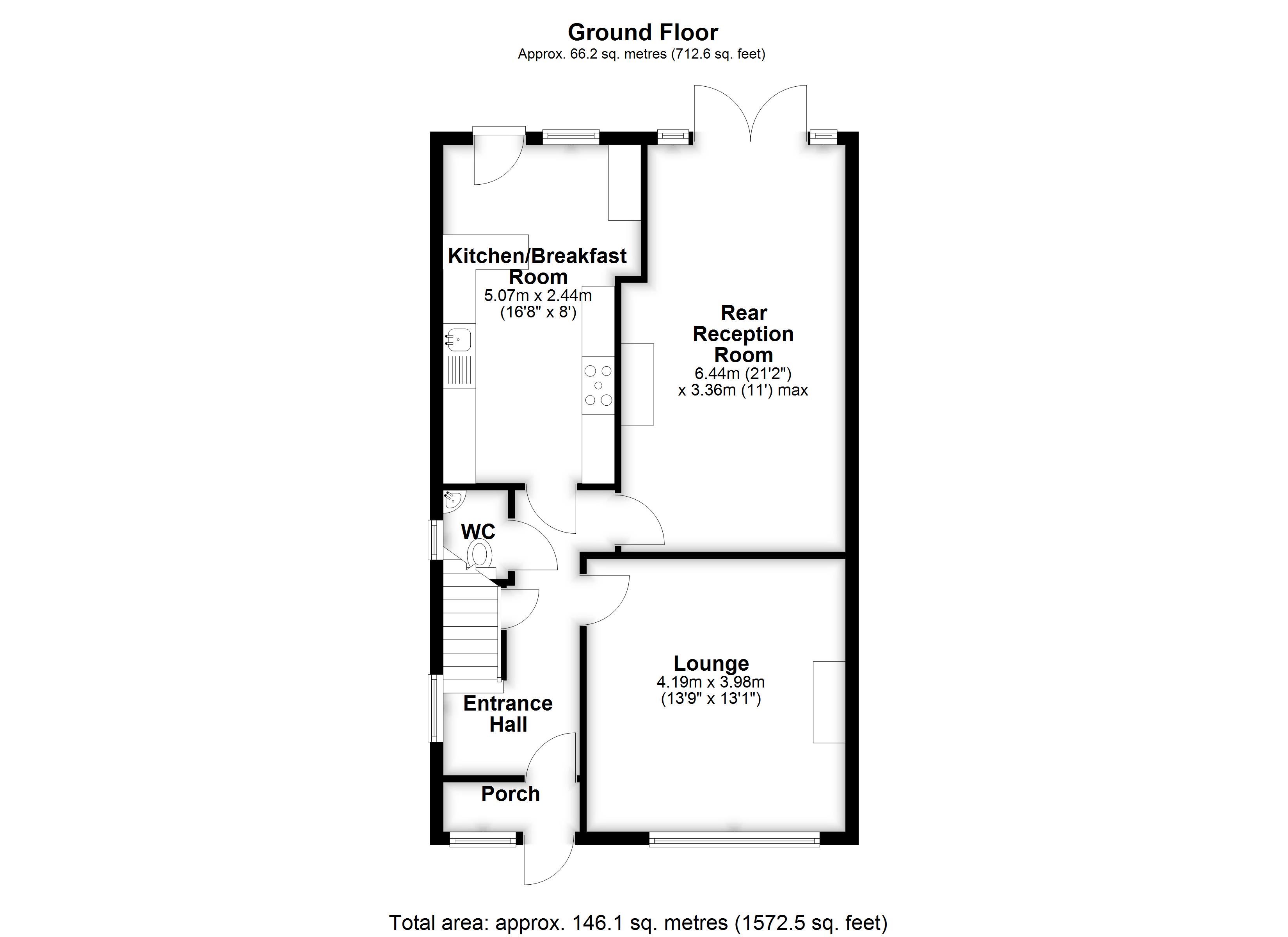 Rear Reception Room 6.44m (21'2") x 3.36m (11') max