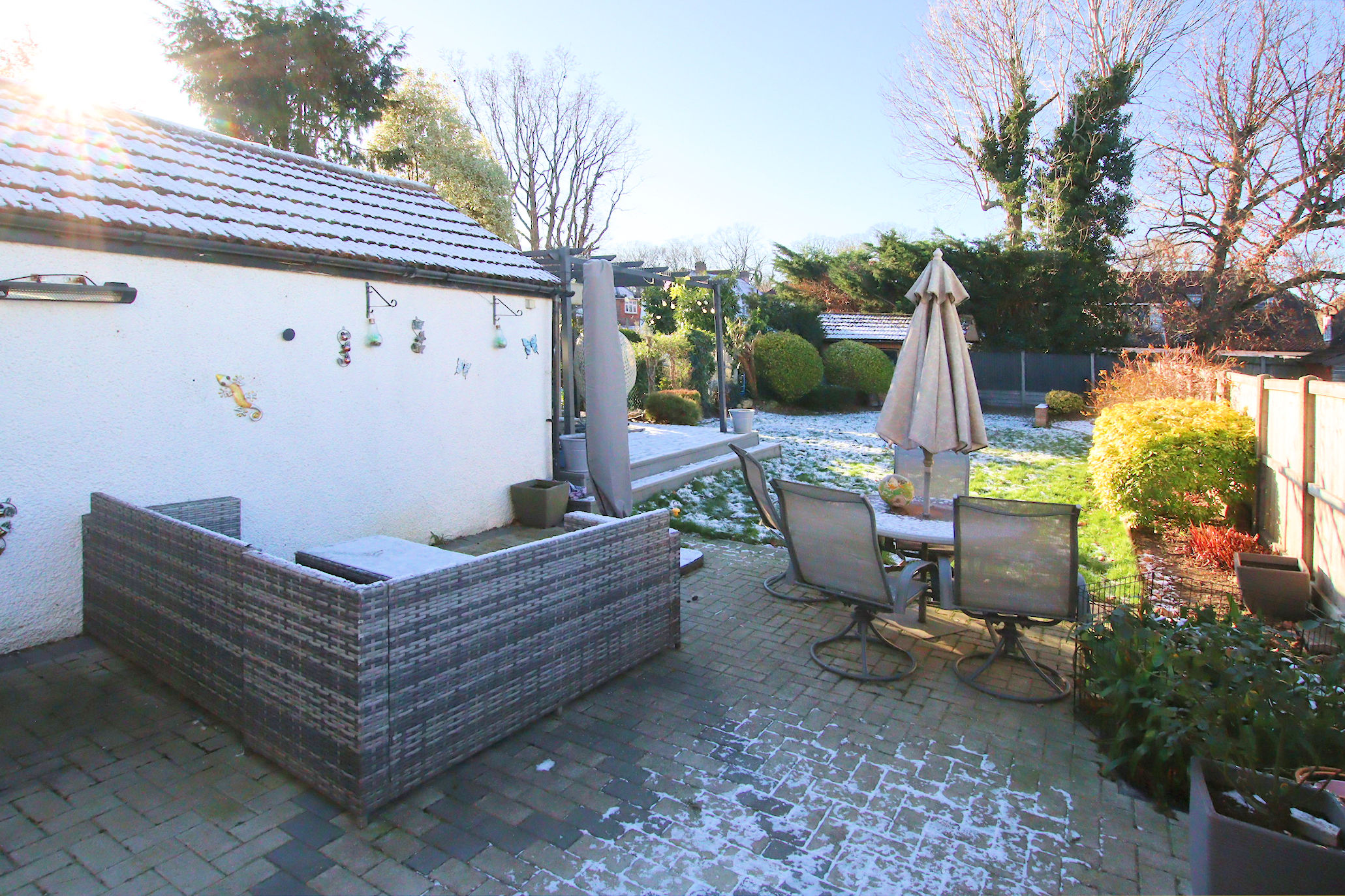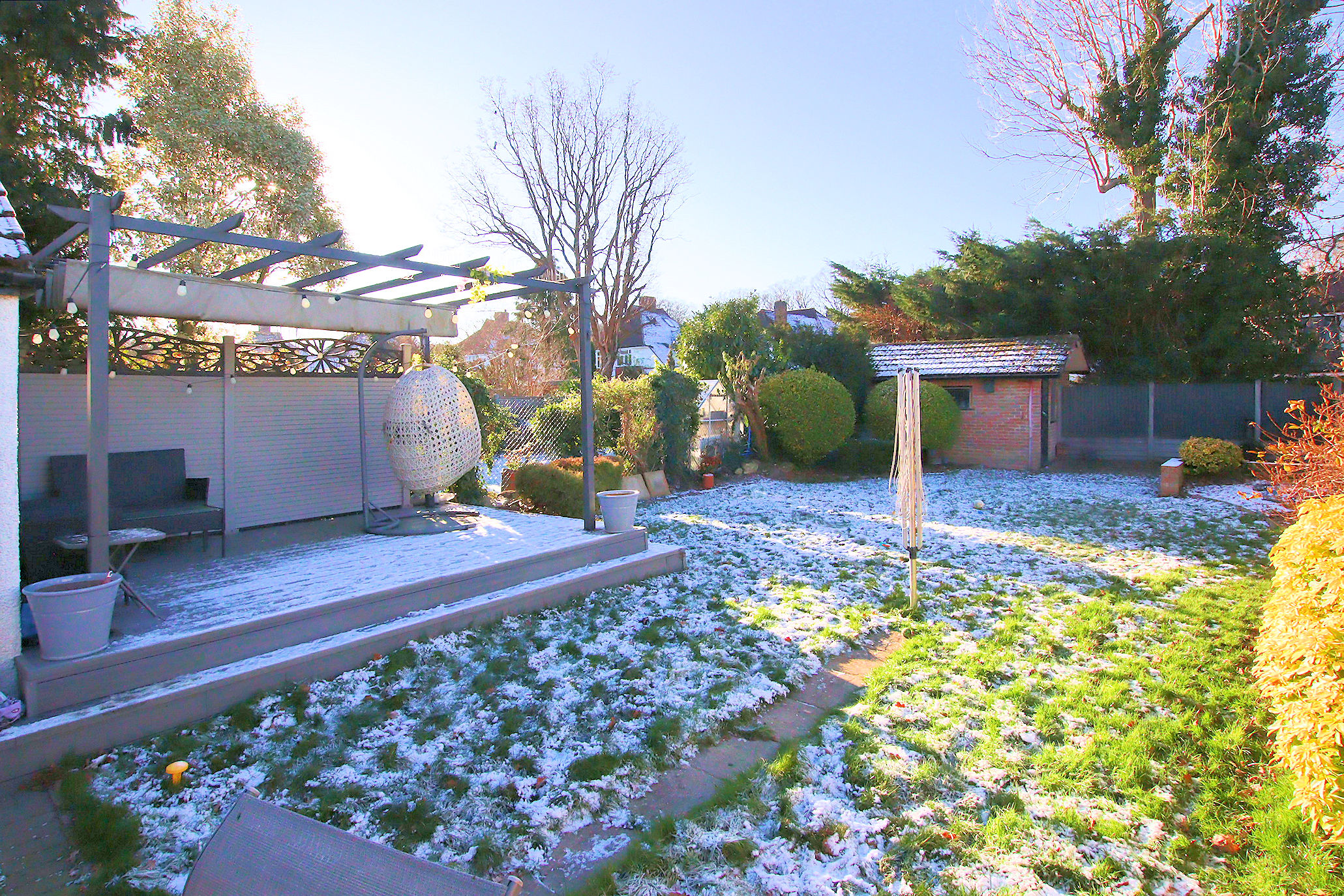 A delightful rear garden with a secluded feel and westerly asepct. There is a large patio perfect for entertaining in the summer months, with ample space in which to relax and for recreation and games!
