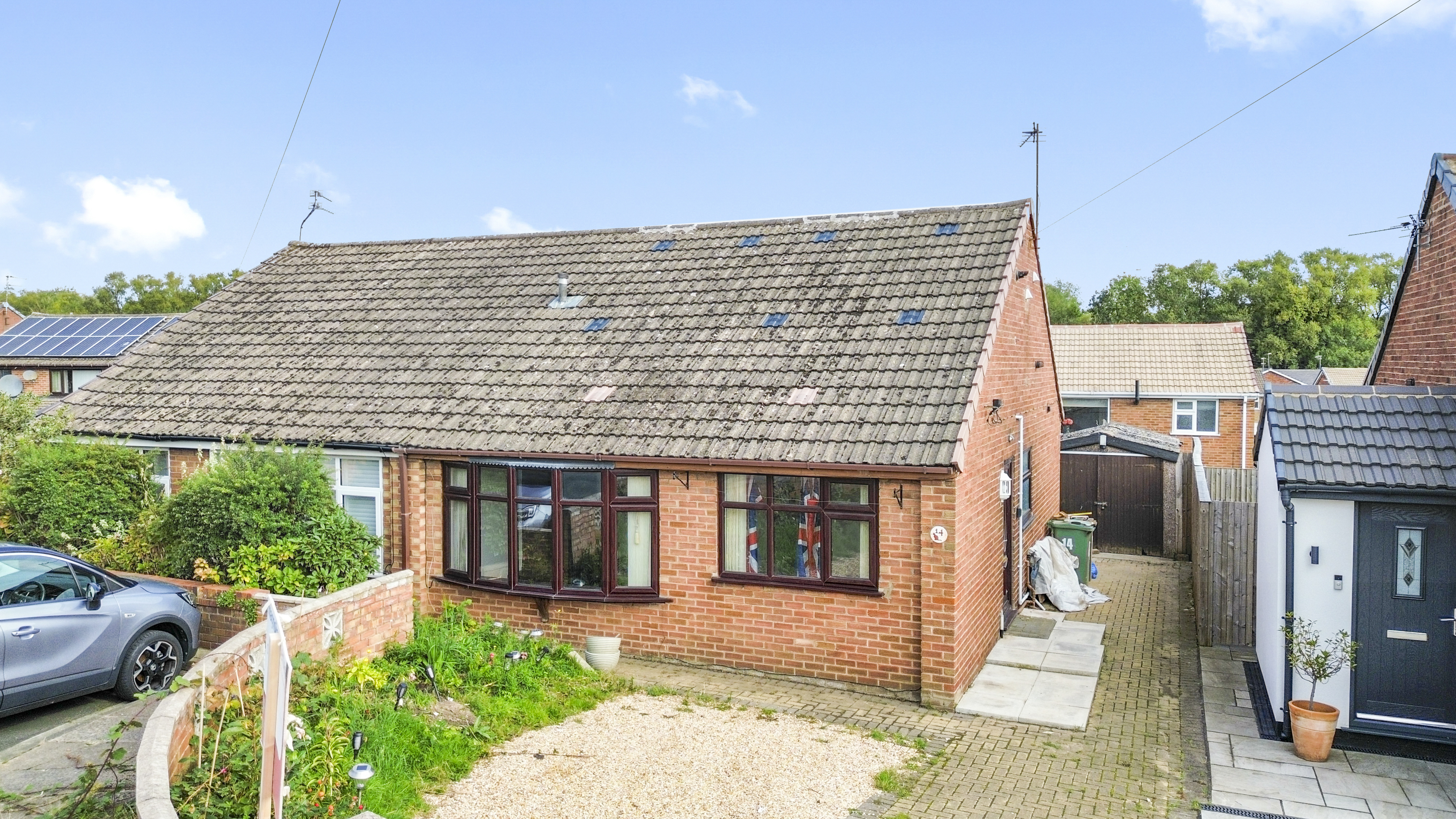 Ascending to the first floor, two additional bedrooms await, one of which is already plumbed for an ensuite, providing the potential for a luxurious private retreat. The property boasts driveway parking for a couple of cars, ensuring convenience for residents and visitors alike. A low-maintenance paved rear garden offers a serene outdoor space for al fresco dining or simply unwinding under the open sky.