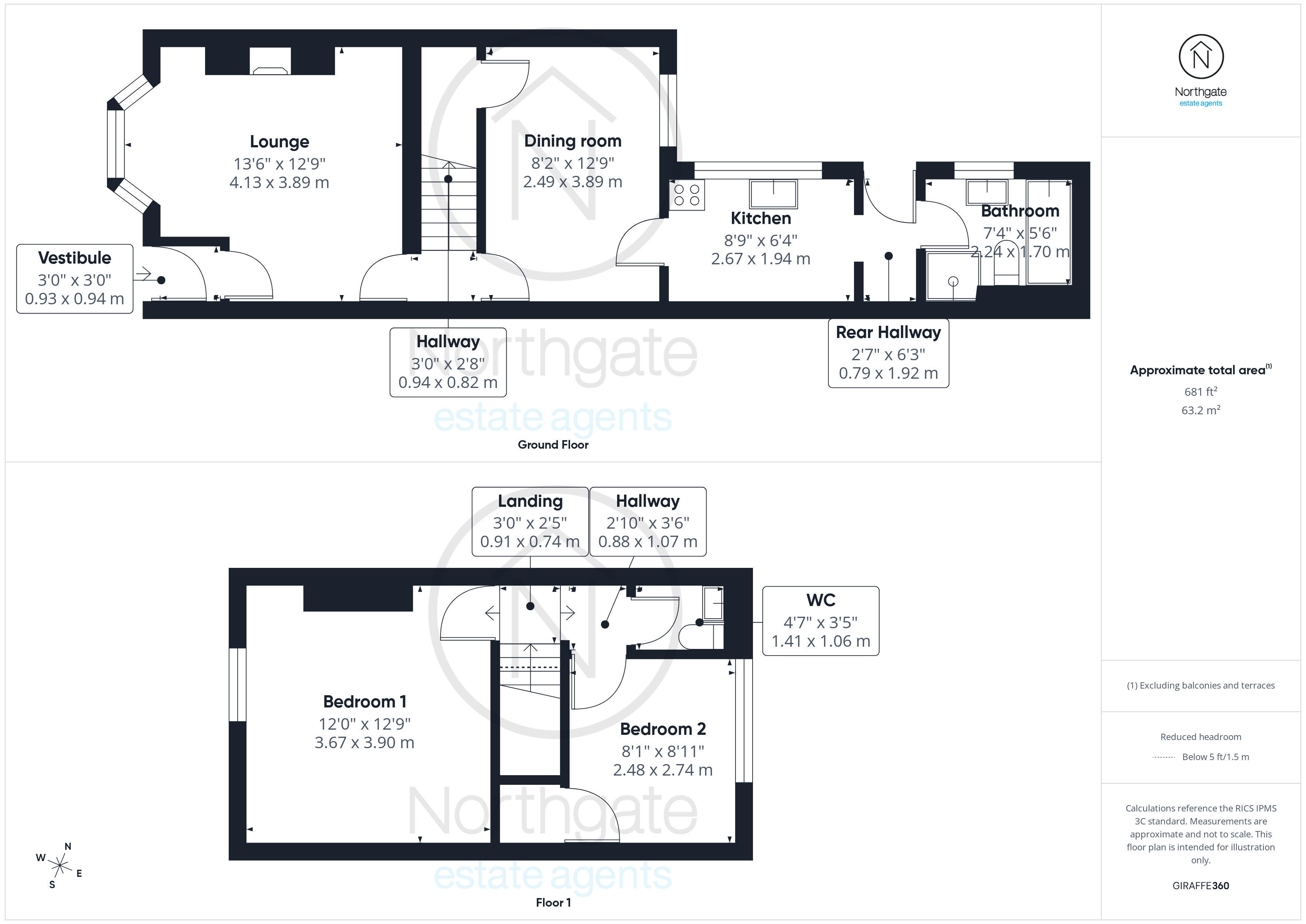 To the first floor, the property offers two generously sized bedrooms, each providing comfortable accommodation and flexibility for a variety of uses. The bathroom is fitted with a shower enclosure, and there is also the added benefit of a convenient separate WC located on the first floor.