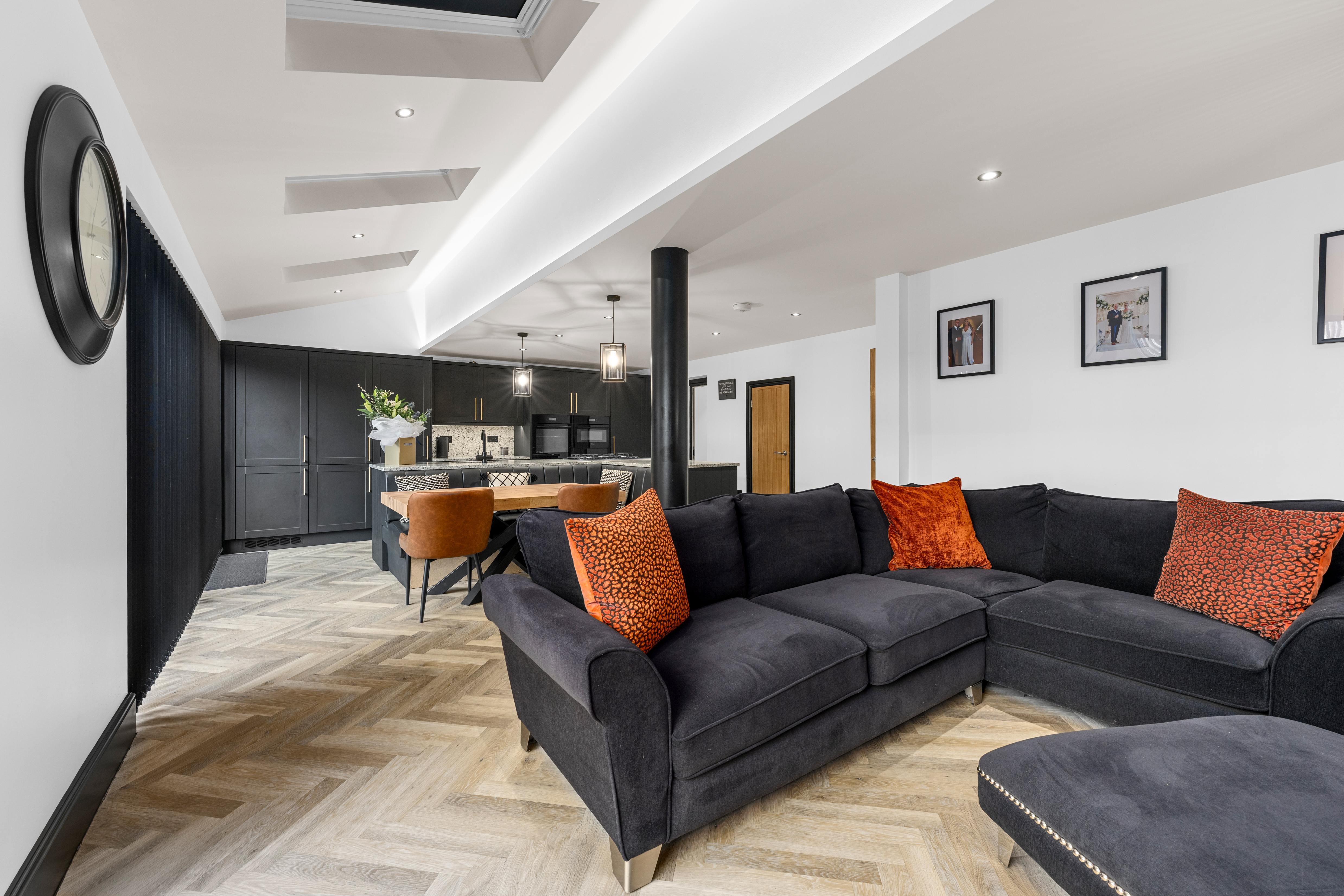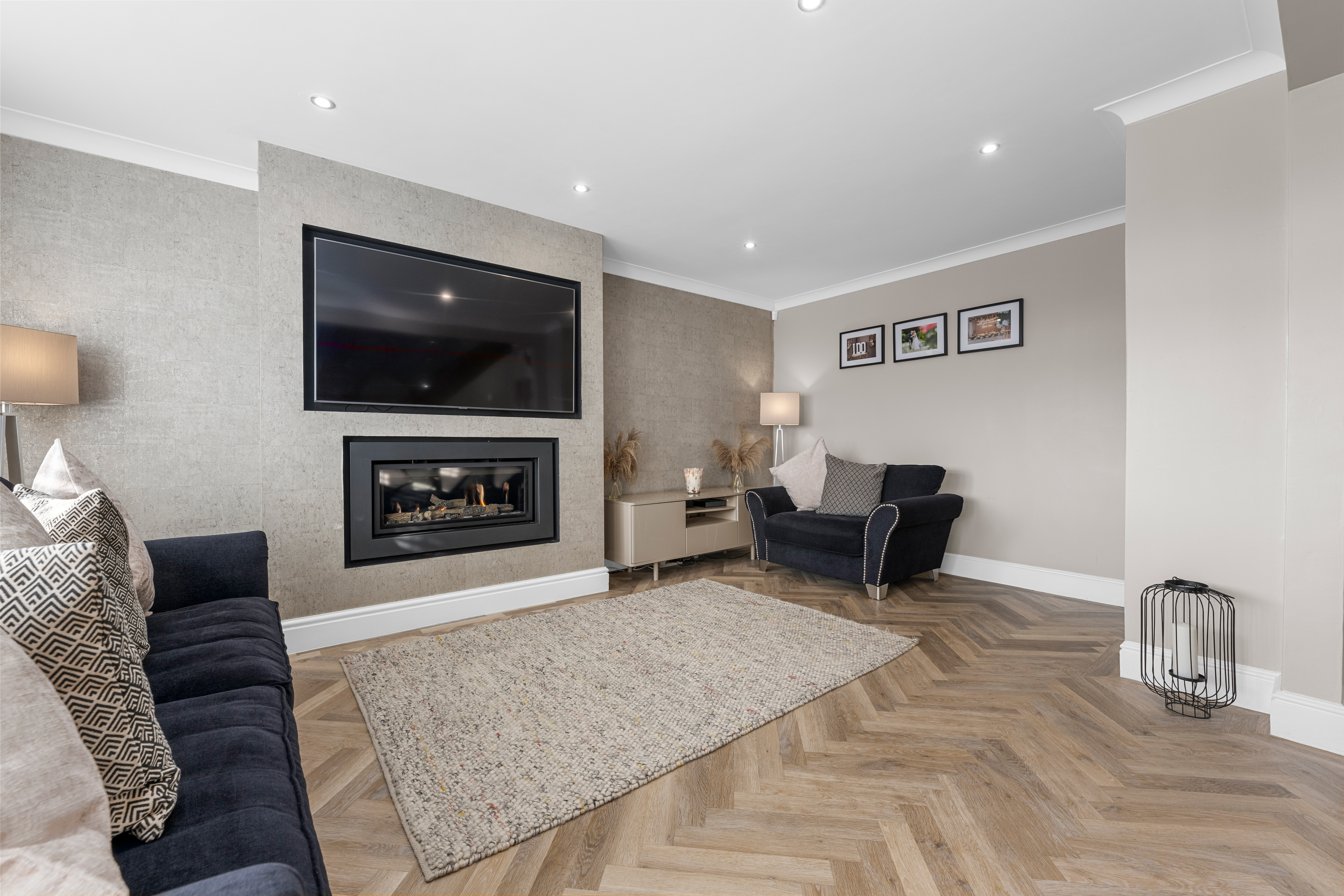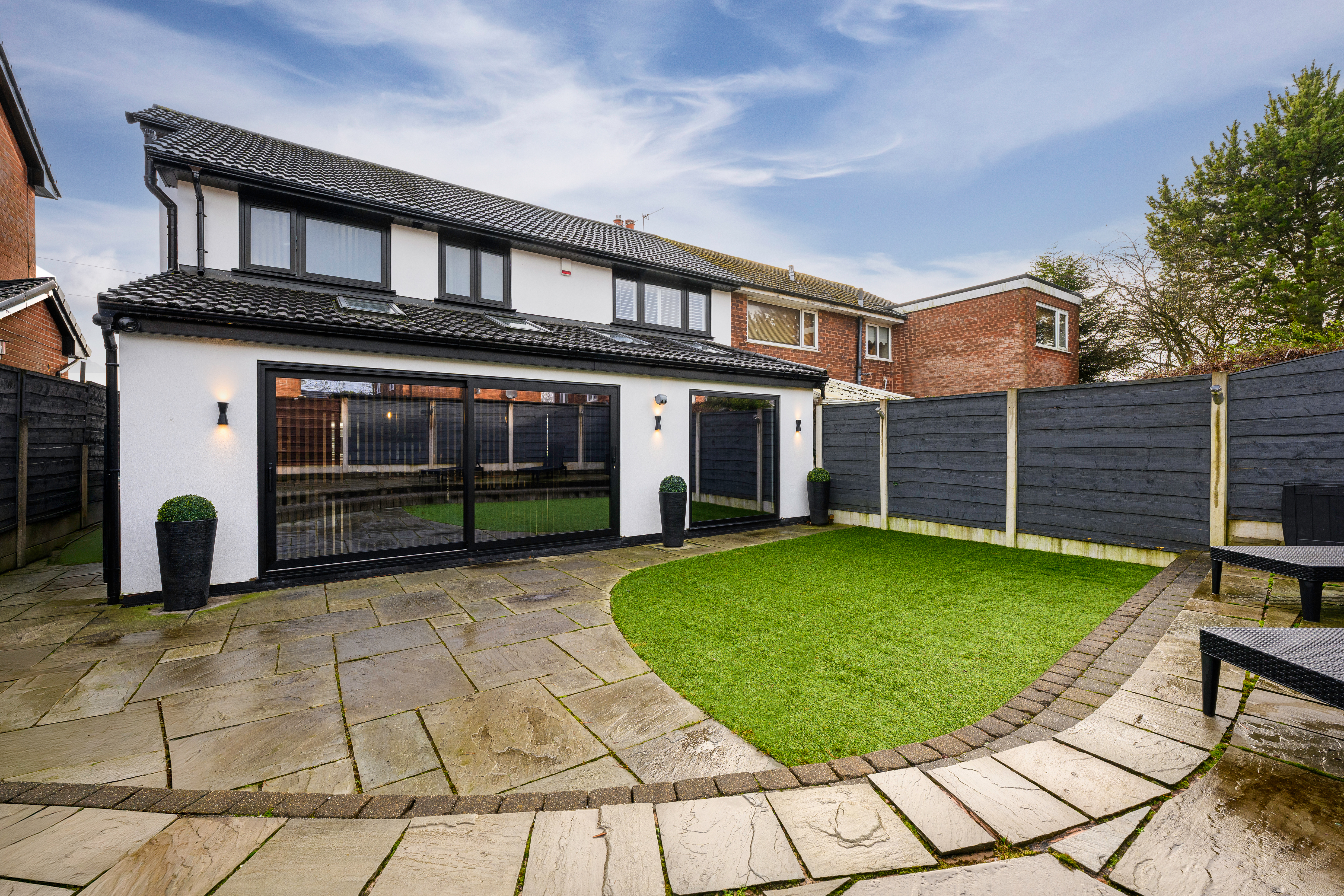 This fabulous extended and remodelled semi detached property offers an exceptional standard of contemporary living, thoughtfully reconfigured from its original four-bedroom layout to now provide three generous double bedrooms. The master suite is a true sanctuary, featuring a dedicated dressing area and a luxurious en-suite bathroom, all finished to the highest specification. Upon entry, impressive double opening doors reveal a welcoming hallway, leading to the heart of the home: beautiful large lounge ideal for relaxing and entertaining, plus an expansive kitchen, dining, and family room. This space is beautifully appointed with granite worktops, integral appliances, and underfloor heating, creating a perfect setting for both every-day living and entertaining. The ground floor boasts herringbone LVT flooring throughout, complemented by a neutral palette and high-quality finishes. A sizeable utility and laundry room offers versatility, with ample space to accommodate a home gym. Both bathrooms are fully tiled and modern, reflecting the property’s meticulous attention to detail. Practicality is matched by security and convenience, with off-road parking for three vehicles at the front, secured by retractable security posts. This residence seamlessly blends elegance and functionality, presenting a unique opportunity for discerning buyers seeking a stylish, move-in ready home with scope for personal touches or further enhancement. Well situated for access to local shops, schools and transport links. Viewing is highly recommended to appreciate all this beautiful home has to offer.