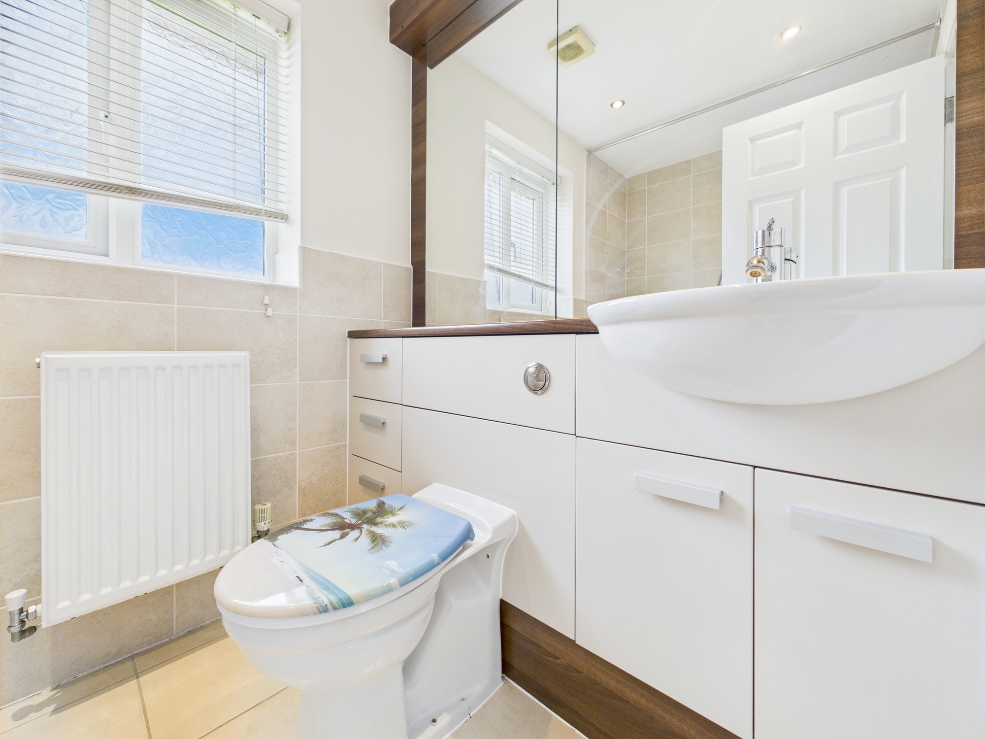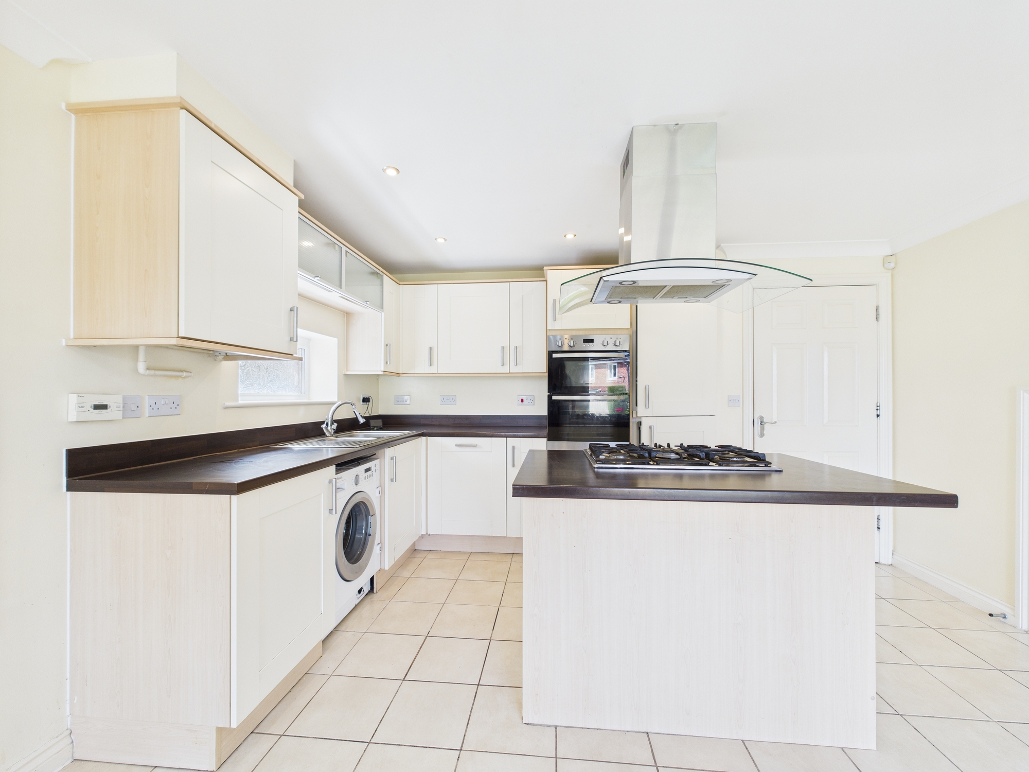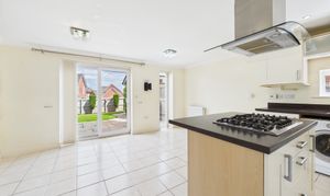 The ground floor welcomes you with a stylish hallway featuring convenient tiled flooring continuing into the downstairs WC. A spacious living room serves as the principal reception area, offering garden access and a fireplace as its focal point. The property boasts an open-plan kitchen-living-dining space, equipped with L-shaped fitted units, breakfast island with inset hob and extractor, embodying modern living with additional garden access.
