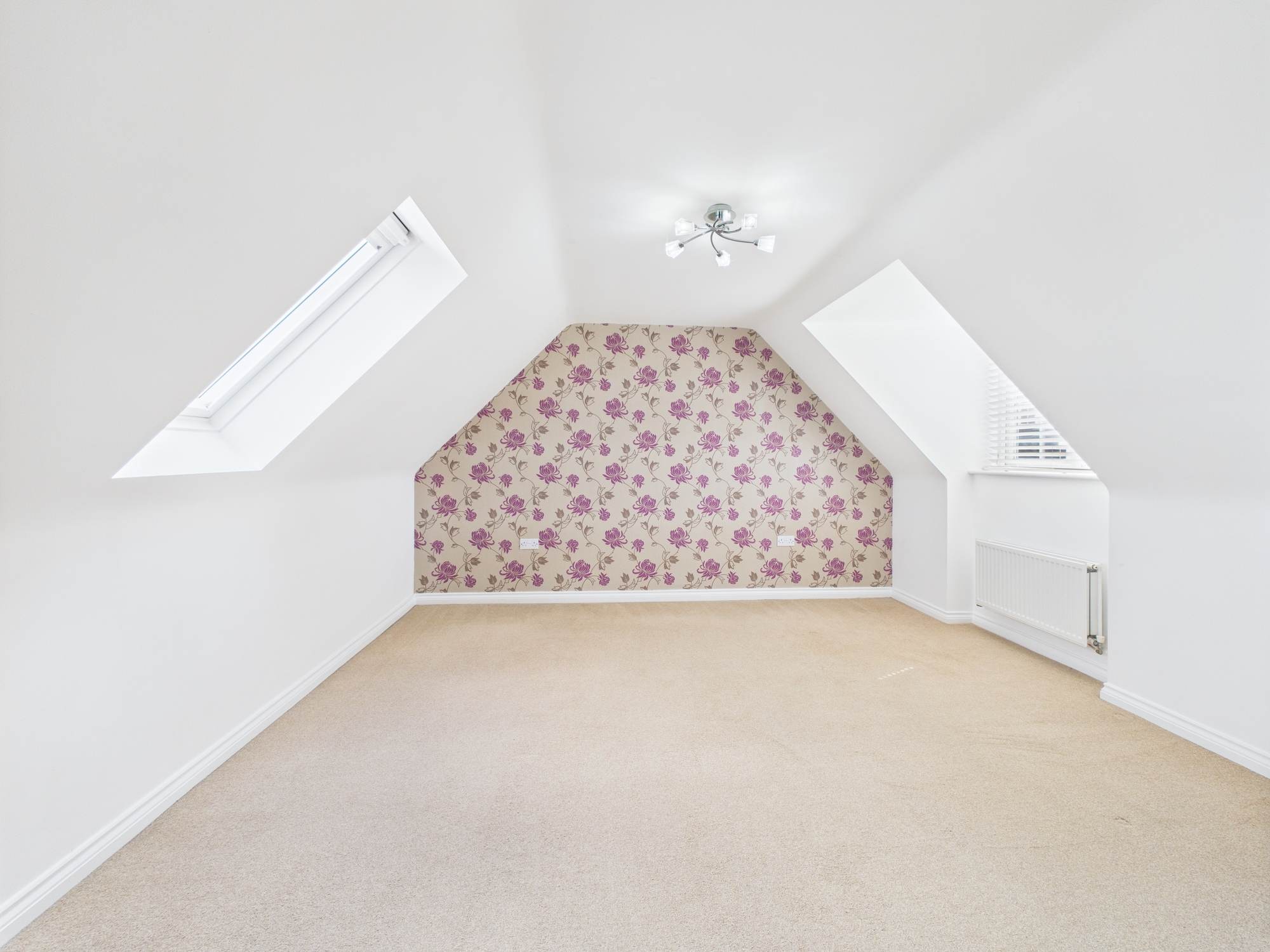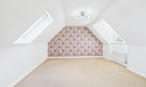 The first-floor landing, with its spindled balustrade, leads to three good-sized bedrooms. The main bedroom boasts generous proportions and includes a private en-suite shower room, while a family bathroom serves the other bedrooms. An enclosed hallway from the landing provides stair access to the impressive top floor bedroom, which offers excellent headroom and serves as an ideal retreat for teenagers or could function as the principal bedroom. This showstopper room features fine views through skylight windows and benefits from its own private en-suite shower room.
