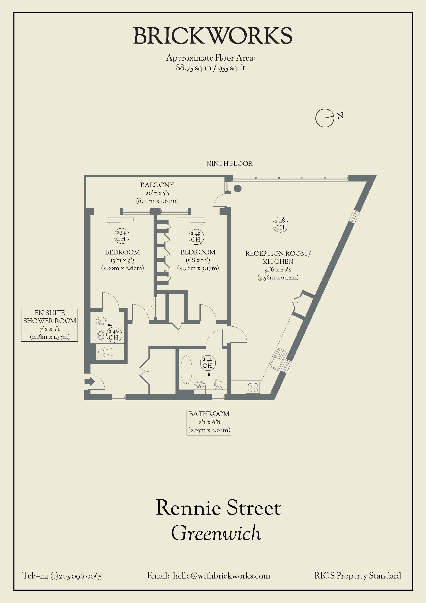 - Size: 955 sq ft / 88.75 sq m