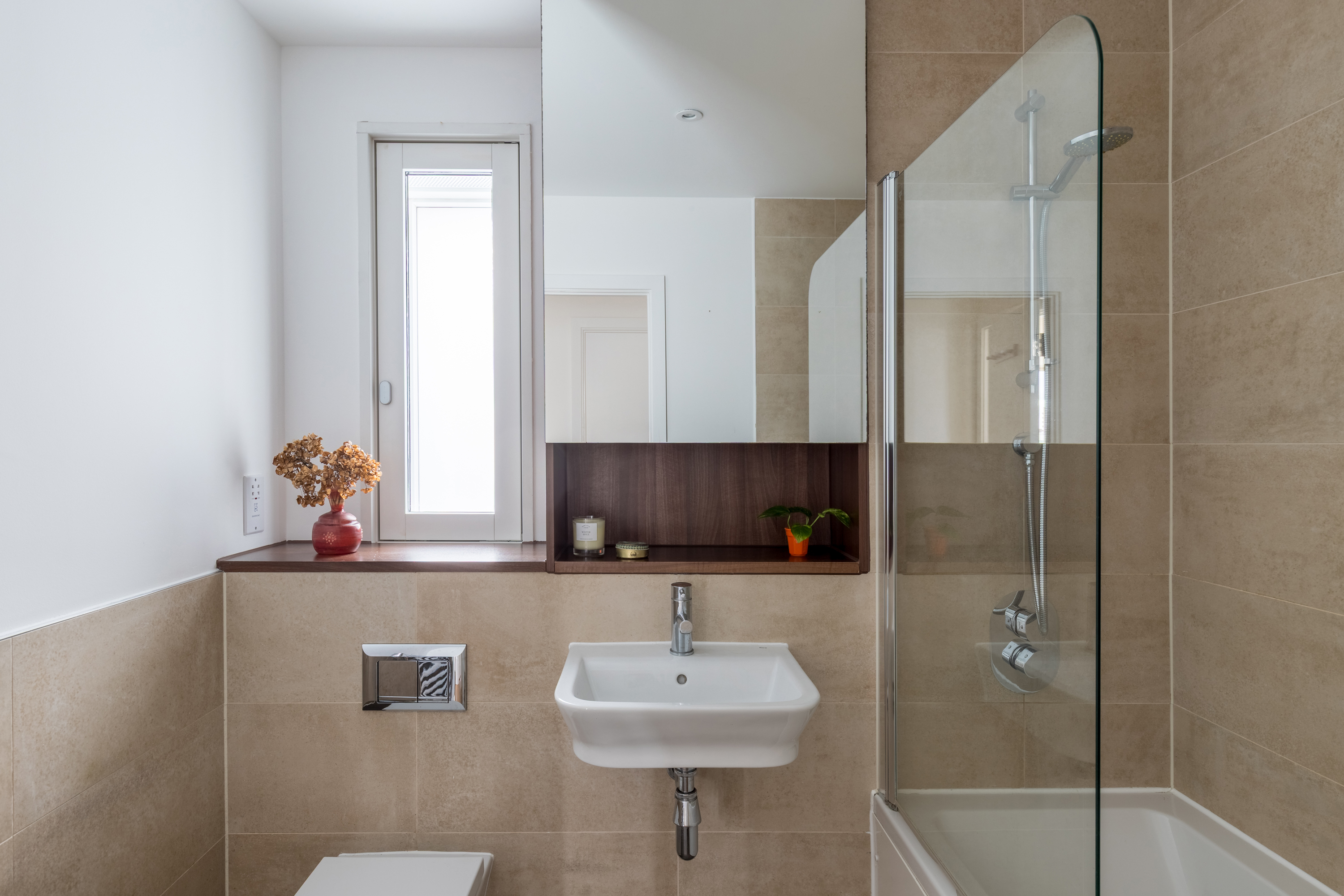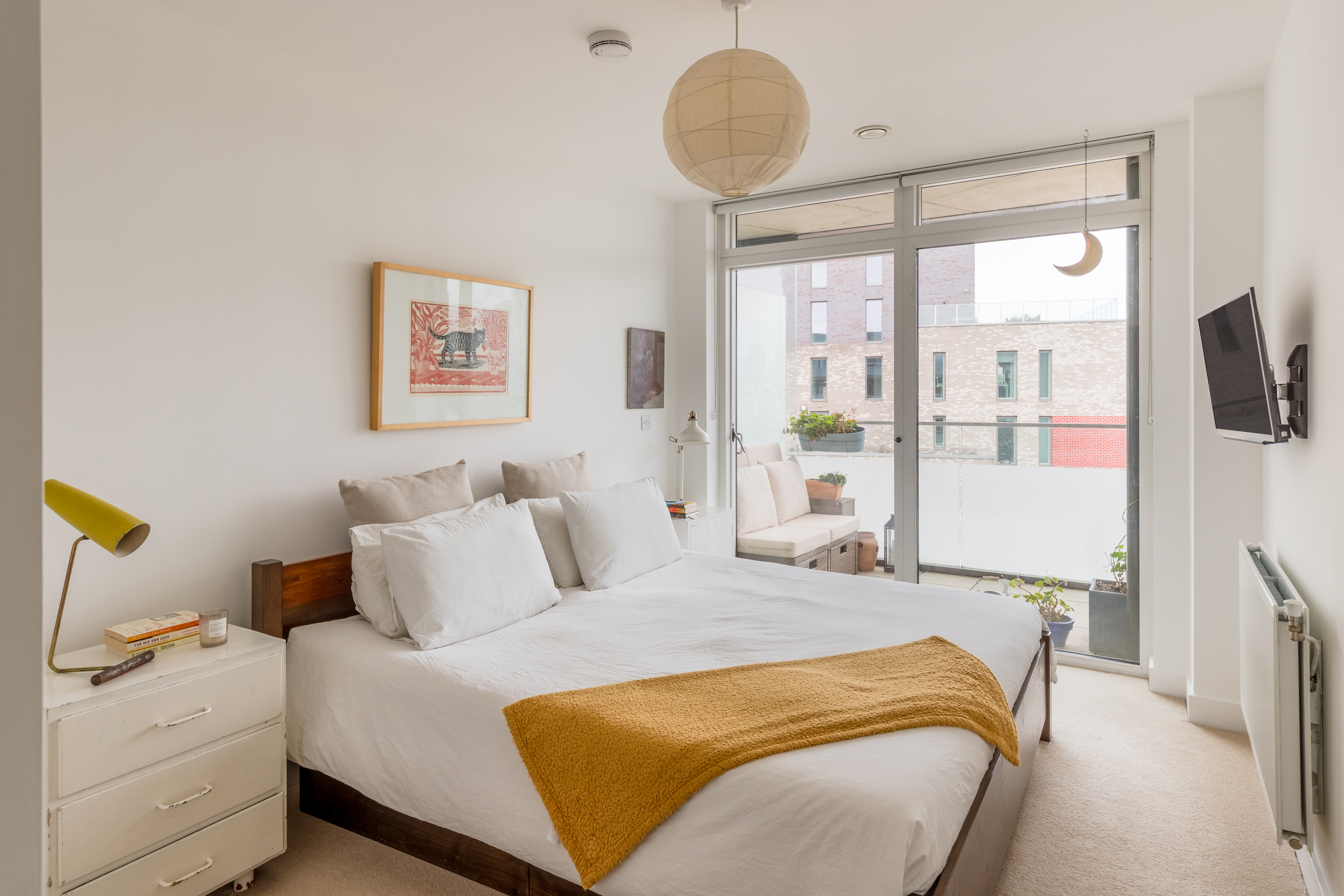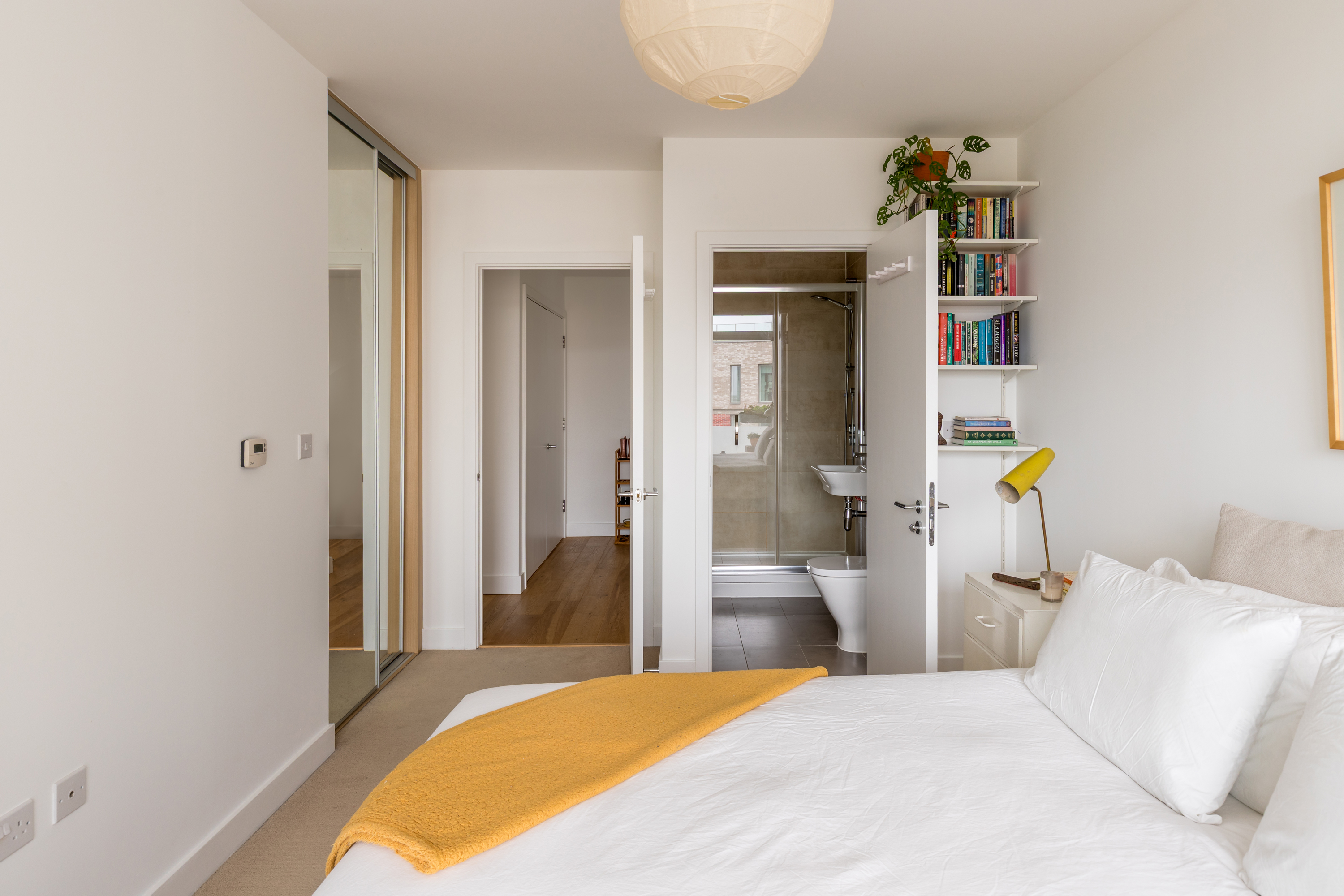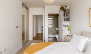 Both bedrooms have full-length windows giving direct access to the balcony, so mornings begin with sunlight and views rather than alarms. The principal bedroom comes with a smart en-suite bathroom, while the second bedroom offers excellent built-in storage and much-desired flexibility. The overall palette is considerate and neutral, letting the architecture — and the outlook — do the talking.