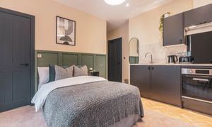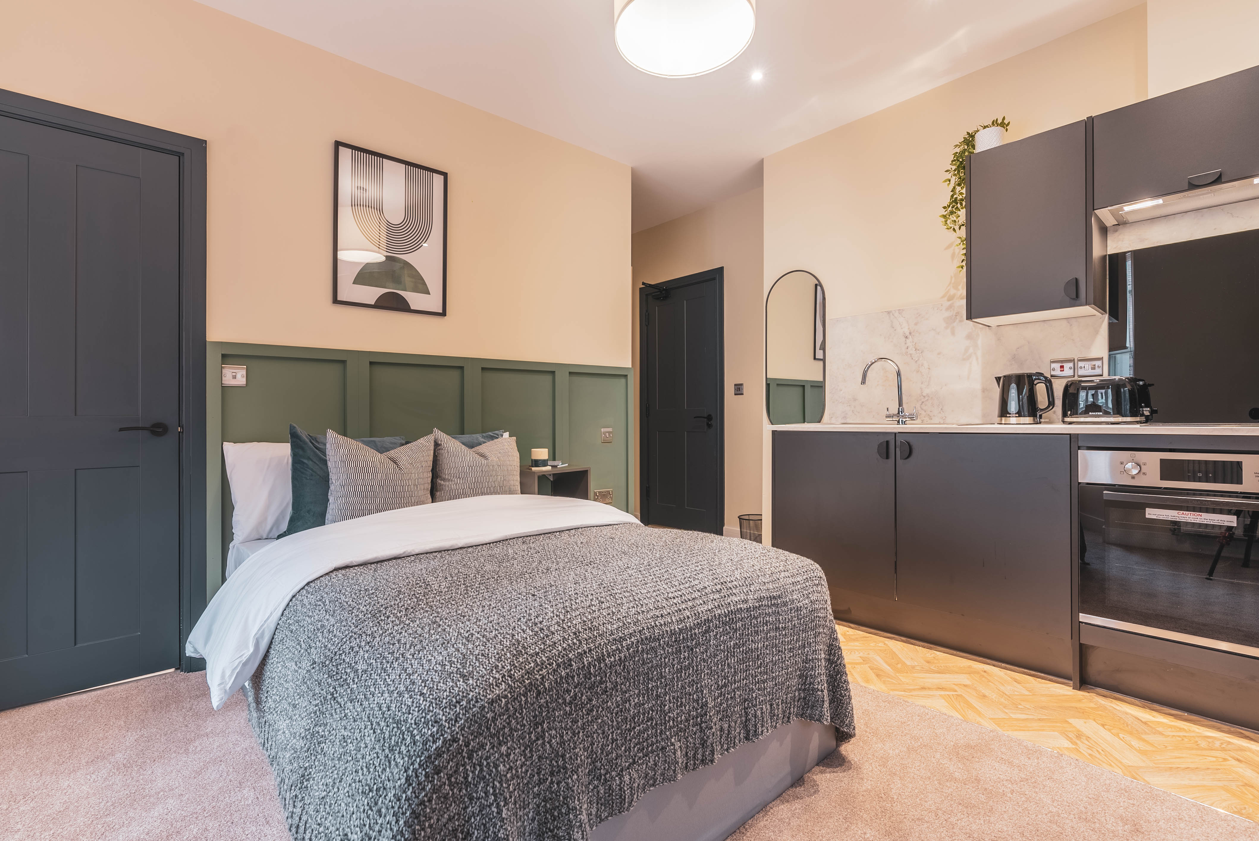 THE STUDIO OFFERS EN-SUITE FACILITIES AND INCLUDE LARGE KITCHENETTES & PERSONAL DESK SPACE.