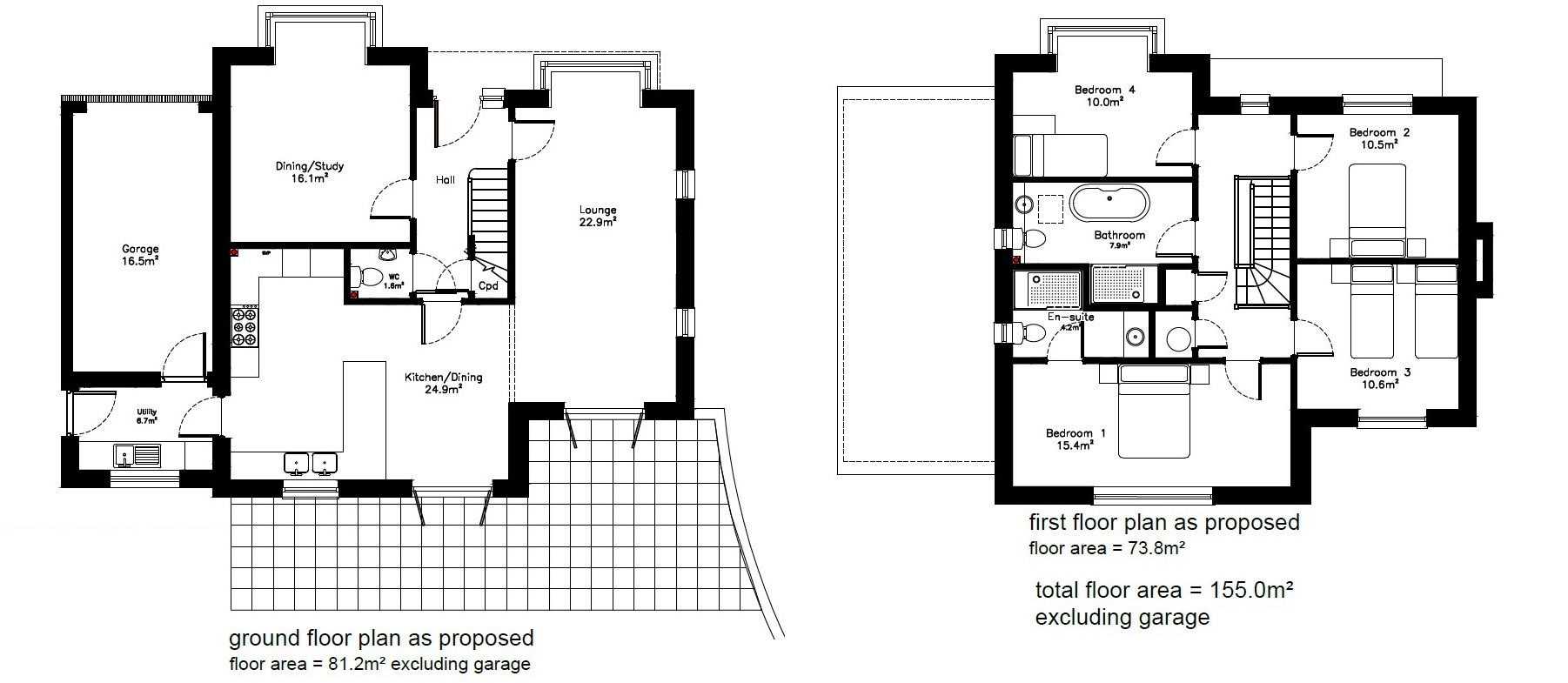 Plot six itself is a detached home of approx. 155sqm (1667sqft) plus the garage, making it a good sized family home. The layout offers a large, front to back living room, a second reception that could be used as a separate dining room, study or second living room and then a kitchen/dining room at the back opens onto the rear terrace making it a very sociable space. As you may expect from a home like this, there’s a separate utility room and ground floor WC too. On the first floor are the four bedrooms with the principle bedroom having it’s own ensuite shower room and views to the rear. We love the look of the wrap around landing used to access two further double bedrooms and a fourth bedroom too, all sharing the family bathroom.