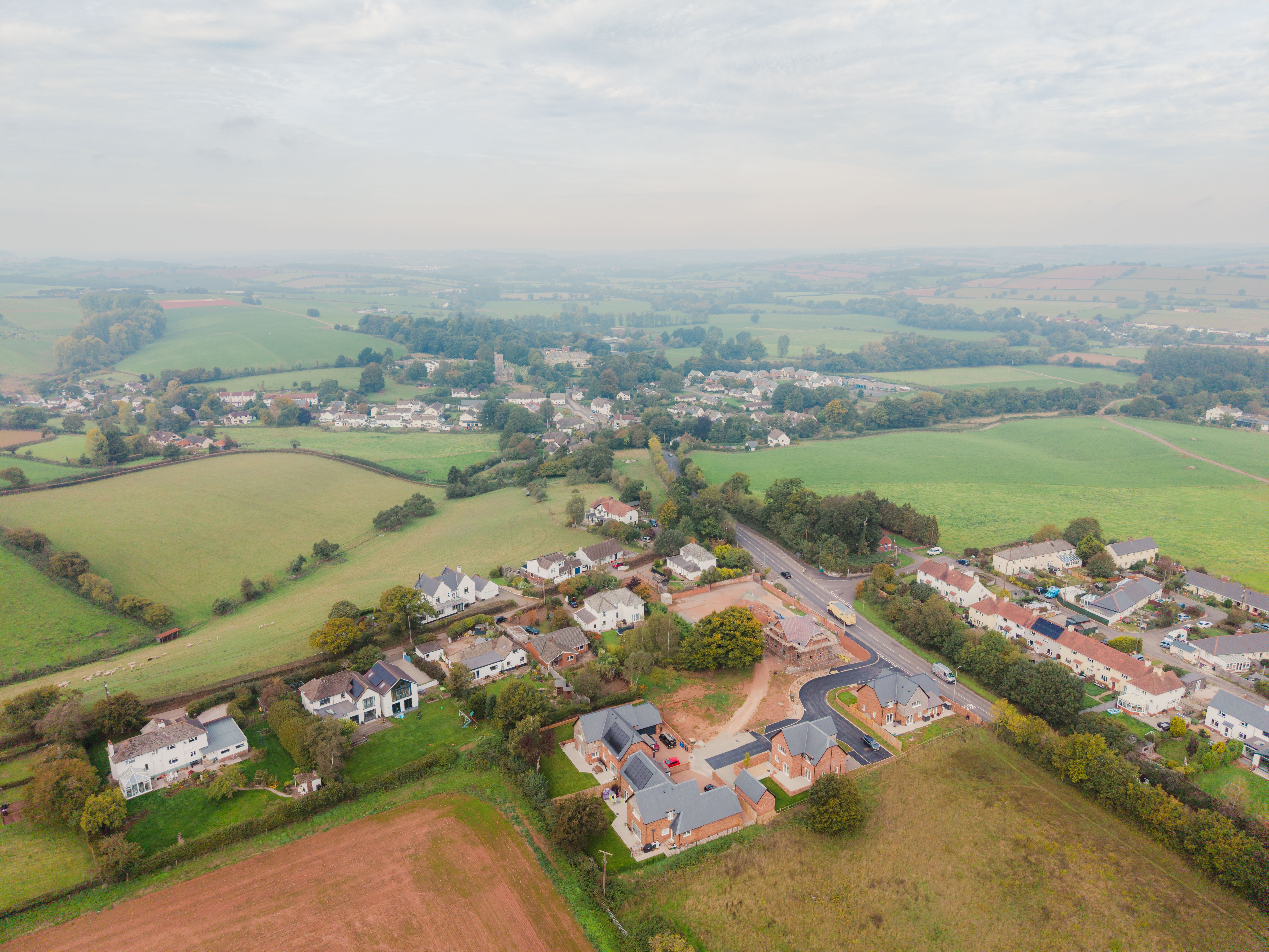 From Crediton: Head towards Exeter on the A377 and enter the village of Newton St Cyres, go through the dip (passing Belluno’s on your left) and up the other side. The new development is on the right just past the turning to Sand Down Lane (it’s the old school site).