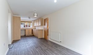 To the front of the property there is driveway parking for two vehicles and access to the integral garage. On entering, a welcoming hallway opens into a stylish open-plan kitchen and dining room that runs the depth of the house. The kitchen is positioned to the front and includes an integrated dishwasher, with designated space for a washing machine and fridge-freezer. The dining area at the rear opens through patio doors into the garden, creating an inviting setting for family life and entertaining. A separate lounge also overlooks the rear garden with its own patio doors, offering a light-filled and comfortable living space. A convenient cloakroom completes the ground floor.