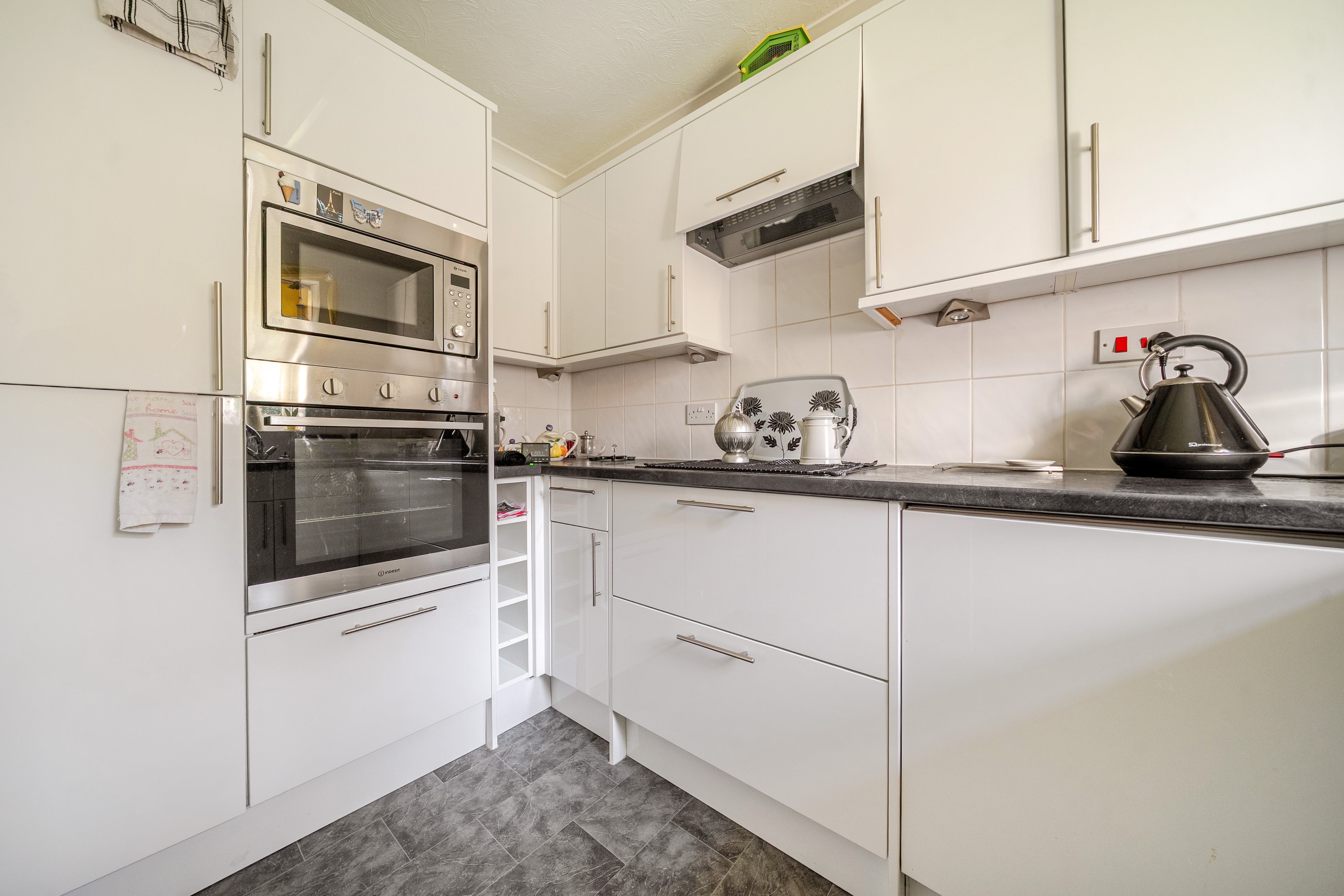 You are welcomed into the hallway which leads to the light and airy living room with double doors giving direct access out to a patio area overlooking the enclosed communal gardens. The living room leads through into the well-appointed fitted kitchen with integrated appliances and window overlooking the garden.