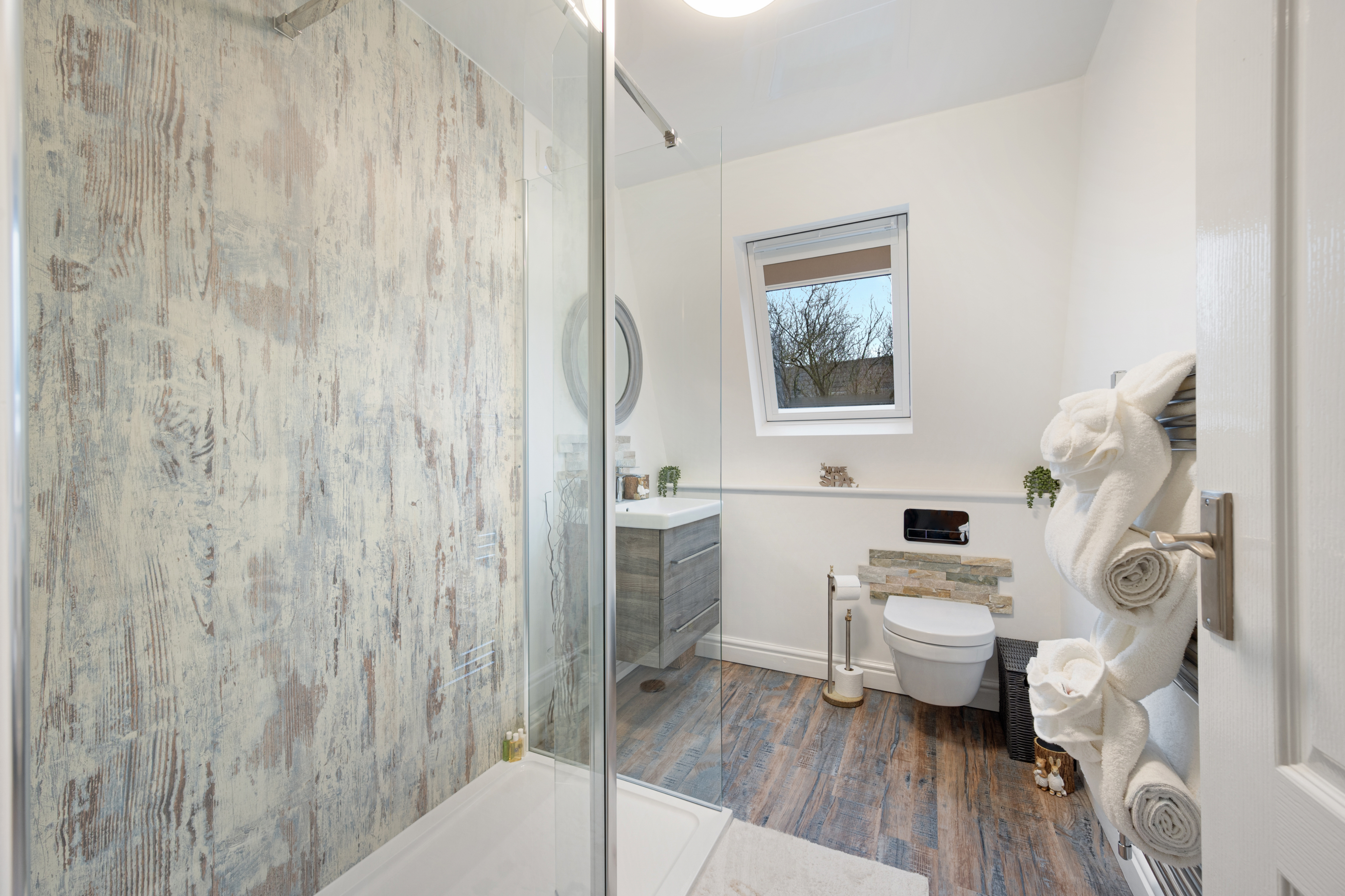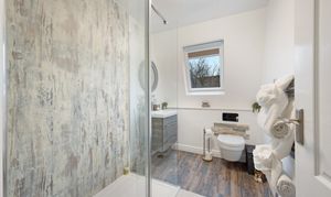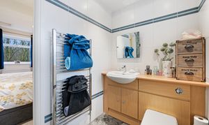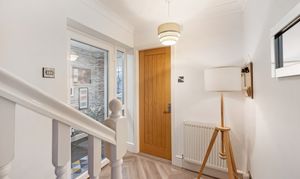 Upstairs, the impeccable presentation continues with a master bedroom with fitted wardrobes and a modern ensuite. There are two further double bedrooms also complete with fitted wardrobes and a newly installed, stylish family shower room with Villeroy & Bosch sink and WC.