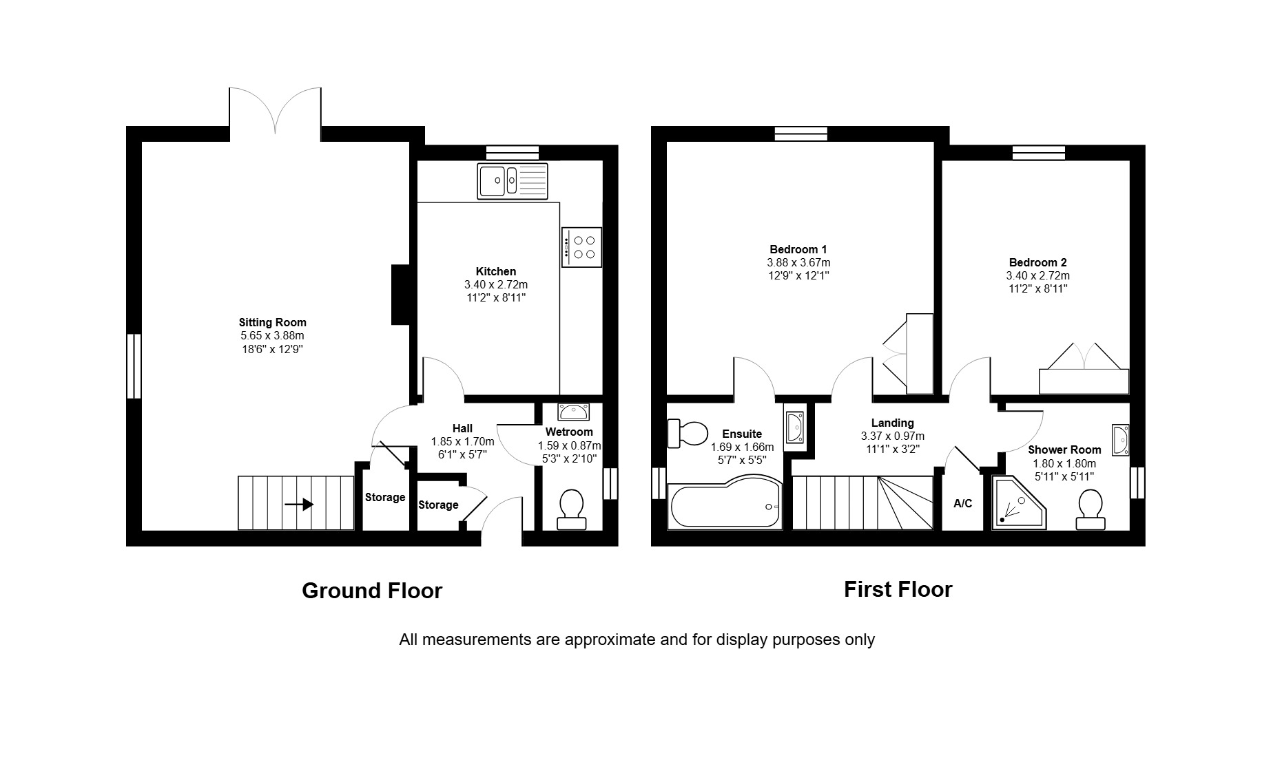 The property exudes warmth and character, seamlessly blending contemporary comfort with thoughtful touches throughout. Upon entry, you are welcomed into a pleseant entrance hall from where there is access to a well-proportioned sitting room, where natural light pours in through elegant French doors, creating an inviting and versatile living space ideal for relaxing or entertaining. The adjacent fitted kitchen is both stylish and practical, featuring integrated appliances and ample storage, along with space for a breakfast table, making it a delightful spot for morning coffee or casual dining. A modern ground floor wetroom adds flexibility and convenience for guests or those seeking step-free living.