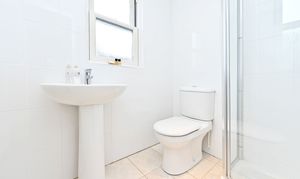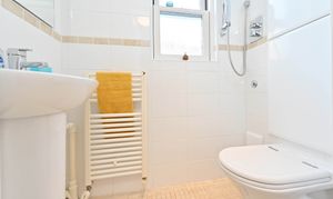 Upstairs, two generously sized bedrooms provide tranquil retreats, each enhanced by fitted wardrobes for ample storage. The master bedroom is complemented by a private ensuite bathroom, while a separate shower room serves the second bedroom, ensuring comfort and privacy for residents and visitors alike.