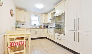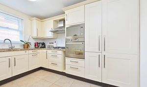 - Fitted kitchen with integrated appliances and space for a breakfast table.