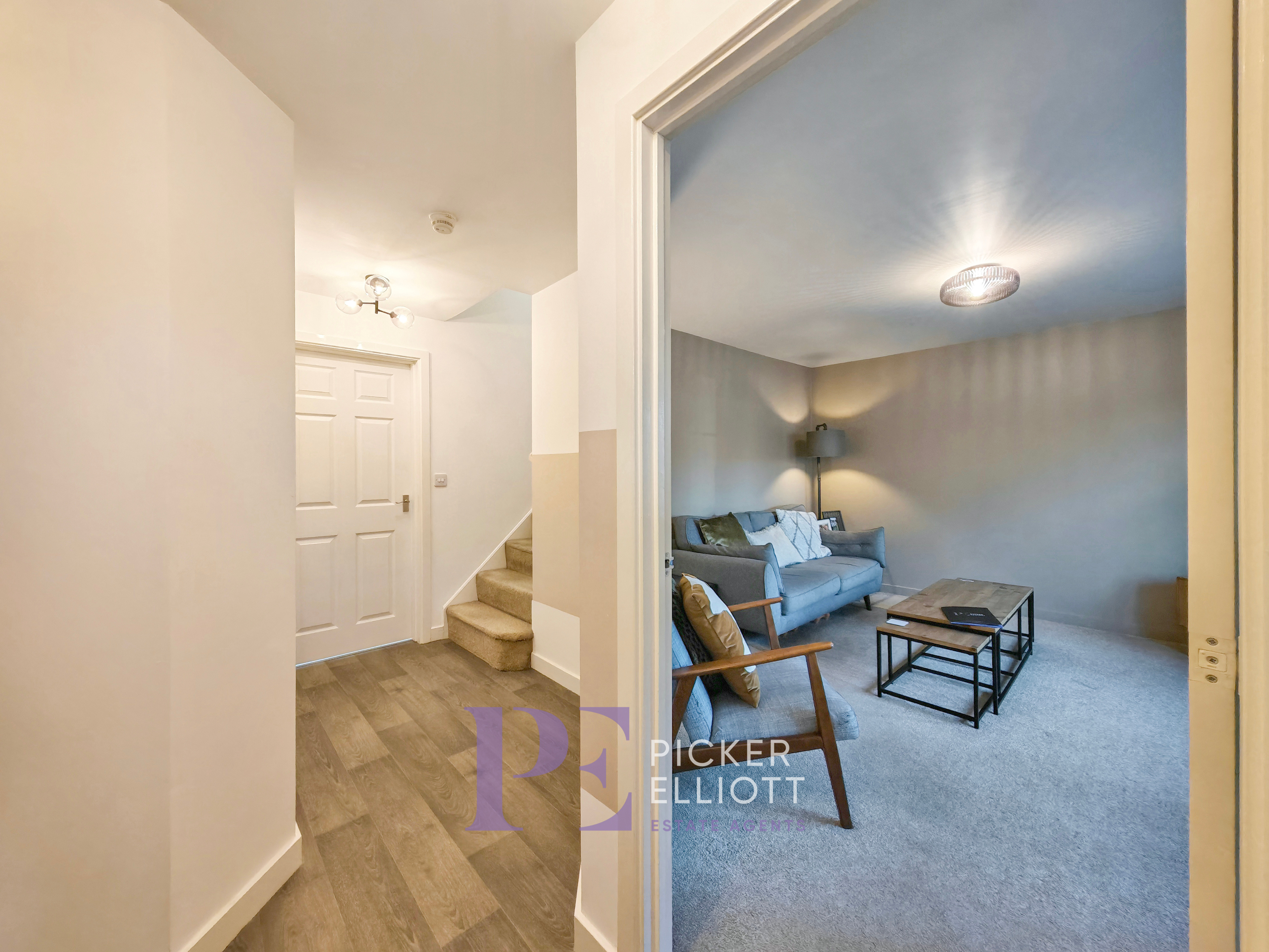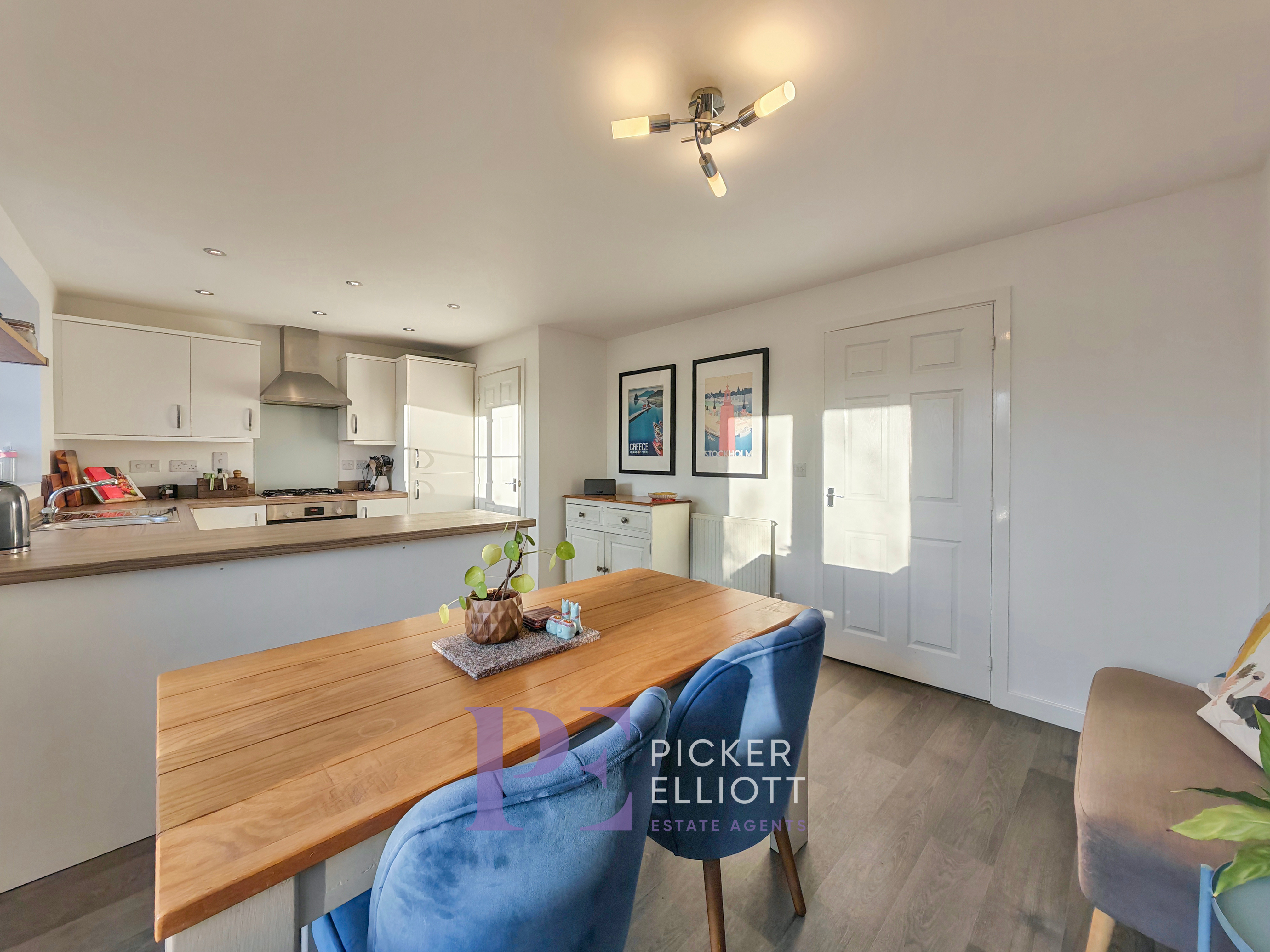 This beautifully presented modern family home offers a practical layout and stylish finishes throughout, making it an ideal choice for growing families or professionals. Upon entering through an obscure double-glazed composite door, you are welcomed into a spacious reception hall featuring a staircase, fitted smoke alarm, and radiator heating. To the front of the property is a bright and attractive lounge, enhanced by a double-glazed bay window that creates a welcoming space for relaxation.