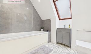 - Stylish contemporary family bathroom, finished to a high modern standard