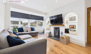 - Bright and spacious living room with a charming multi fuel burner, creating a warm and inviting focal point for cosy evenings.