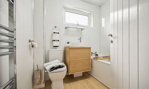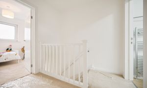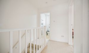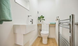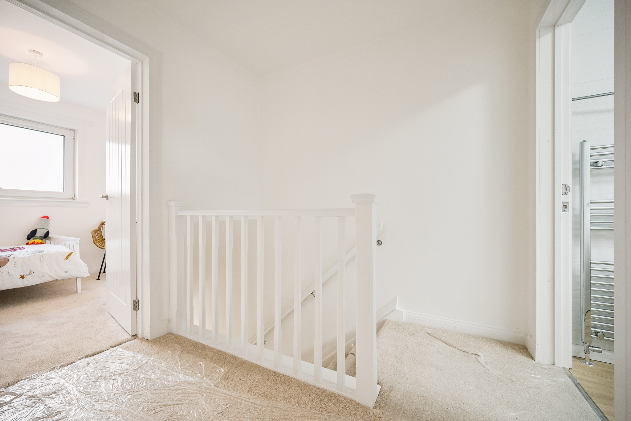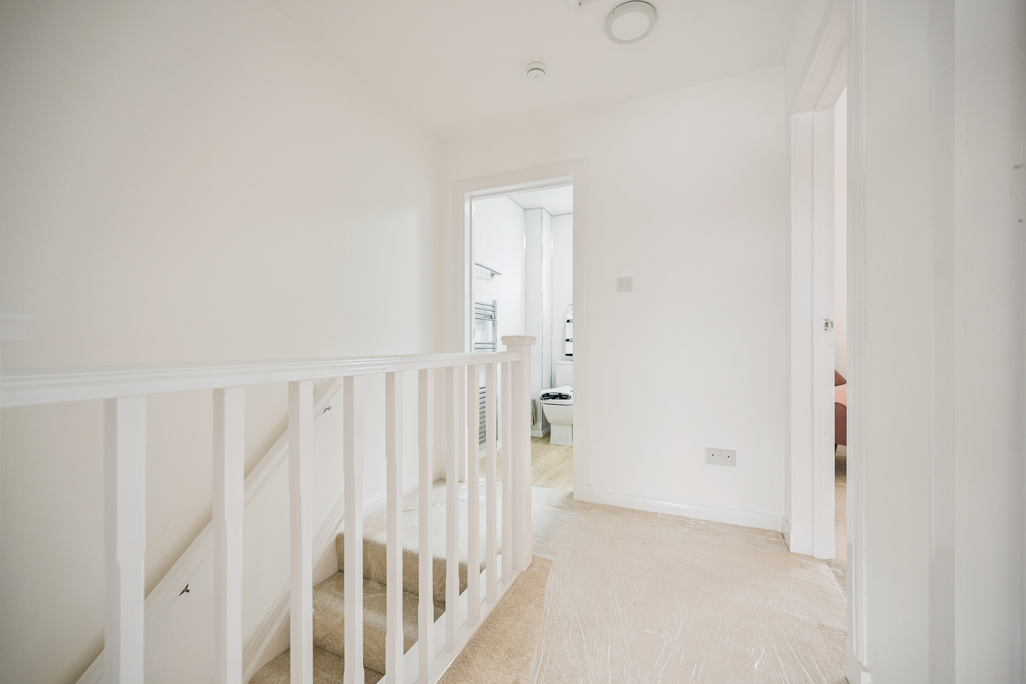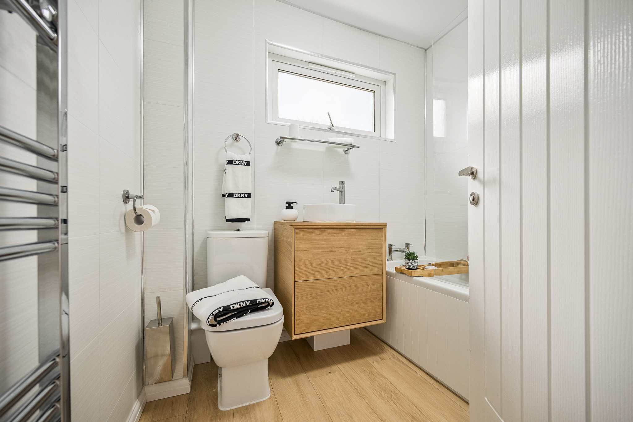 Upstairs, the accommodation comprises three generously sized bedrooms – two doubles and a large single – all presented in immaculate condition. The luxury three-piece family bathroom features a contemporary vanity suite and mains shower over the bath, completing the upper level.