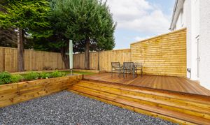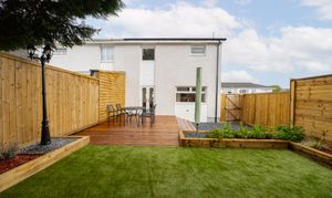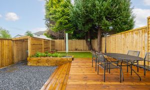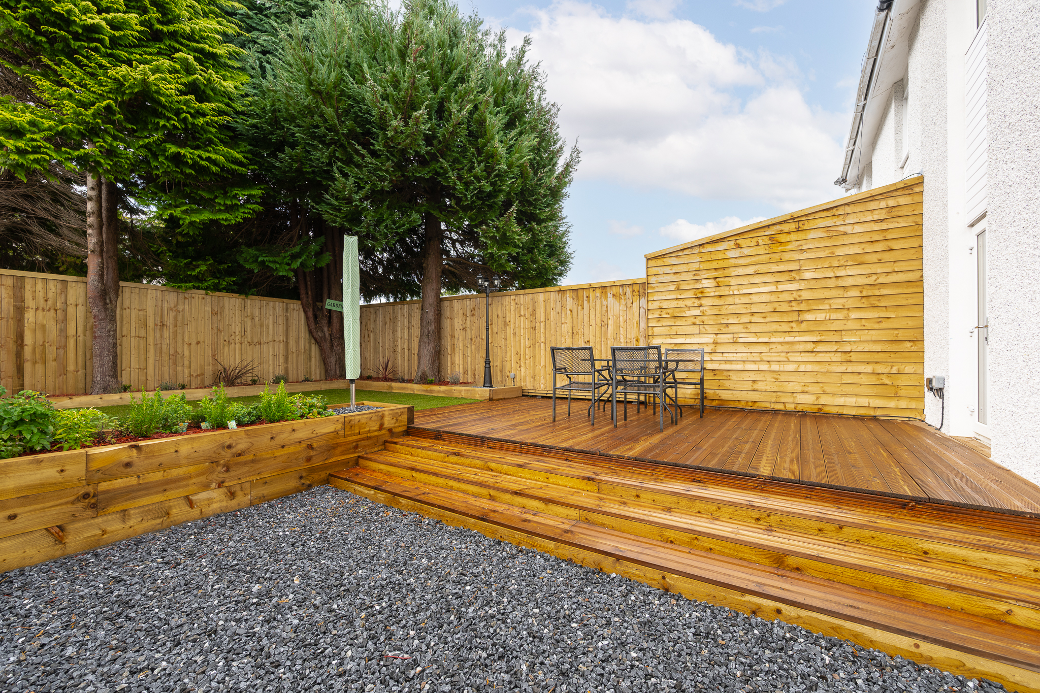 Externally, the property continues to impress. The front benefits from a brand-new monoblock driveway providing off-street parking, while the rear garden has been thoughtfully designed with decking, low-maintenance Astro grass, flower beds, grey stone chips, and secure timber fencing.