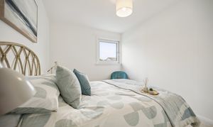 The bespoke kitchen is a real highlight, offering a wide range of wall and floor-mounted units, complete with complimentary worktops and splashback. Integrated appliances are included, ensuring both style and functionality.