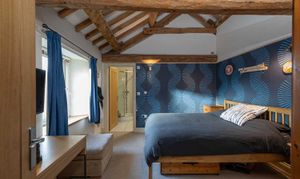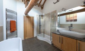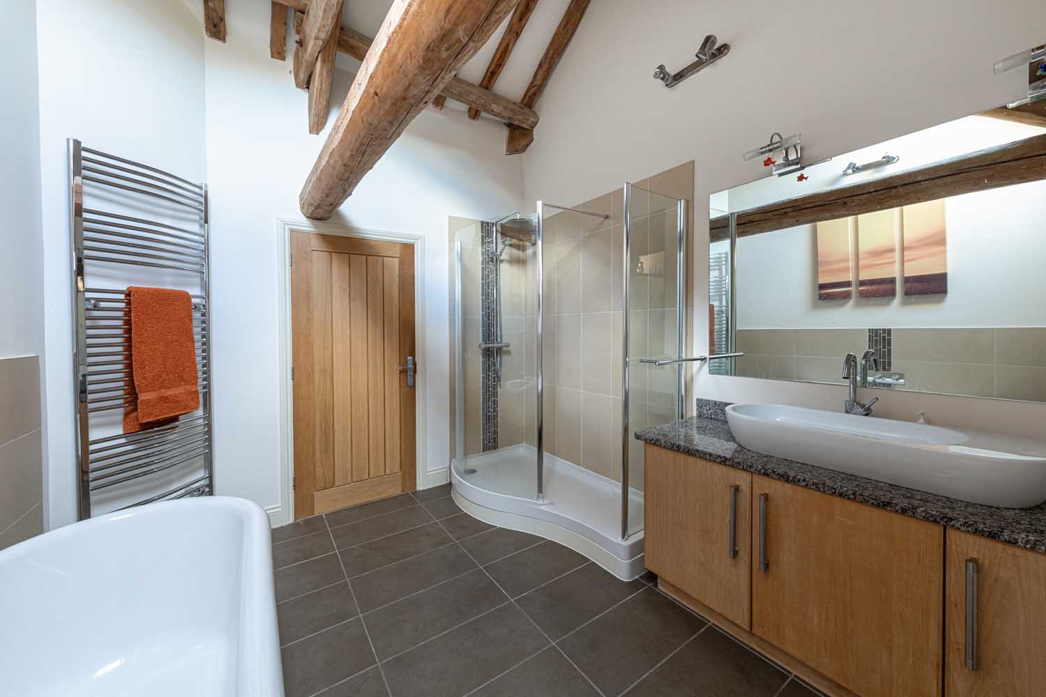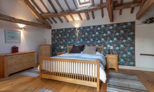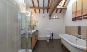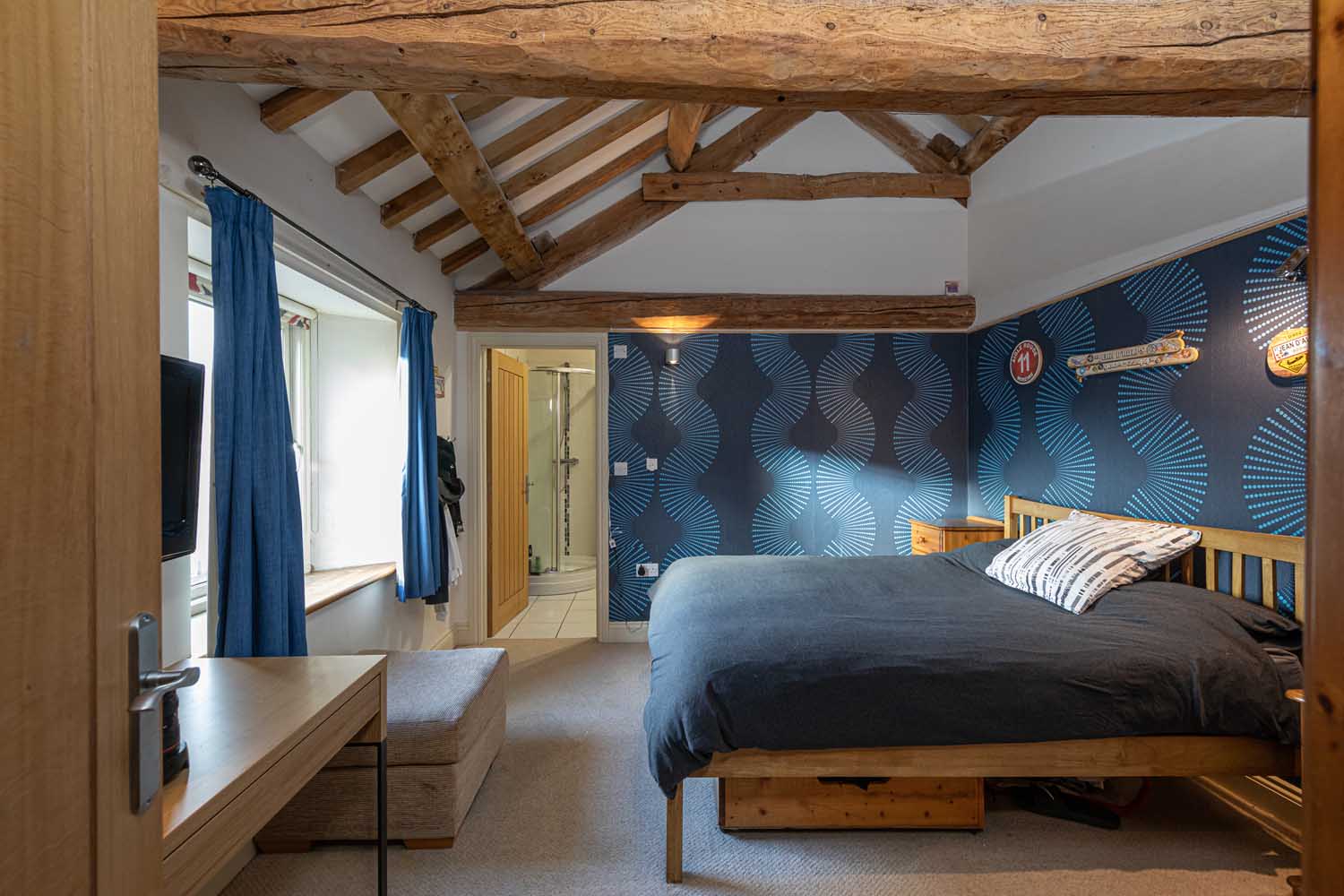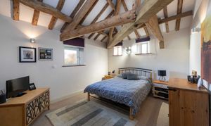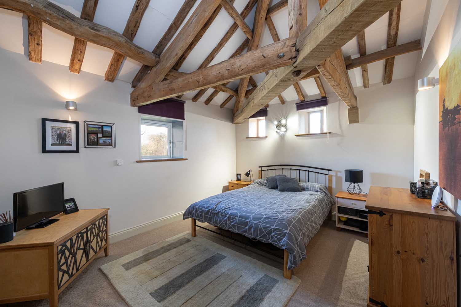 Upstairs, the bedrooms are beautifully decorated and framed by impressive original beams and trusses. All rooms accommodate king-size or super-king beds, with three bedrooms benefitting from en-suites finished to a high standard. The family bathroom completes the first floor with a freestanding bath and a separate rainfall shower.