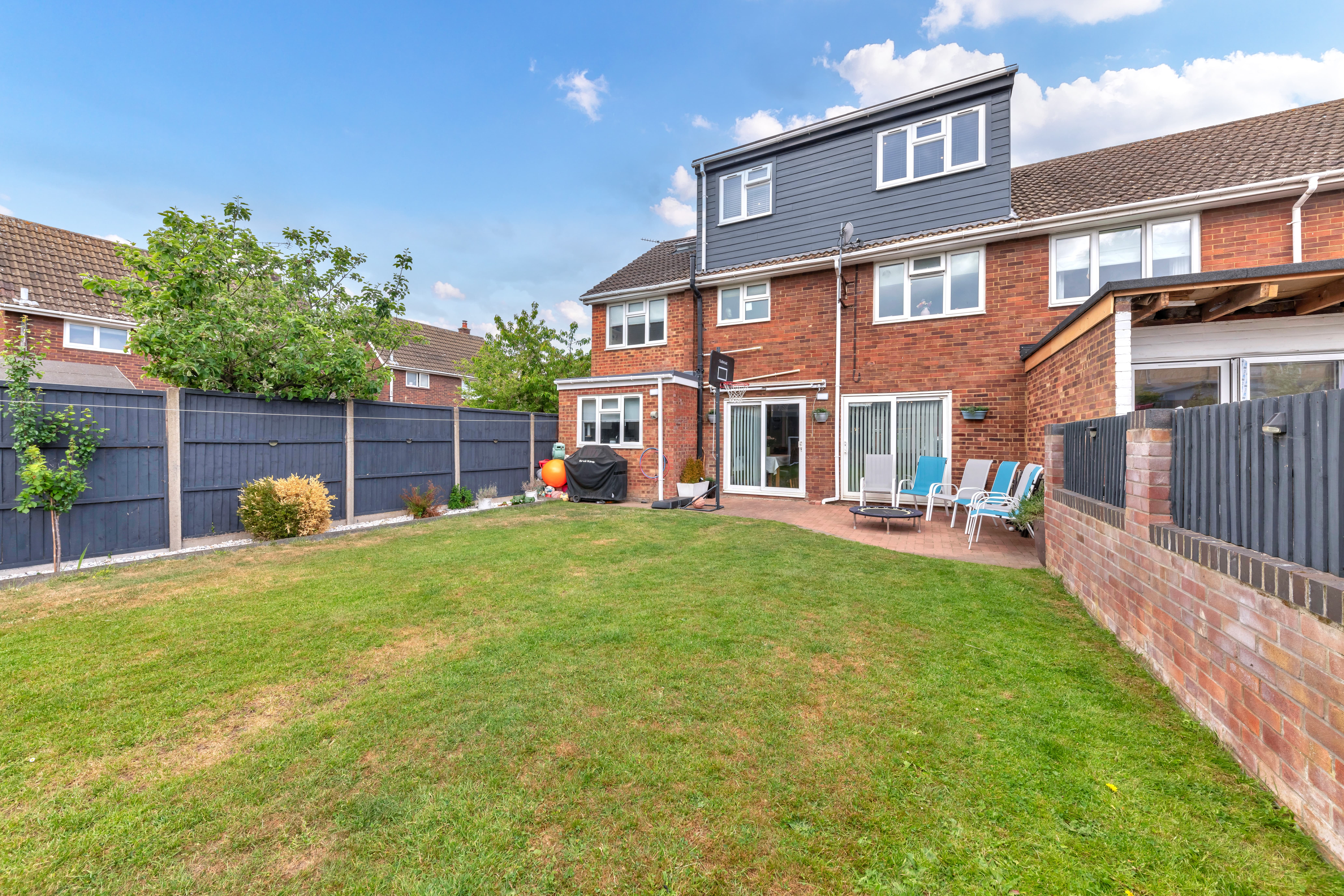Outside, to the rear, the garden is an excellent size, fully enclosed by fencing and offering a truly lovely space to sit, relax and enjoy the sun. The garden is laid mainly to lawn, with a paved patio area providing space for garden furniture, enjoying family meals al fresco and entertaining guests on warm days. There are well-maintained borders of decorative stones, plants and shrubs, and scope for new owners to put their own stamp on things.