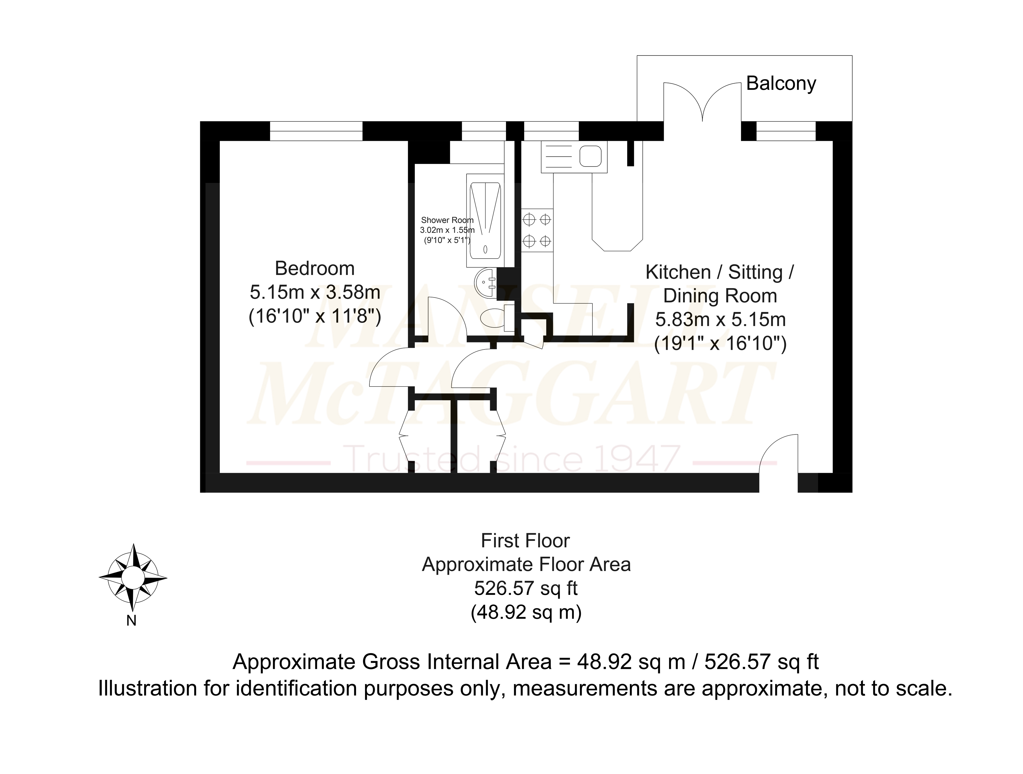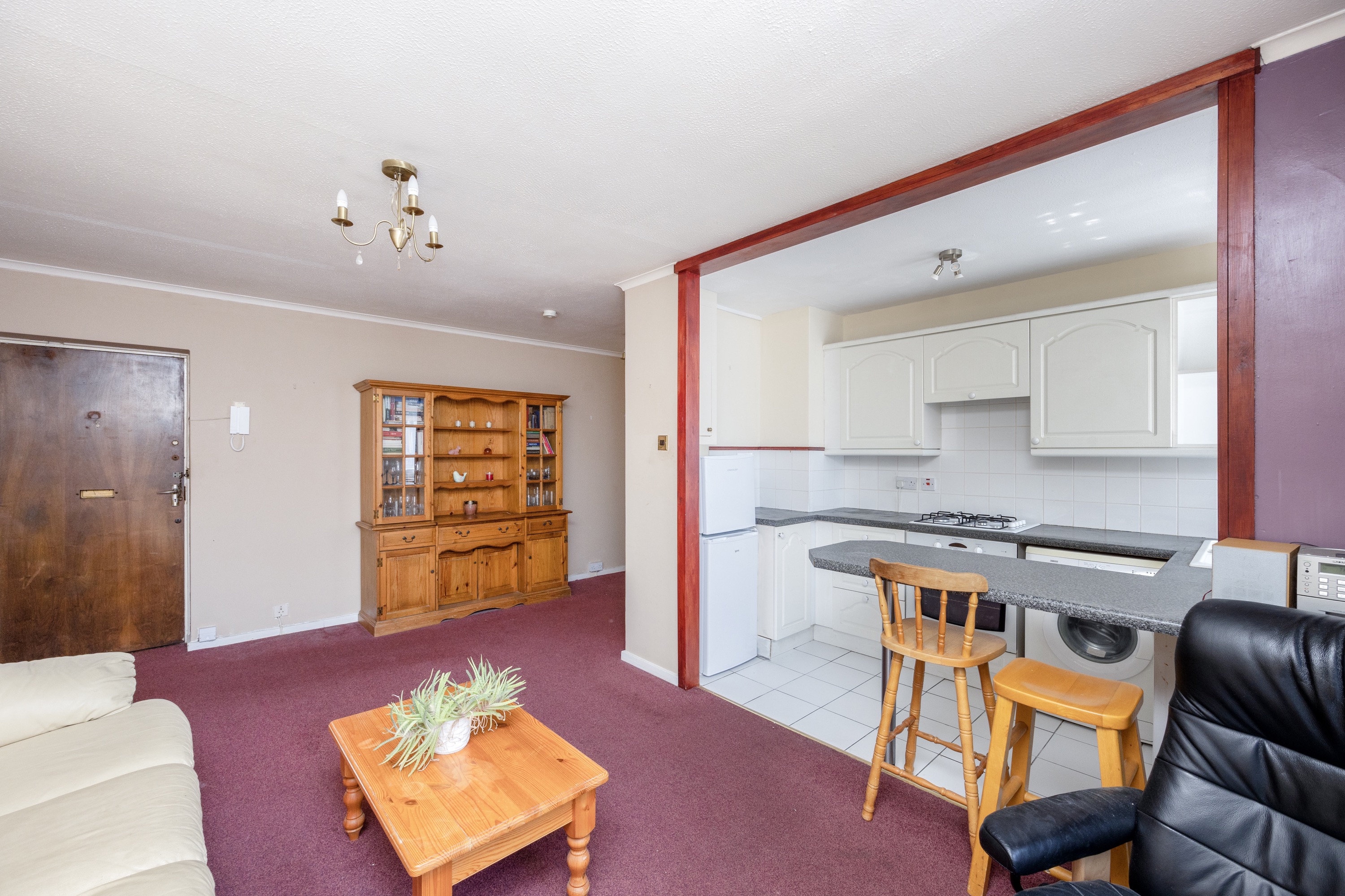 Upon entry, you are greeted by the open plan living room and kitchen overlooking the South-facing balcony. To the left, a large hallway provides ample space for shoes, coats and freestanding furniture as well as access to built-in storage.