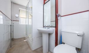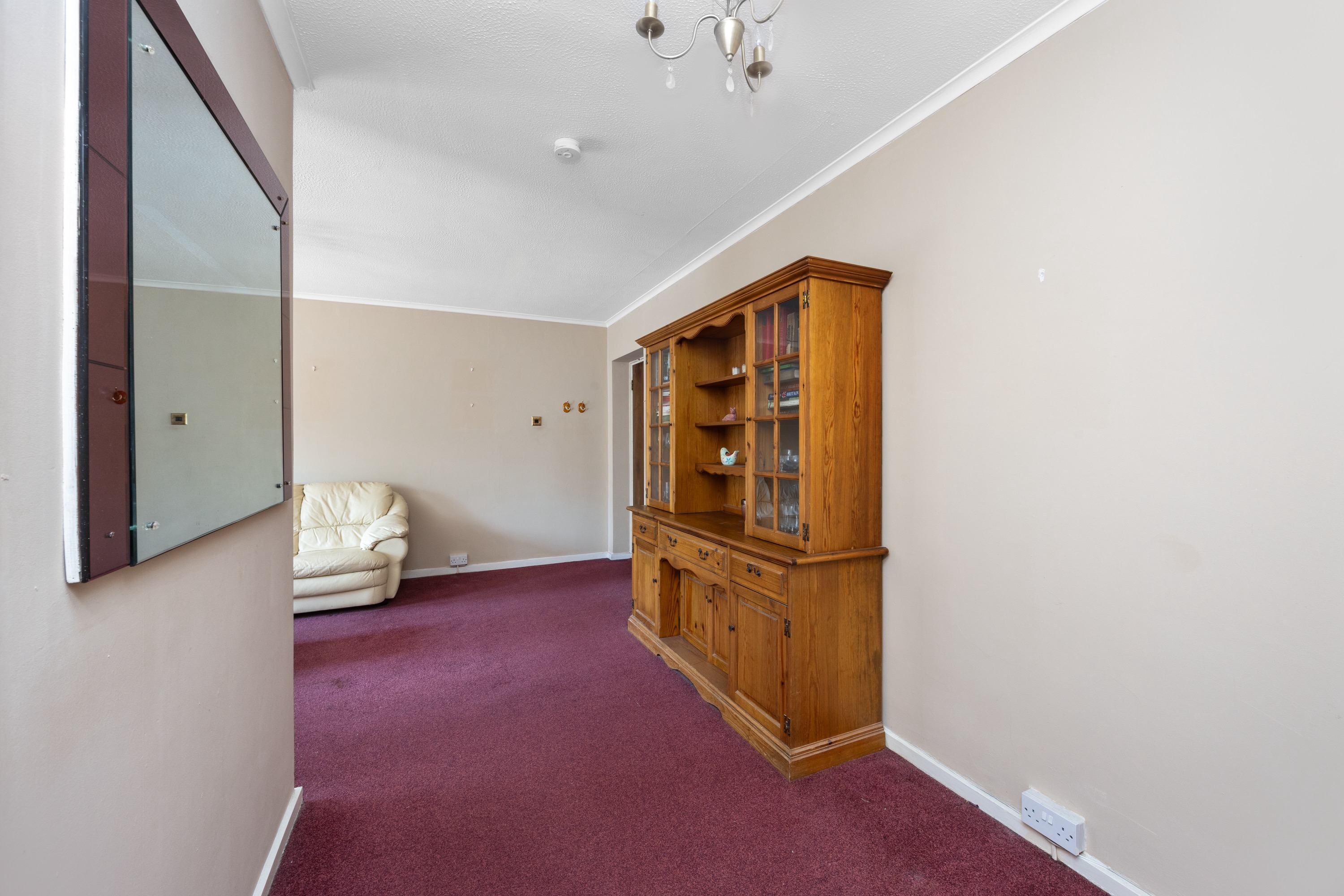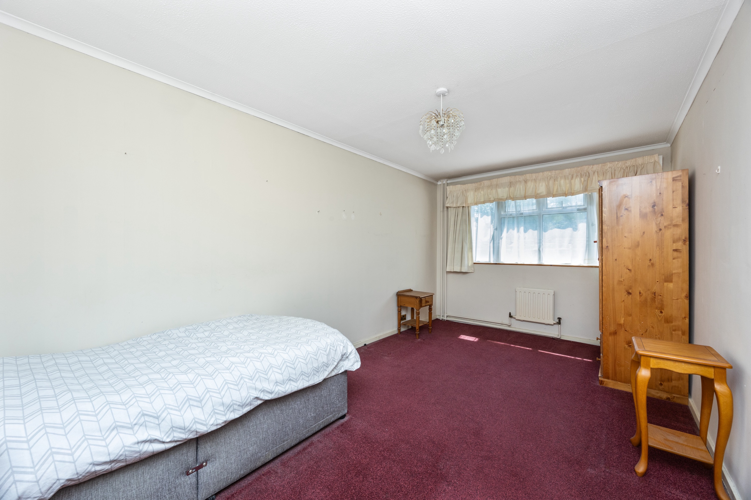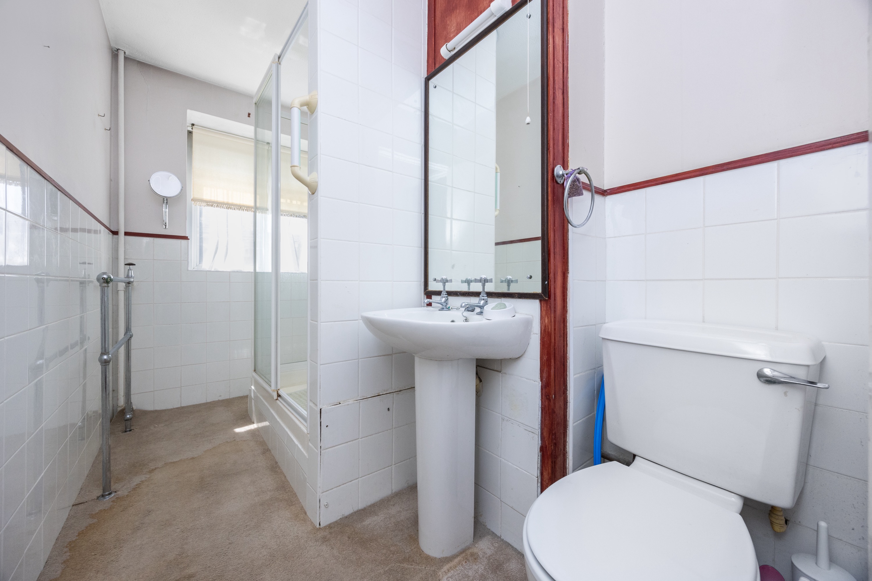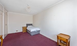 To the end of the hall, you find the spacious double bedroom overlooking the front aspect and benefitting from integral storage. Adjacent, you find the partially-tiled shower room featuring a double shower, heated towel rail, vanity mirror as well as all of the essentials.