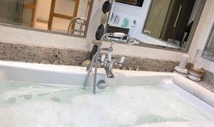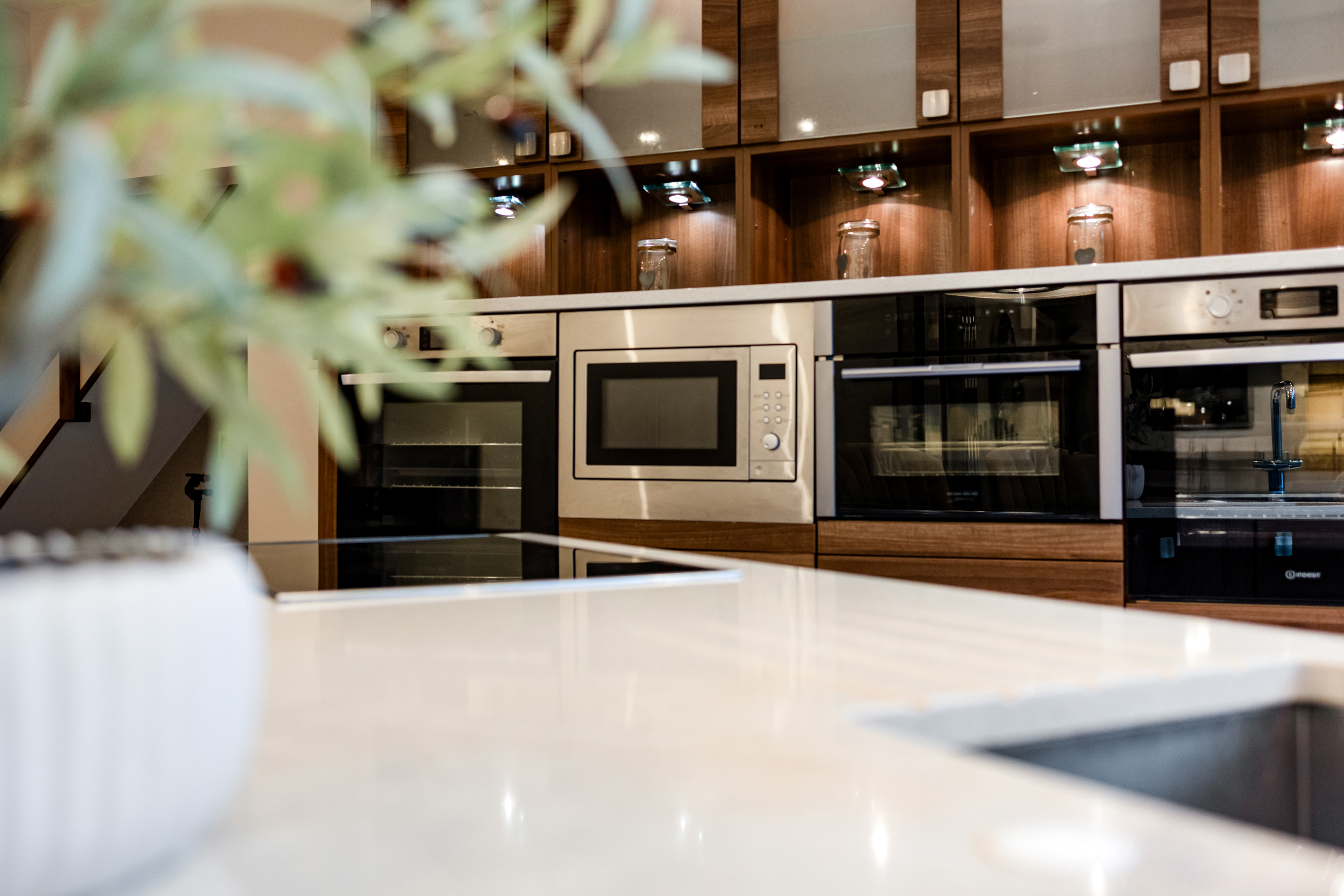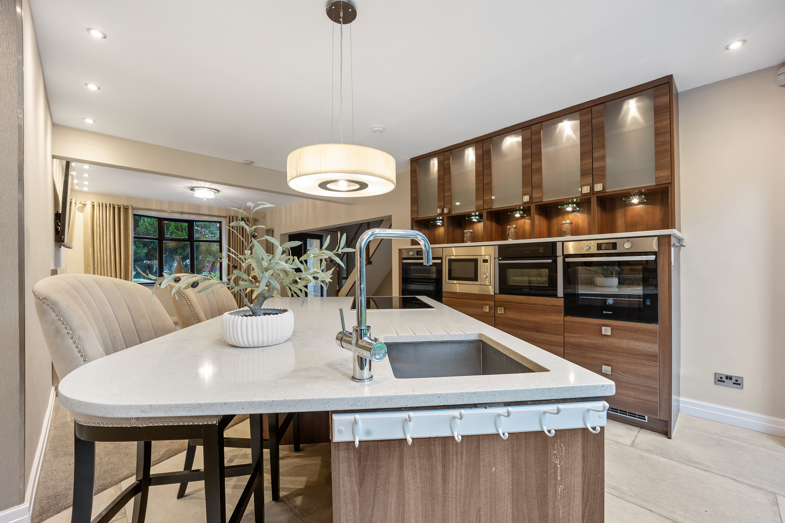 - Contemporary fitted kitchen with integrated appliances and instant hot tap